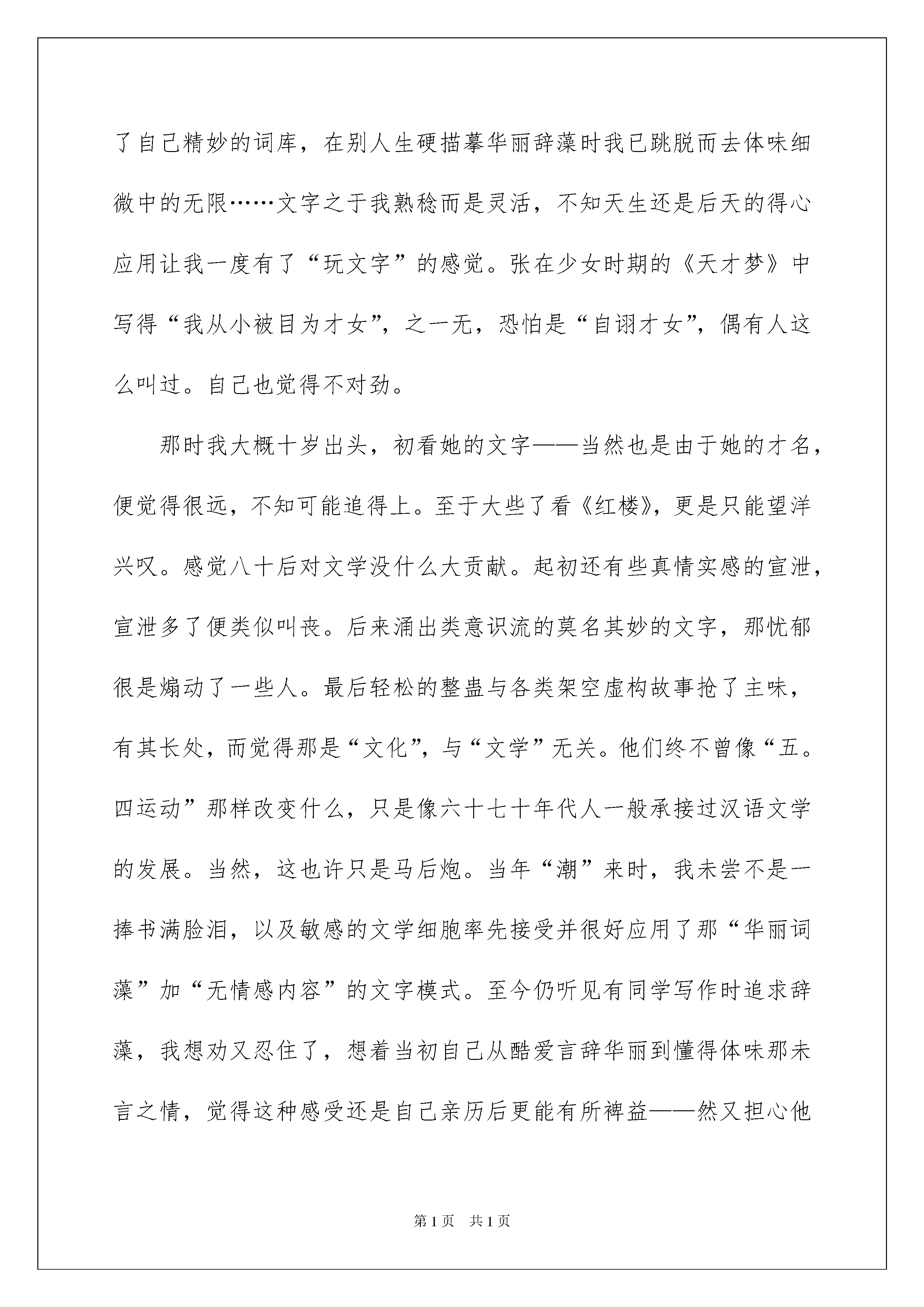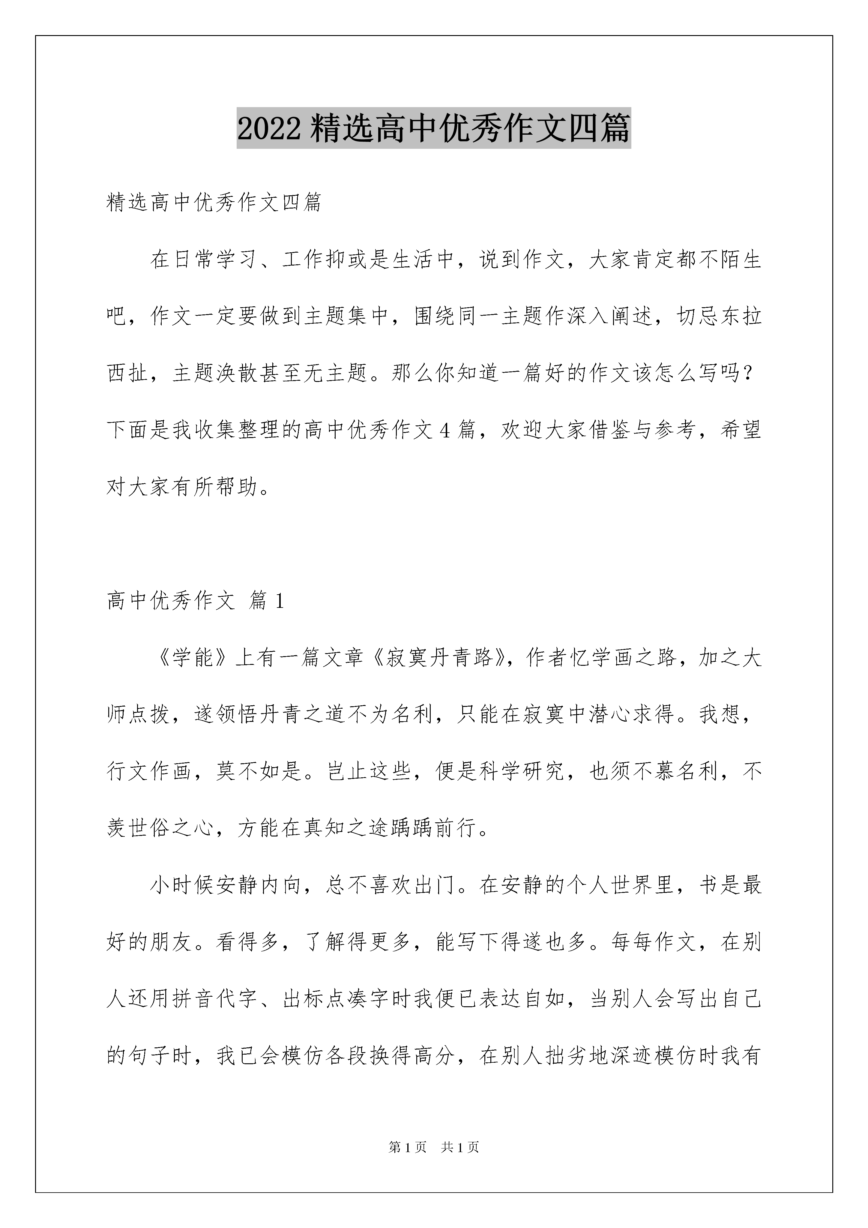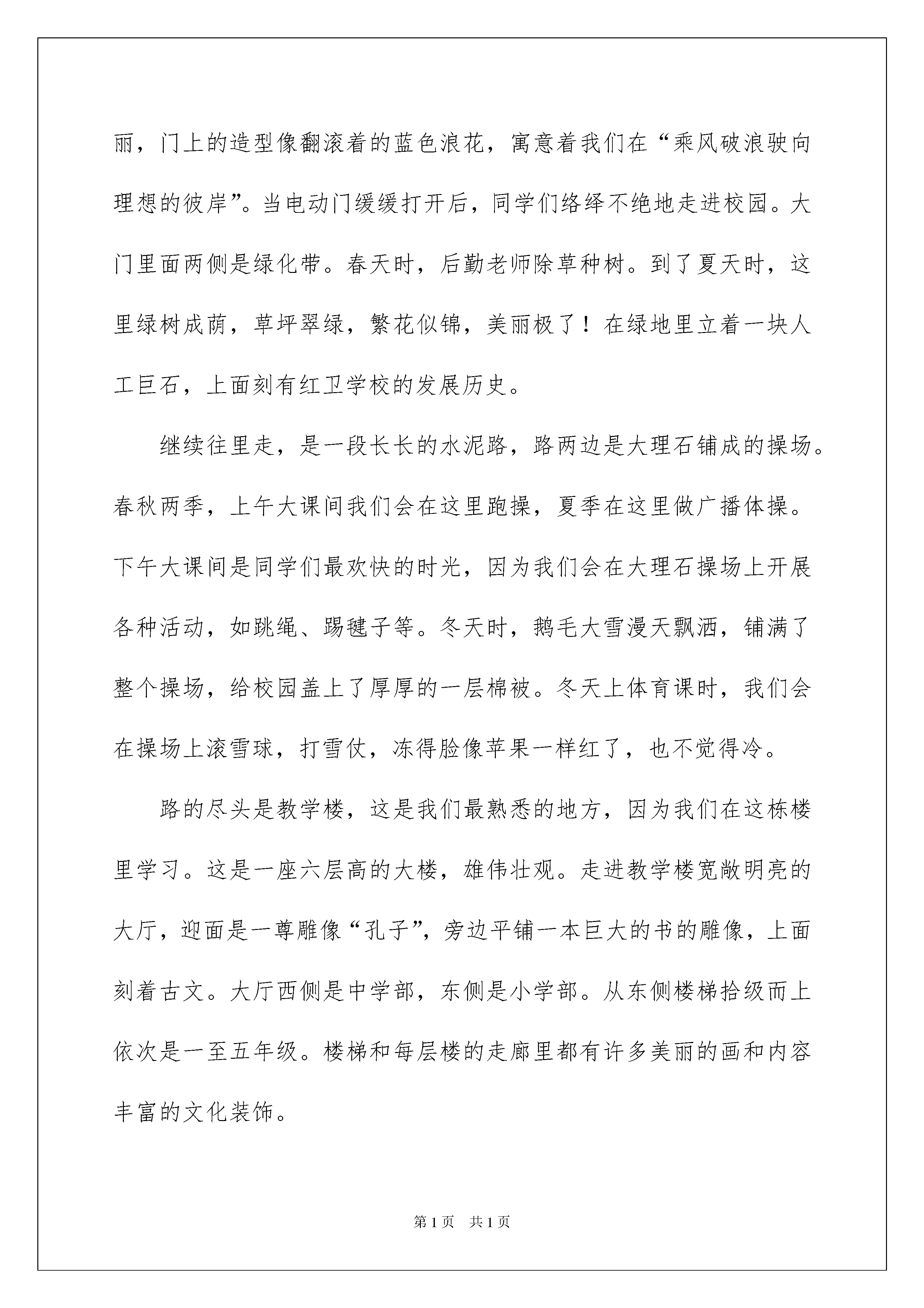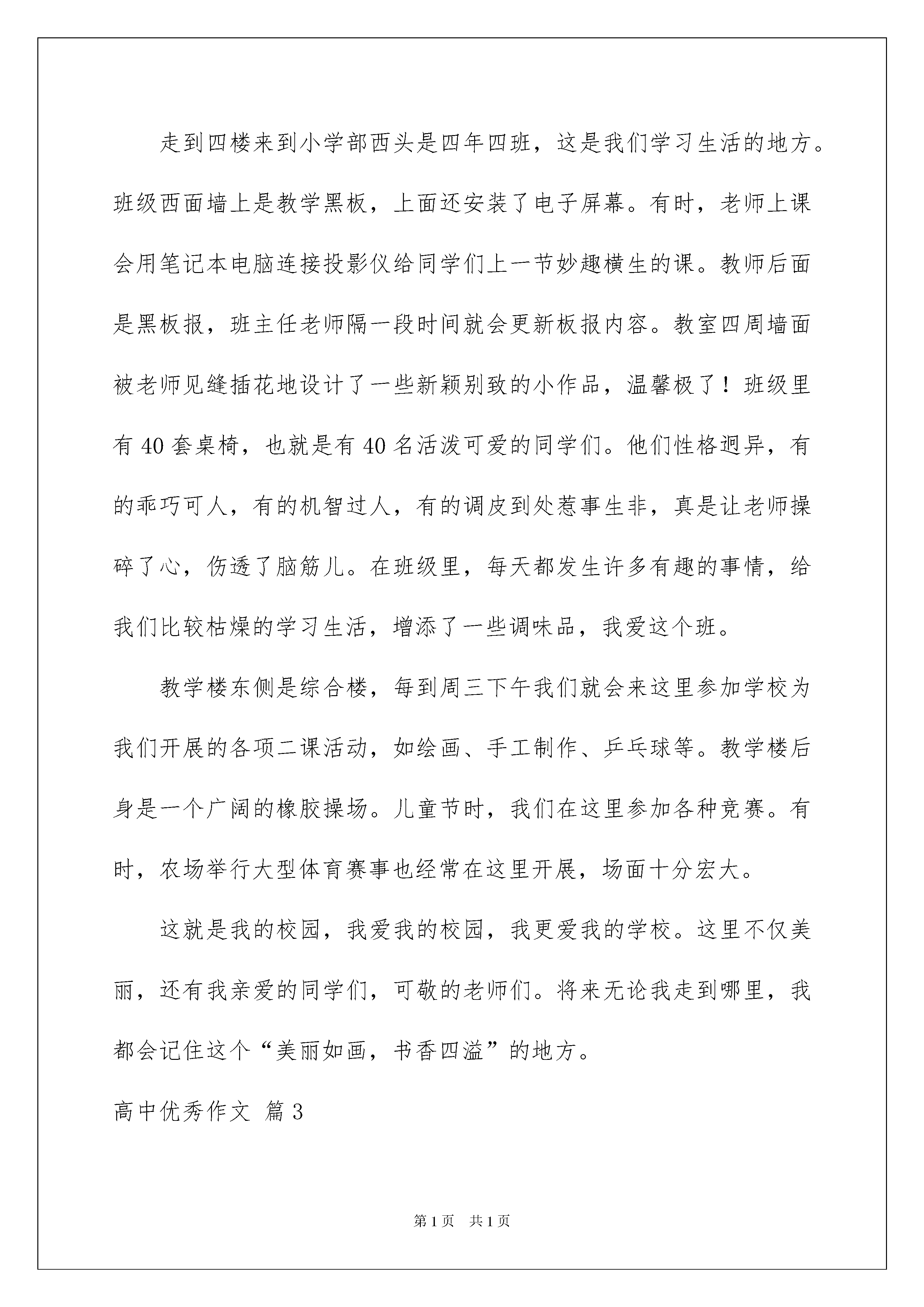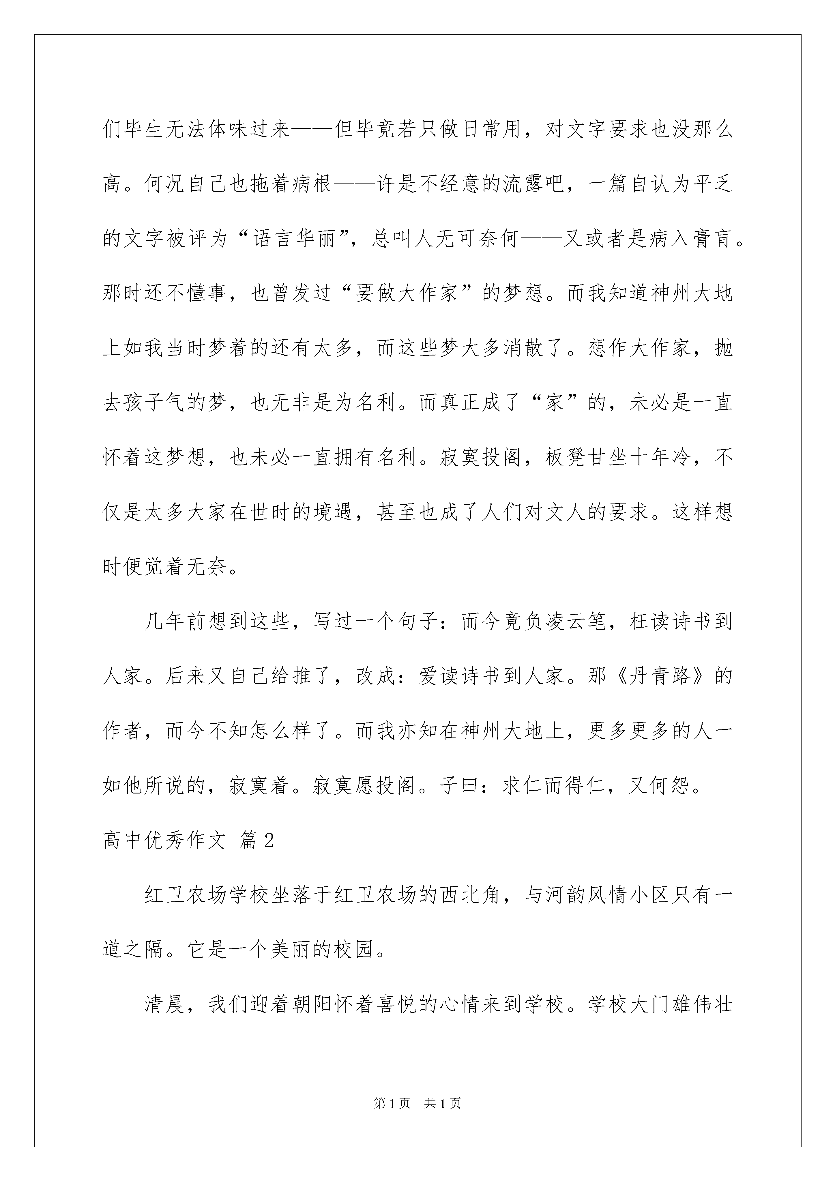 2022精选高中优秀作文四篇精选高中优秀作文四篇在日常学习、工作抑或是生活中,说到作文,大家肯定都不陌生吧,作文一定要做到主题集中,围绕同一主题作深入阐述,切忌东拉西扯,主题涣散甚至无主题。那么你知道一篇好的作文该怎么写吗?下面是我收集整理的高中优秀作文4篇,欢迎大家借鉴与参考,希望对大家有所帮助。高中优秀作文篇1《学能》上有一篇文章《寂寞丹青路》,作者忆学画之路,加之大师点拨,遂领悟丹青之道不为名利,只能在寂寞中潜心求得。我想,行文作画,莫不如是。岂止这些,便是科学研究,也须不慕名利,不羡世俗之心,方能在真知之途踽踽前行。小时候安静内向,总不喜欢出门。在安静的个人世界里,书是最好的朋友。看得多,了解得更多,能写下得遂也多。每每作文,在别人还用拼音代字、出标点凑字时我便已表达自如,当别人会写出自己的句子时,我已会模仿各段换得高分,在别人拙劣地深迹模仿时我有了自己精妙的词库,在别人生硬描摹华丽辞藻时我已跳脱而去体味细微中的无限……文字之于我熟稔而是灵活,不知天生还是后天的得心应用让我一度有了“玩文字”的感觉。张在少女时期的《天才梦》中写得“我从小被目为才女”,之一无,恐怕是“自诩才女”,偶有人这么叫过。自己也觉得不对劲。那时我大概十岁出头,初看她的文字——当然也是由于她的才名,便觉得很远,不知可能追得上。至于大些了看《红楼》,更是只能望洋兴叹。感觉八十后对文学没什么大贡献。起初还有些真情实感的宣泄,宣泄多了便类似叫丧。后来涌出类意识流的莫名其妙的文字,那忧郁很是煽动了一些人。最后轻松的整蛊与各类架空虚构故事抢了主味,有其长处,而觉得那是“文化”,与“文学”无关。他们终不曾像“五。四运动”那样改变什么,只是像六十七十年代人一般承接过汉语文学的发展。当然,这也许只是马后炮。当年“潮”来时,我未尝不是一捧书满脸泪,以及敏感的文学细胞率先接受并很好应用了那“华丽词藻”加“无情感内容”的文字模式。至今仍听见有同学写作时追求辞藻,我想劝又忍住了,想着当初自己从酷爱言辞华丽到懂得体味那未言之情,觉得这种感受还是自己亲历后更能有所裨益——然又担心他们毕生无法体味过来——但毕竟若只做日常用,对文字要求也没那么高。何况自己也拖着病根——许是不经意的流露吧,一篇自认为平乏的文字被评为“语言华丽”,总叫人无可奈何——又或者是病入膏肓。那时还不懂事,也曾发过“要做大作家”的梦想。而我知道神州大地上如我当时梦着的还有太多,而这些梦大多消散了。想作大作家,抛去孩子气的梦,也无非是为名利。而真正成了“家”的,未必是一直怀着这梦想,也未必一直拥有名利。寂寞投阁,板凳甘坐十年冷,不仅是太多大家在世时的境遇,甚至也成了人们对文人的要求。这样想时便觉着无奈。几年前想到这些,写过一个句子:而今竟负凌云笔,枉读诗书到人家。后来又自己给推了,改成:爱读诗书到人家。那《丹青路》的作者,而今不知怎么样了。而我亦知在神州大地上,更多更多的人一如他所说的,寂寞着。寂寞愿投阁。子曰:求仁而得仁,又何怨。高中优秀作文篇2红卫农场学校坐落于红卫农场的西北角,与河韵风情小区只有一道之隔。它是一个美丽的校园。清晨,我们迎着朝阳怀着喜悦的心情来到学校。学校大门雄伟壮丽,门上的造型像翻滚着的蓝色浪花,寓意着我们在“乘风破浪驶向理想的彼岸”。当电动门缓缓打开后,同学们络绎不绝地走进校园。大门里面两侧是绿化带。春天时,后勤老师除草种树。到了夏天时,这里绿树成荫,草坪翠绿,繁花似锦,美丽极了!在绿地里立着一块人工巨石,上面刻有红卫学校的发展历史。继续往里走,是一段长长的水泥路,路两边是大理石铺成的操场。春秋两季,上午大课间我们会在这里跑操,夏季在这里做广播体操。下午大课间是同学们最欢快的时光,因为我们会在大理石操场上开展各种活动,如跳绳、踢毽子等。冬天时,鹅毛大雪漫天飘洒,铺满了整个操场,给校园盖上了厚厚的一层棉被。冬天上体育课时,我们会在操场上滚雪球,打雪仗,冻得脸像苹果一样红了,也不觉得冷。路的尽头是教学楼,这是我们最熟悉的地方,因为我们在这栋楼里学习。这是一座六层高的大楼,雄伟壮观。走进教学楼宽敞明亮的大厅,迎面是一尊雕像“孔子”,旁边平铺一本巨大的书的雕像,上面刻着古文。大厅西侧是中学部,东侧是小学部。从东侧楼梯拾级而上依次是一至五年级。楼梯和每层楼的走廊里都有许多美丽的画和内容丰富的文化装饰。走到四楼来到小学部西头是四年四班,这是我们学习生活的地方。班级西面墙上是教学黑板,上面还安装了电子屏幕。有时,老师上课会用笔记本电脑连接投影仪给同学们上一节妙趣横生的课。教师后面是黑板报,班主任老师隔一段时间就会更新板报内容。教室四周墙面被老师见缝