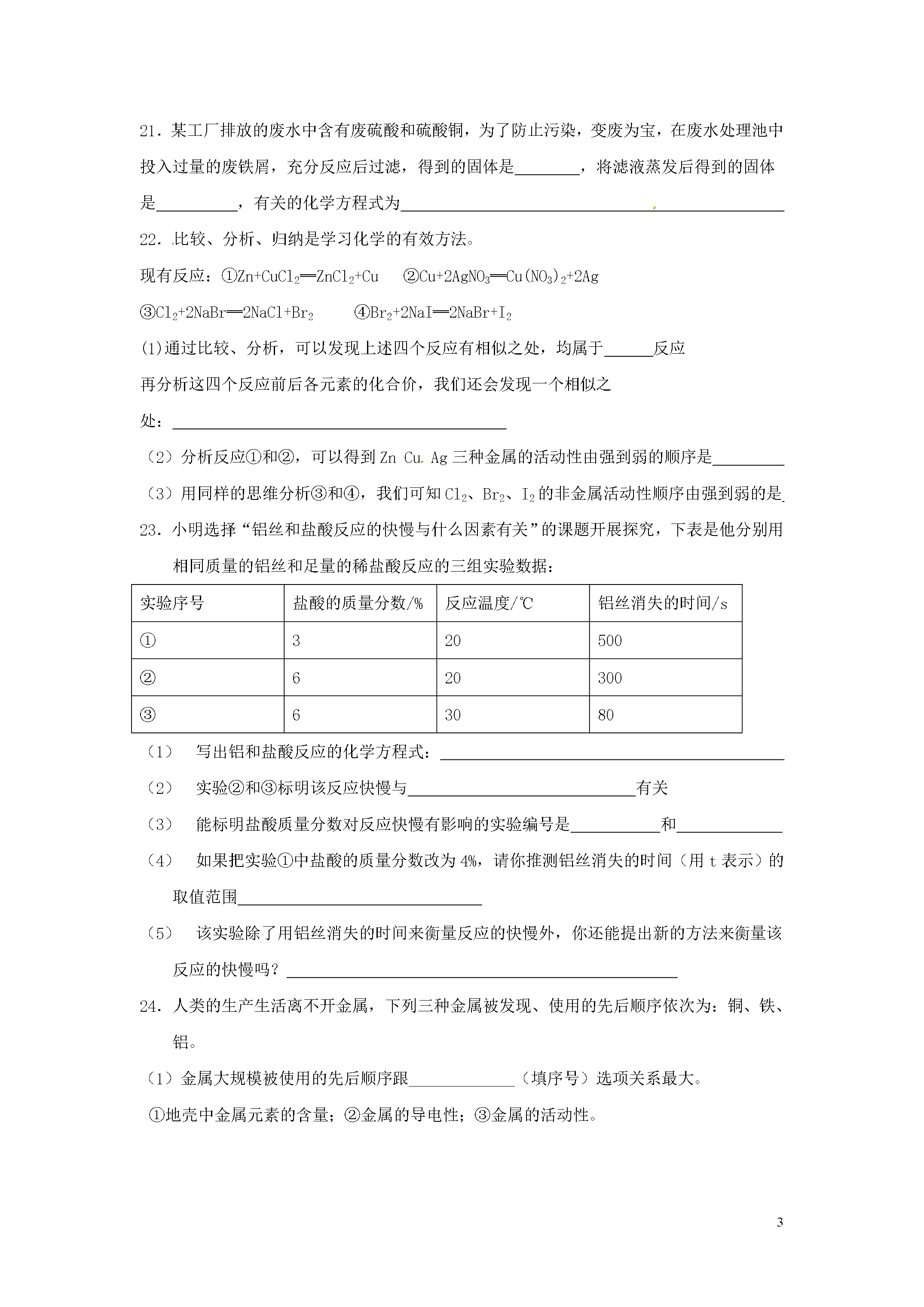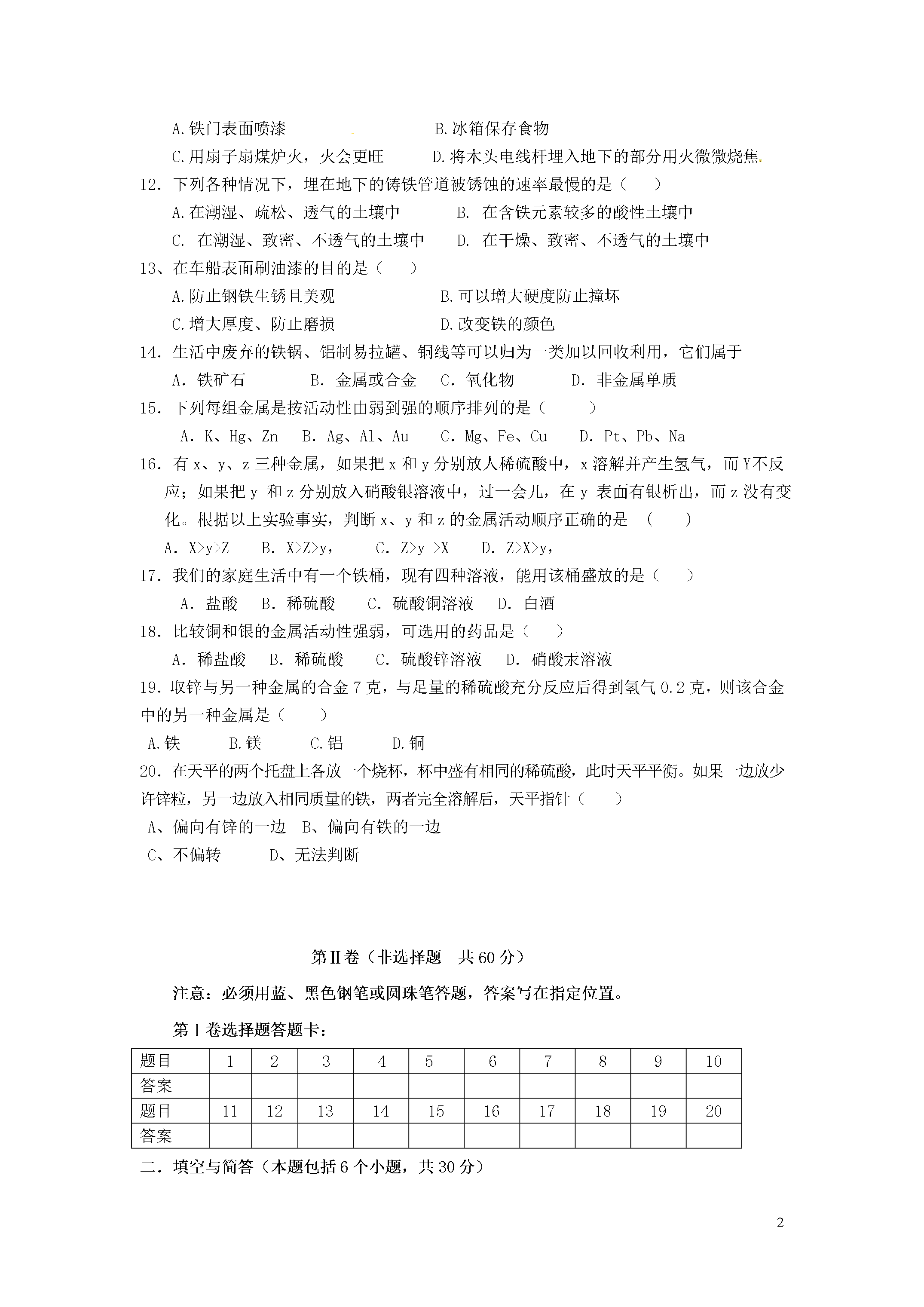 试题-江苏-2015_江苏省连云港市东海晶都双语学校八年级化学全册 第八单元 金属和金属材料单元综合检测试题(二)(无答案) 新人教版五四制.rar