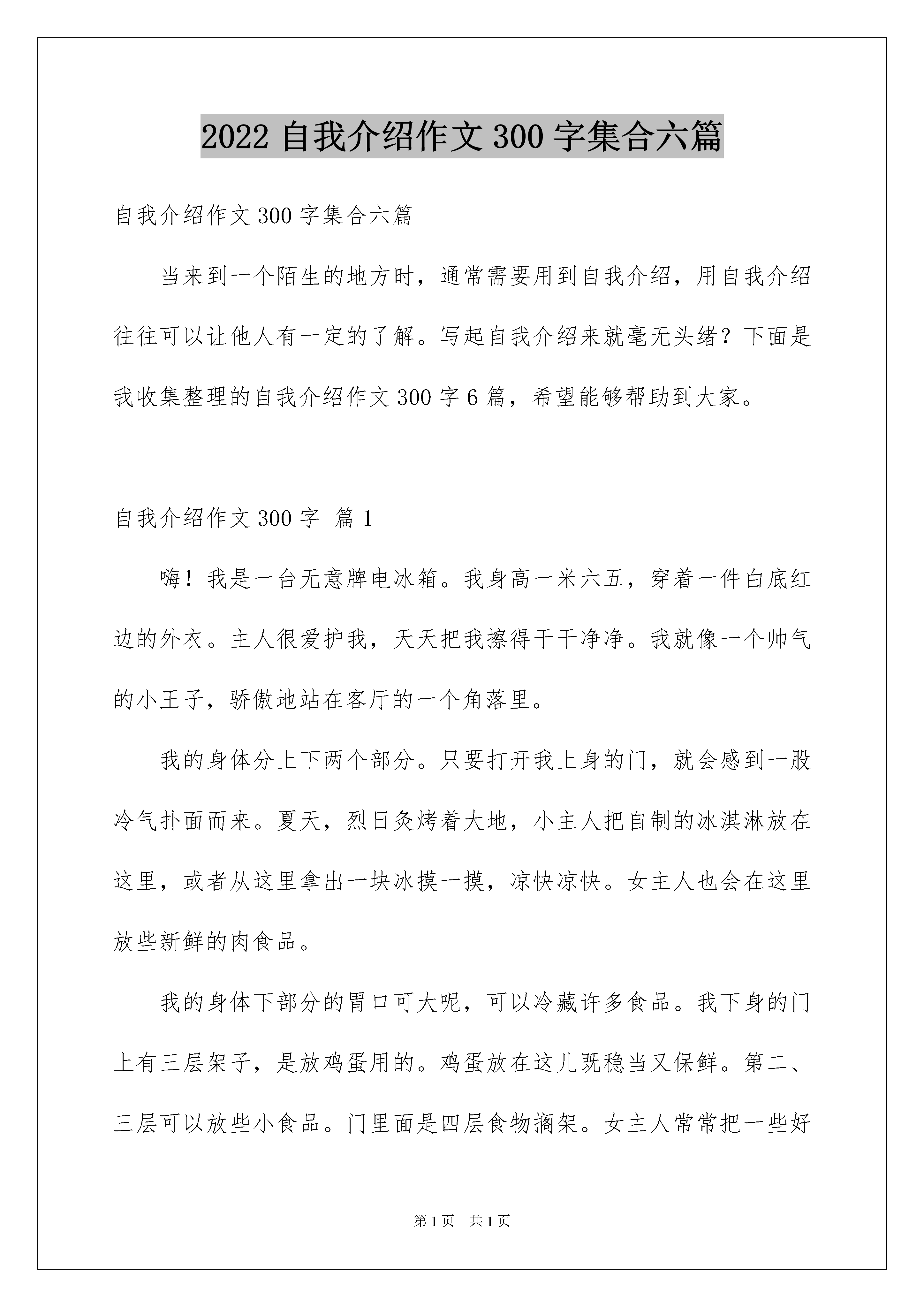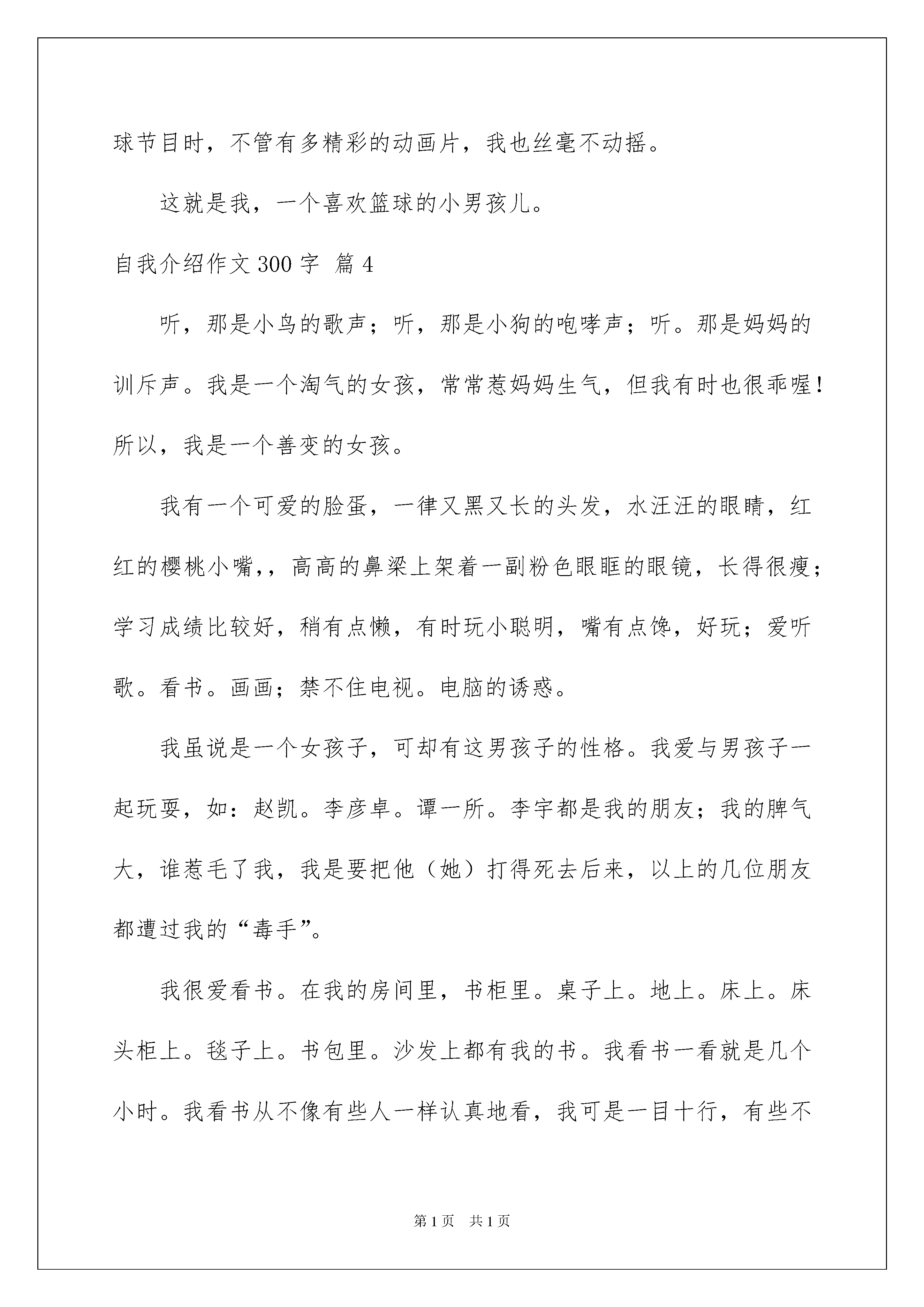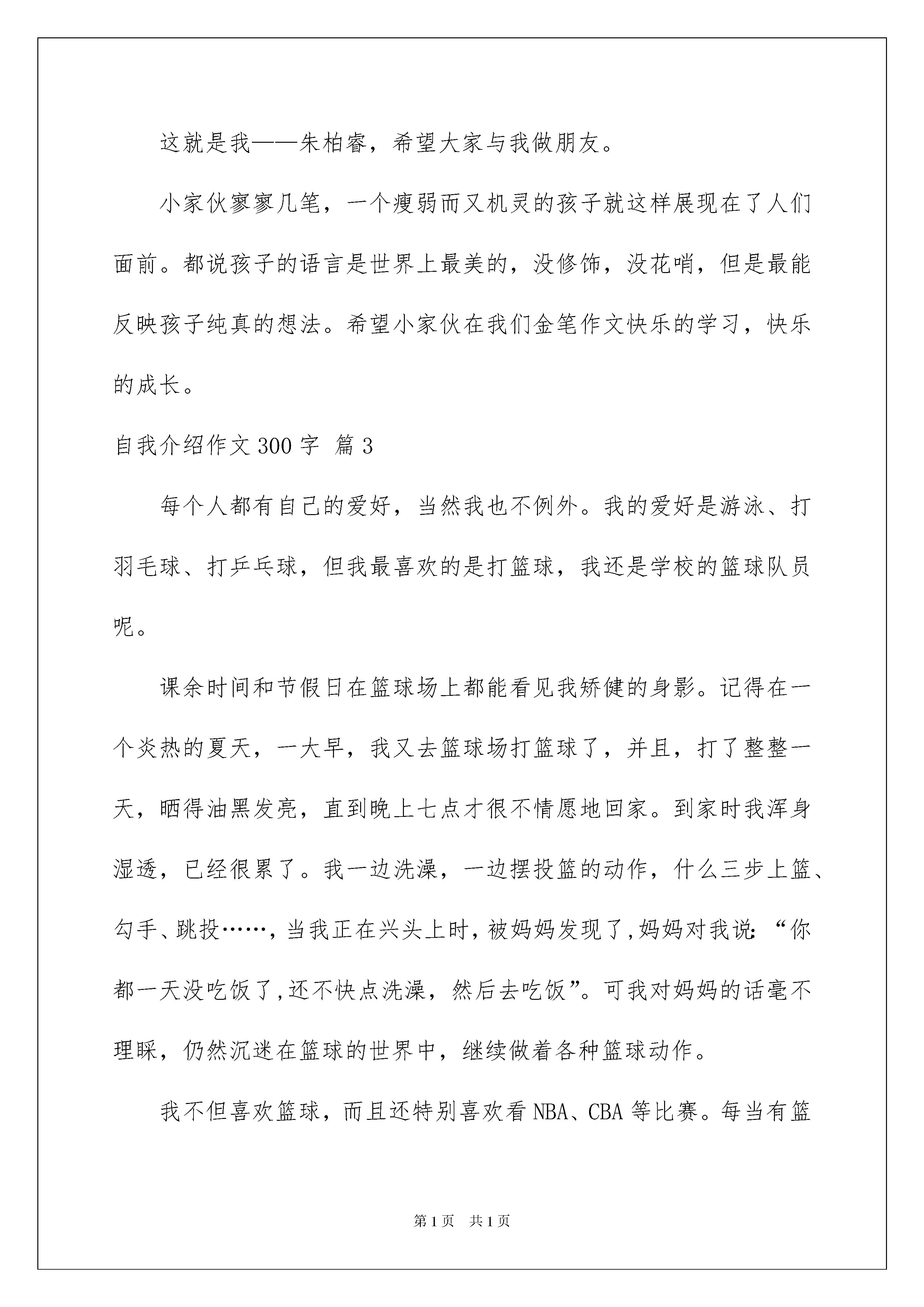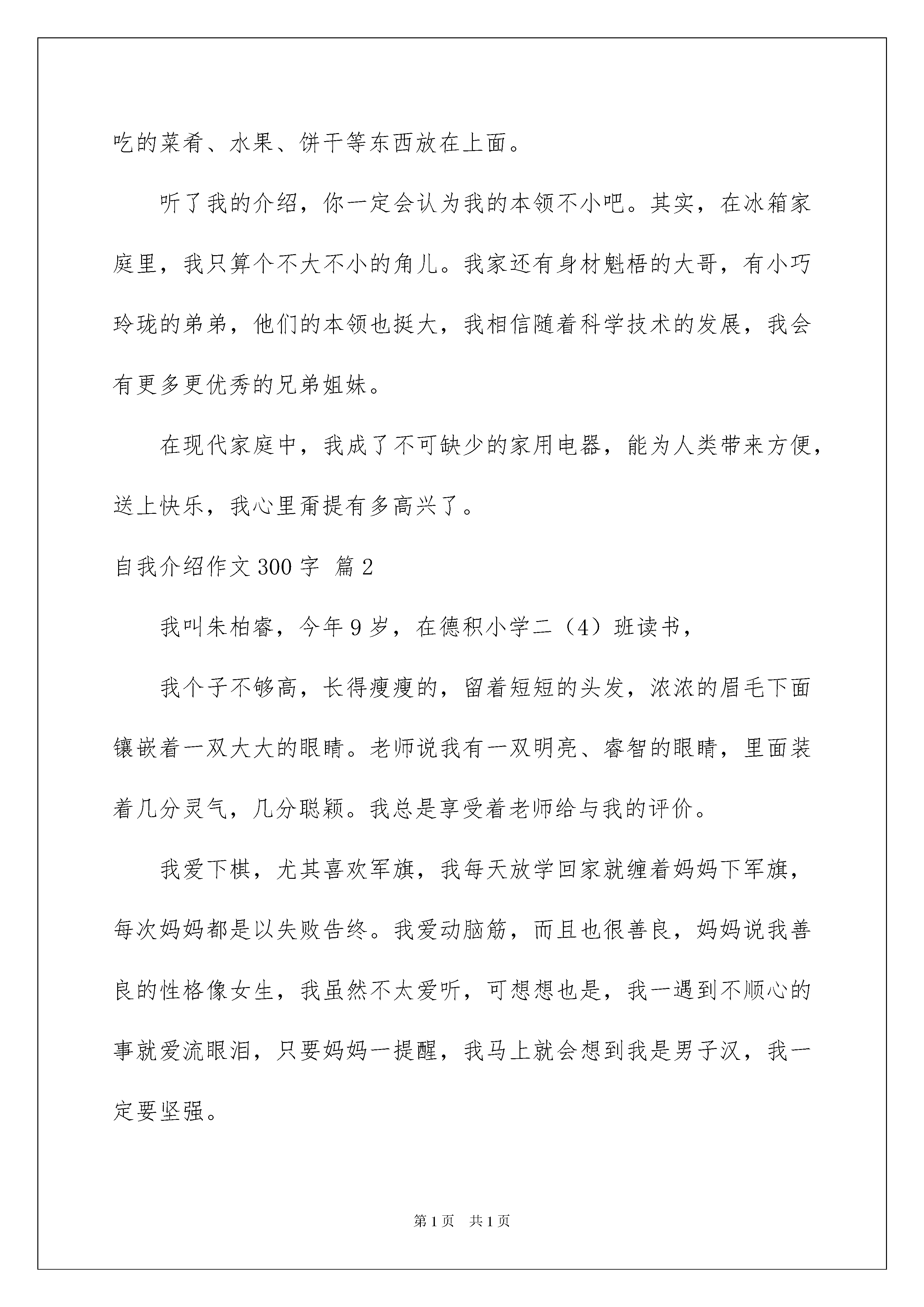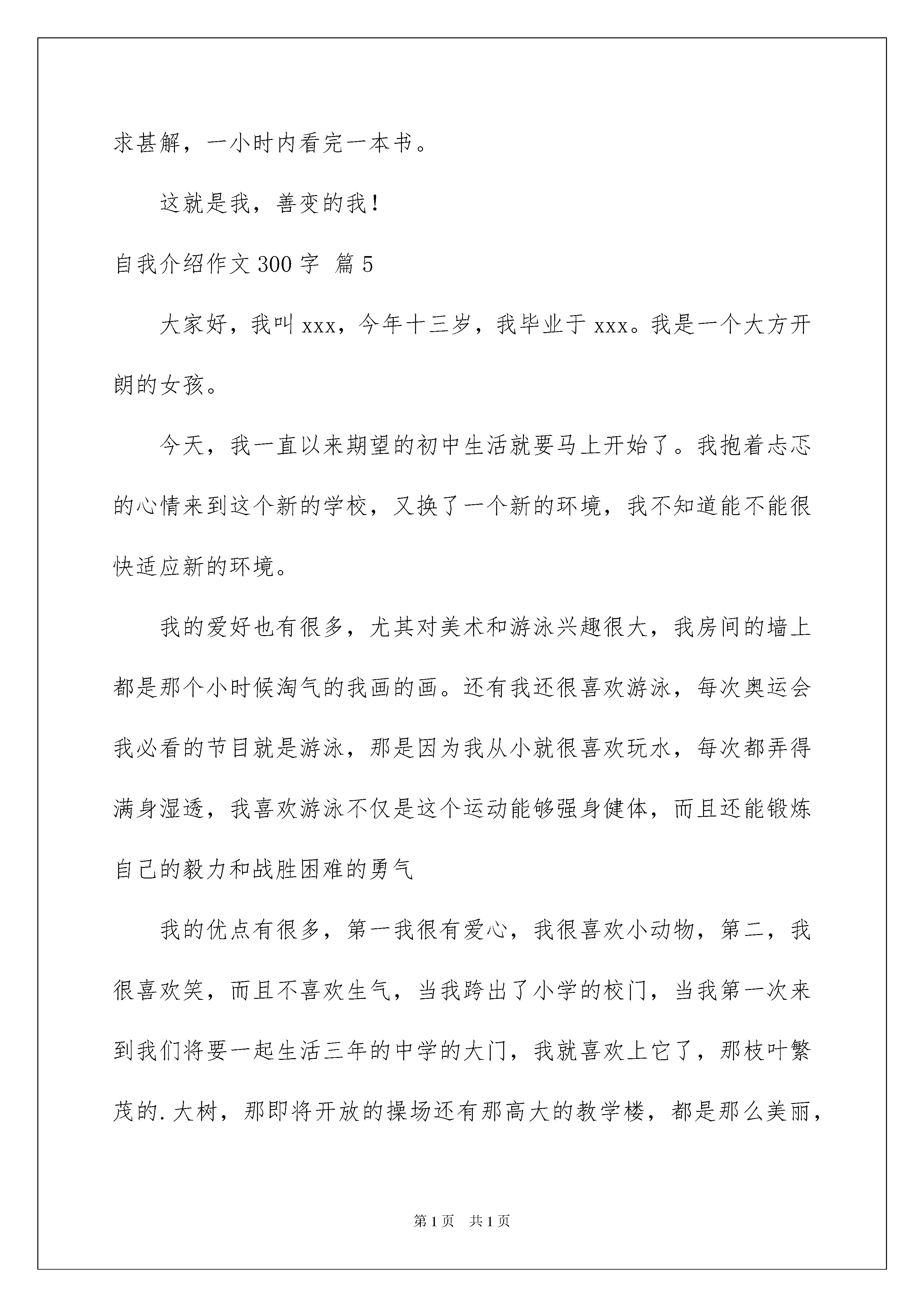 2022自我介绍作文300字集合六篇自我介绍作文300字集合六篇当来到一个陌生的地方时,通常需要用到自我介绍,用自我介绍往往可以让他人有一定的了解。写起自我介绍来就毫无头绪?下面是我收集整理的自我介绍作文300字6篇,希望能够帮助到大家。自我介绍作文300字篇1嗨!我是一台无意牌电冰箱。我身高一米六五,穿着一件白底红边的外衣。主人很爱护我,天天把我擦得干干净净。我就像一个帅气的小王子,骄傲地站在客厅的一个角落里。我的身体分上下两个部分。只要打开我上身的门,就会感到一股冷气扑面而来。夏天,烈日灸烤着大地,小主人把自制的冰淇淋放在这里,或者从这里拿出一块冰摸一摸,凉快凉快。女主人也会在这里放些新鲜的肉食品。我的身体下部分的胃口可大呢,可以冷藏许多食品。我下身的门上有三层架子,是放鸡蛋用的。鸡蛋放在这儿既稳当又保鲜。第二、三层可以放些小食品。门里面是四层食物搁架。女主人常常把一些好吃的菜肴、水果、饼干等东西放在上面。听了我的介绍,你一定会认为我的本领不小吧。其实,在冰箱家庭里,我只算个不大不小的角儿。我家还有身材魁梧的大哥,有小巧玲珑的弟弟,他们的本领也挺大,我相信随着科学技术的发展,我会有更多更优秀的兄弟姐妹。在现代家庭中,我成了不可缺少的家用电器,能为人类带来方便,送上快乐,我心里甭提有多高兴了。自我介绍作文300字篇2我叫朱柏睿,今年9岁,在德积小学二(4)班读书,我个子不够高,长得瘦瘦的,留着短短的头发,浓浓的眉毛下面镶嵌着一双大大的眼睛。老师说我有一双明亮、睿智的眼睛,里面装着几分灵气,几分聪颖。我总是享受着老师给与我的评价。我爱下棋,尤其喜欢军旗,我每天放学回家就缠着妈妈下军旗,每次妈妈都是以失败告终。我爱动脑筋,而且也很善良,妈妈说我善良的性格像女生,我虽然不太爱听,可想想也是,我一遇到不顺心的事就爱流眼泪,只要妈妈一提醒,我马上就会想到我是男子汉,我一定要坚强。这就是我——朱柏睿,希望大家与我做朋友。小家伙寥寥几笔,一个瘦弱而又机灵的孩子就这样展现在了人们面前。都说孩子的语言是世界上最美的,没修饰,没花哨,但是最能反映孩子纯真的想法。希望小家伙在我们金笔作文快乐的学习,快乐的成长。自我介绍作文300字篇3每个人都有自己的爱好,当然我也不例外。我的爱好是游泳、打羽毛球、打乒乓球,但我最喜欢的是打篮球,我还是学校的篮球队员呢。课余时间和节假日在篮球场上都能看见我矫健的身影。记得在一个炎热的夏天,一大早,我又去篮球场打篮球了,并且,打了整整一天,晒得油黑发亮,直到晚上七点才很不情愿地回家。到家时我浑身湿透,已经很累了。我一边洗澡,一边摆投篮的动作,什么三步上篮、勾手、跳投……,当我正在兴头上时,被妈妈发现了,妈妈对我说:“你都一天没吃饭了,还不快点洗澡,然后去吃饭”。可我对妈妈的话毫不理睬,仍然沉迷在篮球的世界中,继续做着各种篮球动作。我不但喜欢篮球,而且还特别喜欢看NBA、CBA等比赛。每当有篮球节目时,不管有多精彩的动画片,我也丝毫不动摇。这就是我,一个喜欢篮球的小男孩儿。自我介绍作文300字篇4听,那是小鸟的歌声;听,那是小狗的咆哮声;听。那是妈妈的训斥声。我是一个淘气的女孩,常常惹妈妈生气,但我有时也很乖喔!所以,我是一个善变的女孩。我有一个可爱的脸蛋,一律又黑又长的头发,水汪汪的眼睛,红红的樱桃小嘴,,高高的鼻梁上架着一副粉色眼眶的眼镜,长得很瘦;学习成绩比较好,稍有点懒,有时玩小聪明,嘴有点馋,好玩;爱听歌。看书。画画;禁不住电视。电脑的诱惑。我虽说是一个女孩子,可却有这男孩子的性格。我爱与男孩子一起玩耍,如:赵凯。李彦卓。谭一所。李宇都是我的朋友;我的脾气大,谁惹毛了我,我是要把他(她)打得死去后来,以上的几位朋友都遭过我的“毒手”。我很爱看书。在我的房间里,书柜里。桌子上。地上。床上。床头柜上。毯子上。书包里。沙发上都有我的书。我看书一看就是几个小时。我看书从不像有些人一样认真地看,我可是一目十行,有些不求甚解,一小时内看完一本书。这就是我,善变的我!自我介绍作文300字篇5大家好,我叫xxx,今年十三岁,我毕业于xxx。我是一个大方开朗的女孩。今天,我一直以来期望的初中生活就要马上开始了。我抱着忐忑的心情来到这个新的学校,又换了一个新的环境,我不知道能不能很快适应新的环境。我的爱好也有很多,尤其对美术和游泳兴趣很大,我房间的墙上都是那个小时候淘气的我画的画。还有我还很喜欢游泳,每次奥运会我必看的节目就是游泳,那是因为我从小就很喜欢玩水,每次都弄得满身湿透,我喜欢游泳不仅是这个运动能够强身健体,而且还能锻炼自己的毅力和战胜困难的勇气我的优点有很多,第一