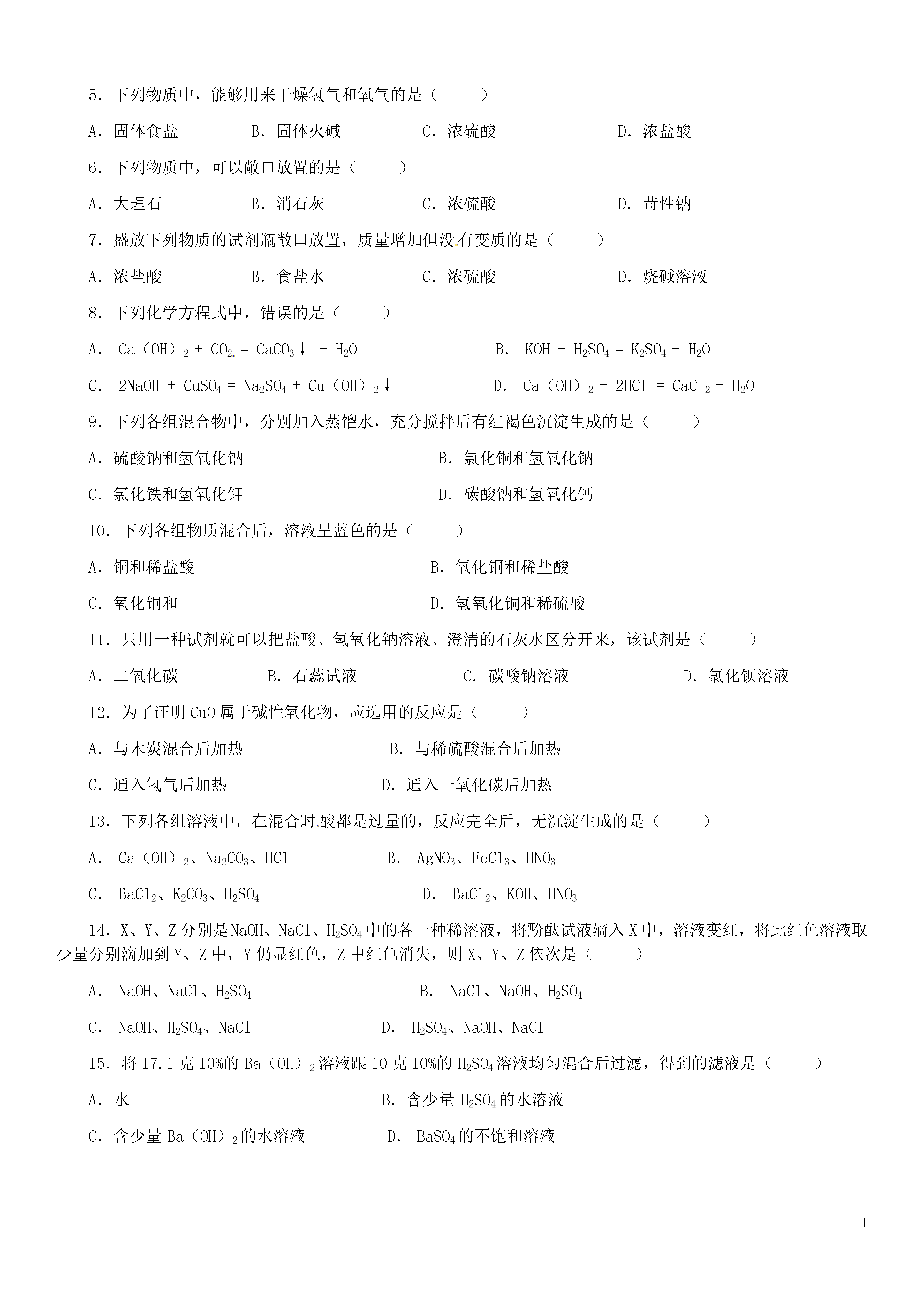 试题-四川-2015_四川省资阳市今科状元堂教育咨询服务有限公司九年级化学下册 第十单元 酸和碱复习资料(无答案)(新版)新人教版.doc