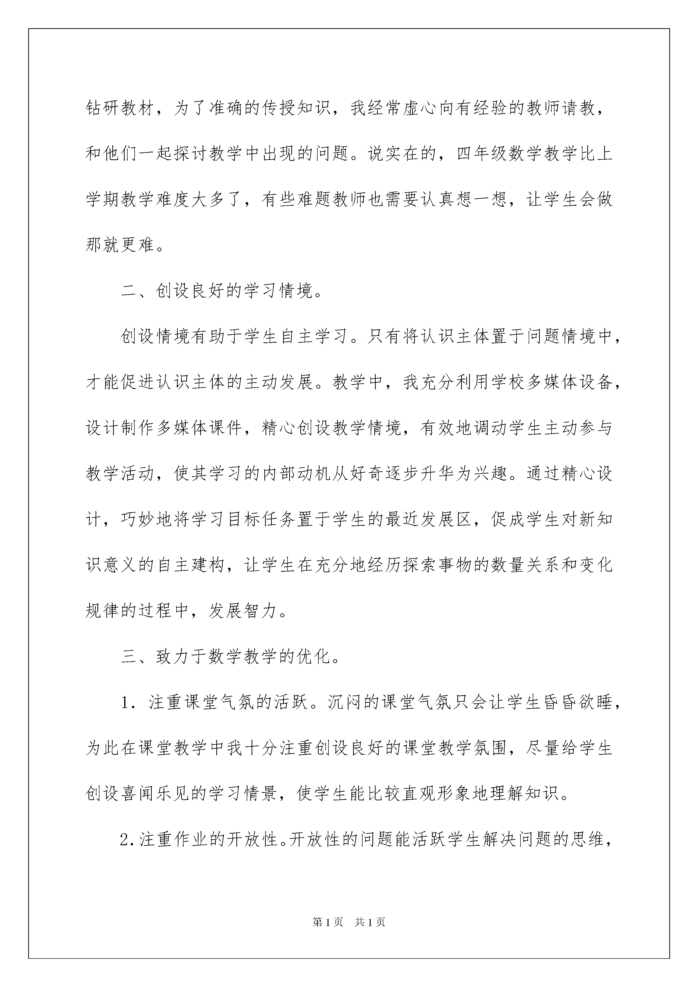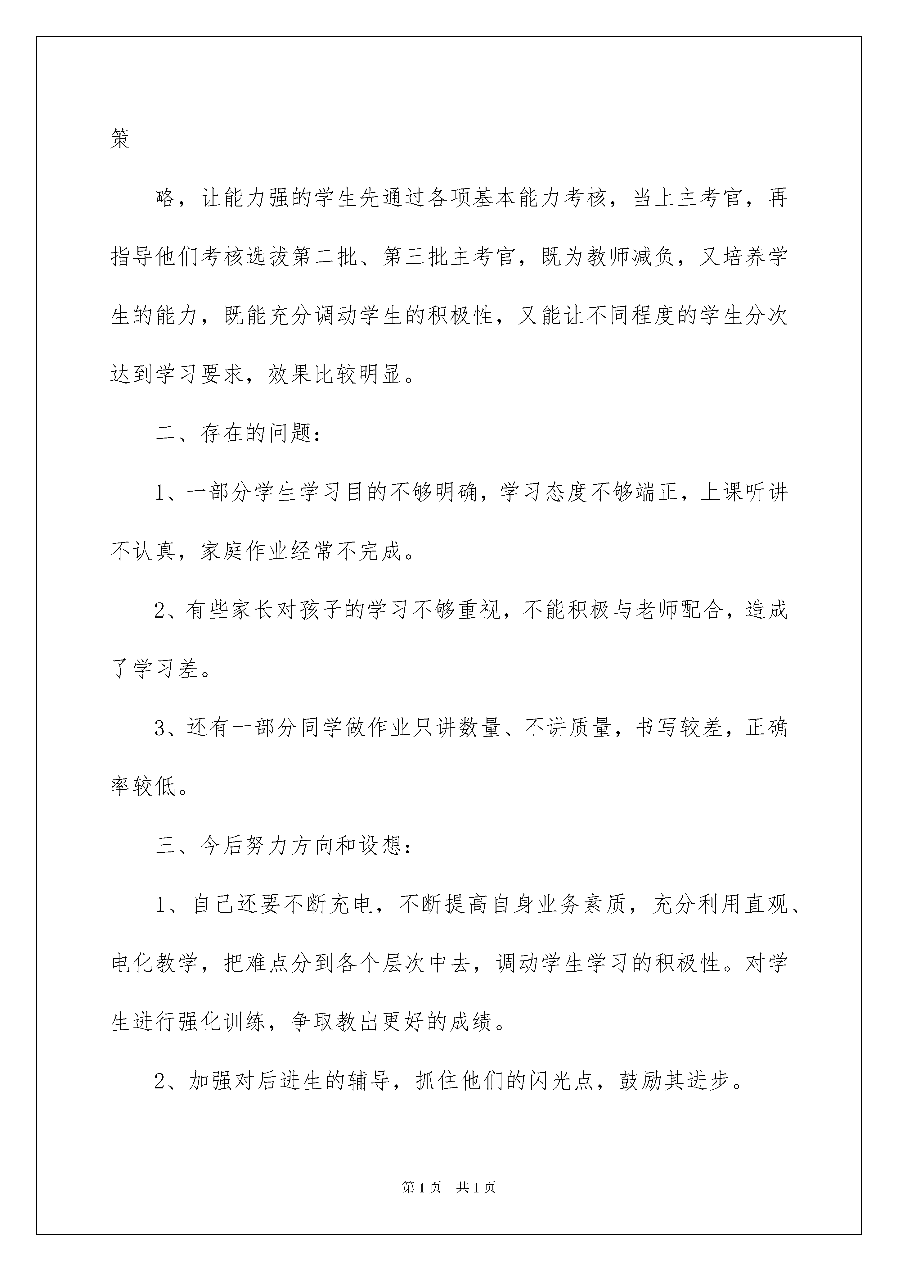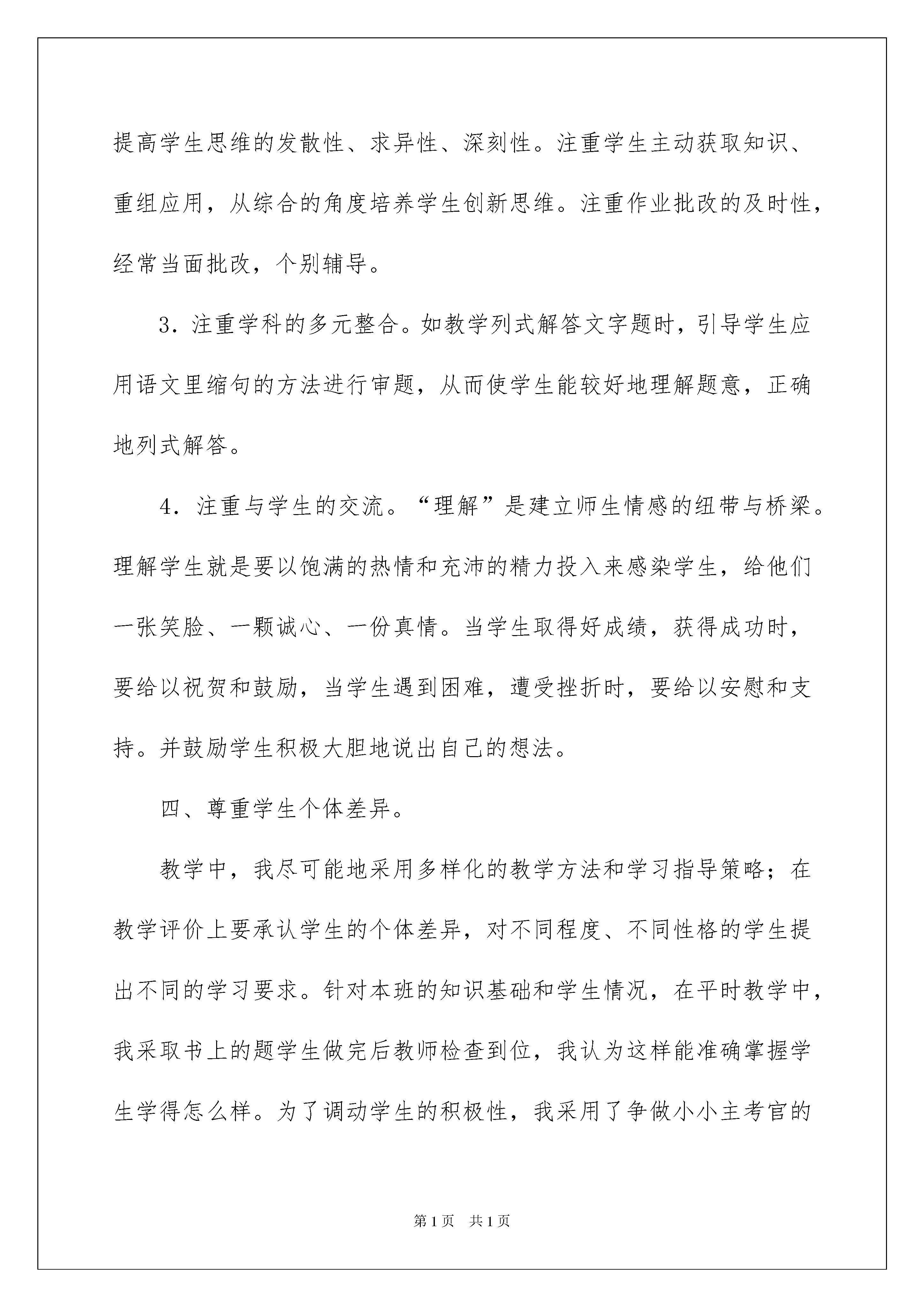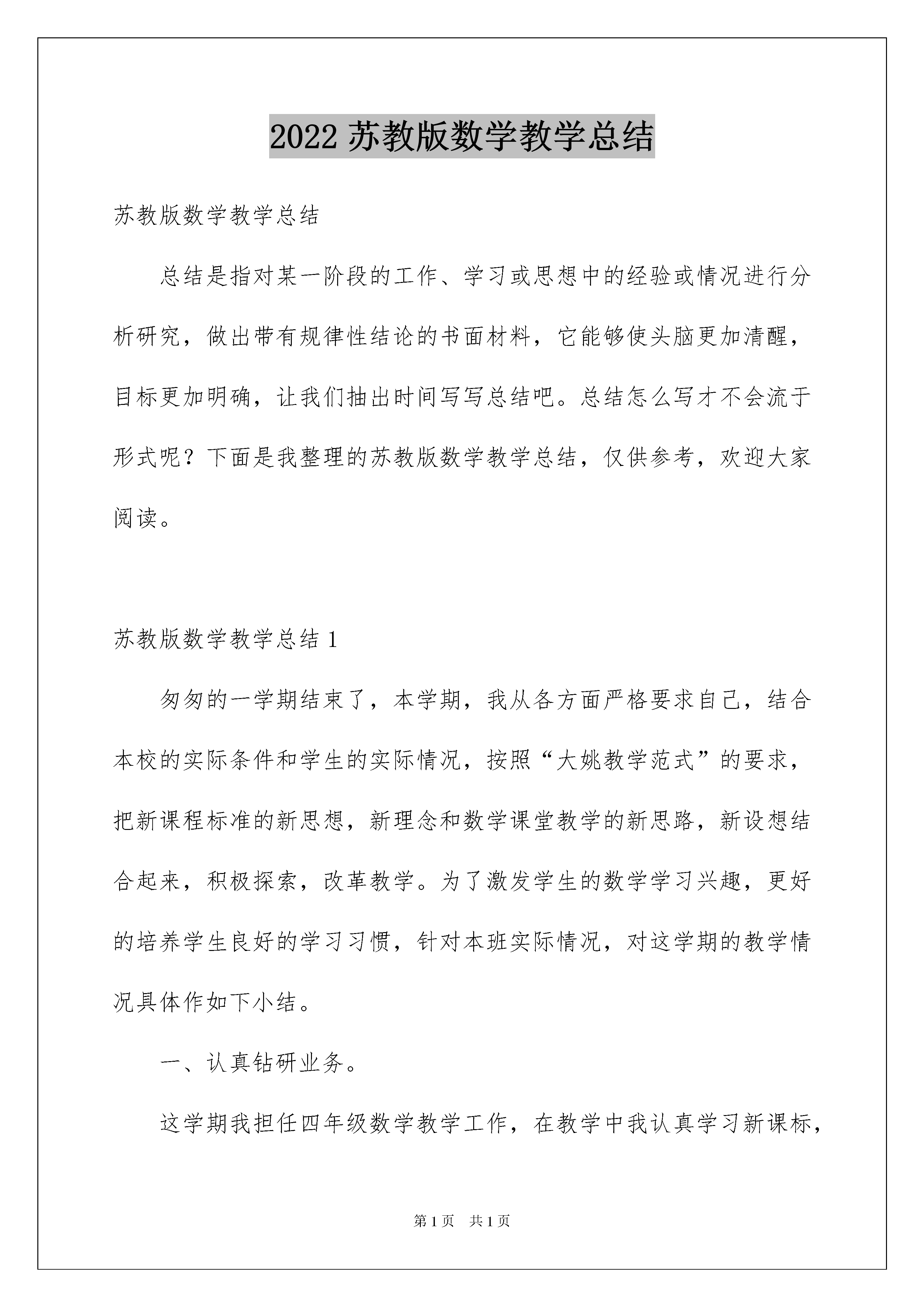 2022苏教版数学教学总结苏教版数学教学总结总结是指对某一阶段的工作、学习或思想中的经验或情况进行分析研究,做出带有规律性结论的书面材料,它能够使头脑更加清醒,目标更加明确,让我们抽出时间写写总结吧。总结怎么写才不会流于形式呢?下面是我整理的苏教版数学教学总结,仅供参考,欢迎大家阅读。苏教版数学教学总结1匆匆的一学期结束了,本学期,我从各方面严格要求自己,结合本校的实际条件和学生的实际情况,按照“大姚教学范式”的要求,把新课程标准的新思想,新理念和数学课堂教学的新思路,新设想结合起来,积极探索,改革教学。为了激发学生的数学学习兴趣,更好的培养学生良好的学习习惯,针对本班实际情况,对这学期的教学情况具体作如下小结。一、认真钻研业务。这学期我担任四年级数学教学工作,在教学中我认真学习新课标,钻研教材,为了准确的传授知识,我经常虚心向有经验的教师请教,和他们一起探讨教学中出现的问题。说实在的,四年级数学教学比上学期教学难度大多了,有些难题教师也需要认真想一想,让学生会做那就更难。二、创设良好的学习情境。创设情境有助于学生自主学习。只有将认识主体置于问题情境中,才能促进认识主体的主动发展。教学中,我充分利用学校多媒体设备,设计制作多媒体课件,精心创设教学情境,有效地调动学生主动参与教学活动,使其学习的内部动机从好奇逐步升华为兴趣。通过精心设计,巧妙地将学习目标任务置于学生的最近发展区,促成学生对新知识意义的自主建构,让学生在充分地经历探索事物的数量关系和变化规律的过程中,发展智力。三、致力于数学教学的优化。1.注重课堂气氛的活跃。沉闷的课堂气氛只会让学生昏昏欲睡,为此在课堂教学中我十分注重创设良好的课堂教学氛围,尽量给学生创设喜闻乐见的学习情景,使学生能比较直观形象地理解知识。2.注重作业的开放性。开放性的问题能活跃学生解决问题的思维,提高学生思维的发散性、求异性、深刻性。注重学生主动获取知识、重组应用,从综合的角度培养学生创新思维。注重作业批改的及时性,经常当面批改,个别辅导。3.注重学科的多元整合。如教学列式解答文字题时,引导学生应用语文里缩句的方法进行审题,从而使学生能较好地理解题意,正确地列式解答。4.注重与学生的交流。“理解”是建立师生情感的纽带与桥梁。理解学生就是要以饱满的热情和充沛的精力投入来感染学生,给他们一张笑脸、一颗诚心、一份真情。当学生取得好成绩,获得成功时,要给以祝贺和鼓励,当学生遇到困难,遭受挫折时,要给以安慰和支持。并鼓励学生积极大胆地说出自己的想法。四、尊重学生个体差异。教学中,我尽可能地采用多样化的教学方法和学习指导策略;在教学评价上要承认学生的个体差异,对不同程度、不同性格的学生提出不同的学习要求。针对本班的知识基础和学生情况,在平时教学中,我采取书上的题学生做完后教师检查到位,我认为这样能准确掌握学生学得怎么样。为了调动学生的积极性,我采用了争做小小主考官的策略,让能力强的学生先通过各项基本能力考核,当上主考官,再指导他们考核选拔第二批、第三批主考官,既为教师减负,又培养学生的能力,既能充分调动学生的积极性,又能让不同程度的学生分次达到学习要求,效果比较明显。二、存在的问题:1、一部分学生学习目的不够明确,学习态度不够端正,上课听讲不认真,家庭作业经常不完成。2、有些家长对孩子的学习不够重视,不能积极与老师配合,造成了学习差。3、还有一部分同学做作业只讲数量、不讲质量,书写较差,正确率较低。三、今后努力方向和设想:1、自己还要不断充电,不断提高自身业务素质,充分利用直观、电化教学,把难点分到各个层次中去,调动学生学习的积极性。对学生进行强化训练,争取教出更好的成绩。2、加强对后进生的辅导,抓住他们的闪光点,鼓励其进步。3、对学生注重加强思想教育,培养良好的学习习惯,培养认真审题、自我检查的能力。一、主要成绩和经验1、我首先用德律己。自觉遵守教师职业道德,做到干一行,爱一行。勤奋学习,刻苦钻研教材,精心备课,及时总结得失,更新知识,不断提高教学艺术。以认真负责的态度上好每堂课,以满腔的爱心关心学生,积极做好学生的思想工作,既教书又育人,对学生一视同仁。本学期全勤,没因个人私事耽误学生一节课,能主动认真的服从和配合学校各级领导安排的工作,并与本年级组同事们团结协作,相互帮助,圆满完成了教学任务。2、用心教学。真对本班学生的差异和年龄特点,因材施教。教学中重点做到精讲多练,重视运用直观演示、运用学具动手操作,精心设计练习课,讲究练习形式的多样化,提高了练习效率。从不同角度创设了课堂有效教学情境,整体上使不同学生的知识、技能得到了不同程度的进步和提高。