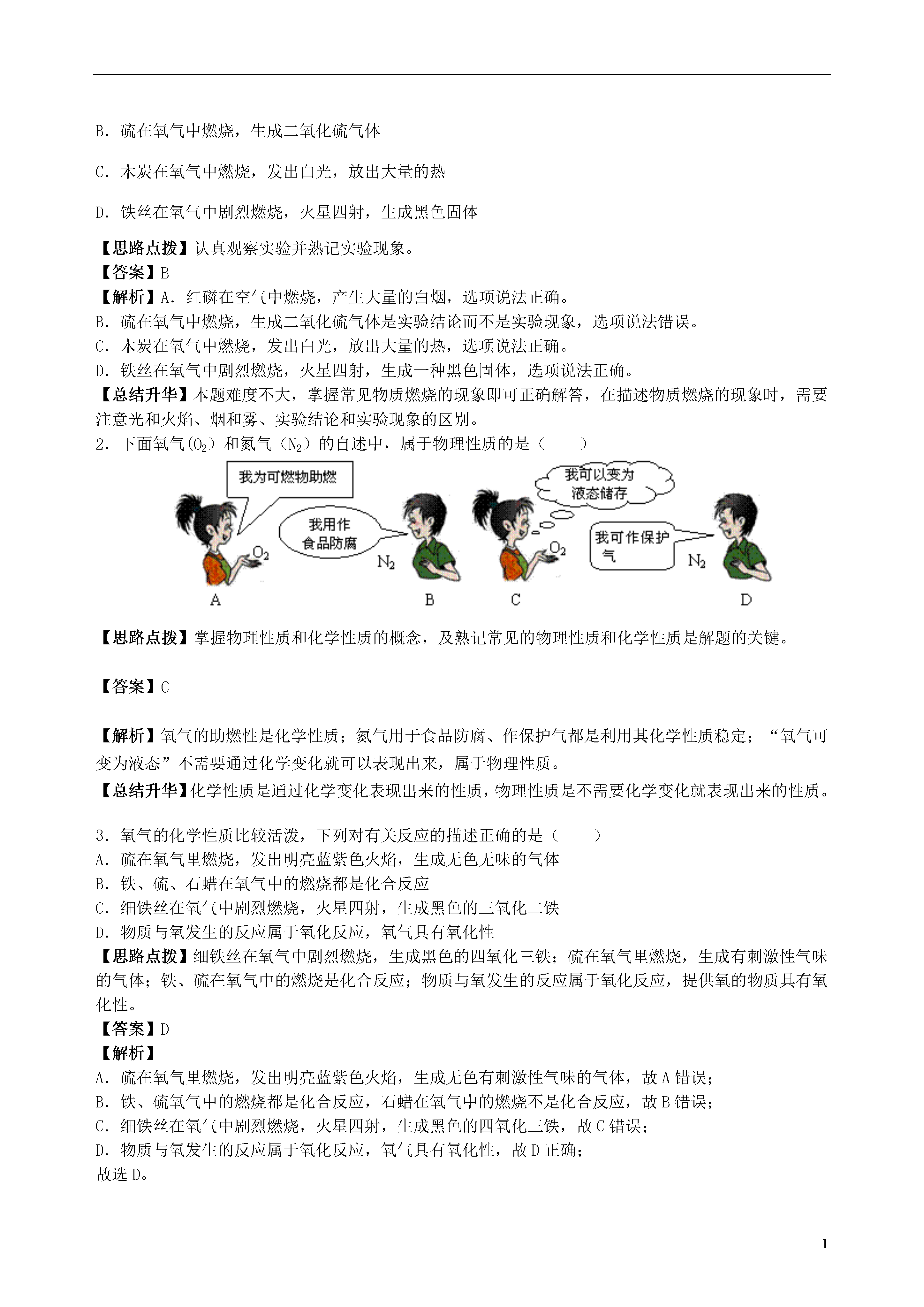 试题-全国-2018_2018学年度九年级化学上册《氧气的性质》知识点归纳+例题导析(含解析)(新版)新人教版.doc
