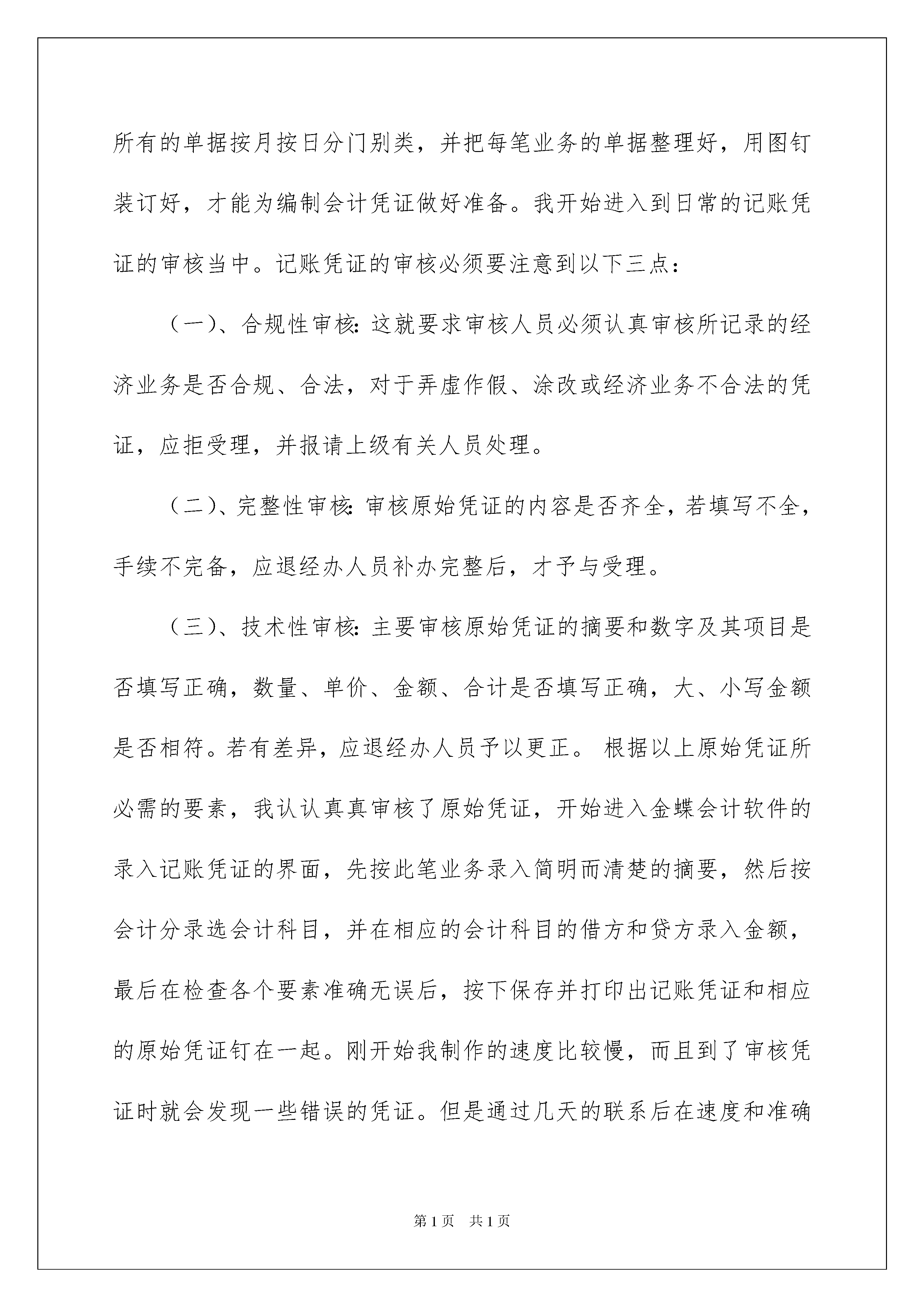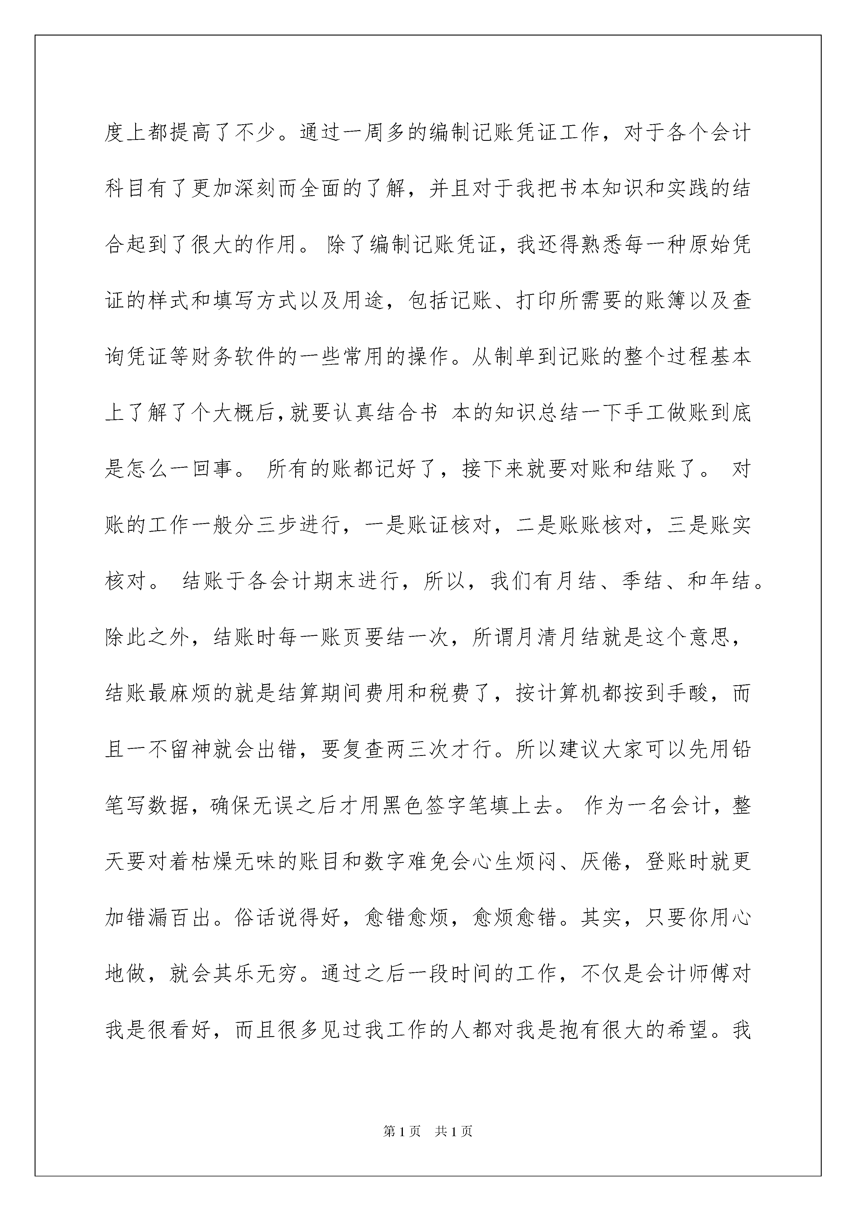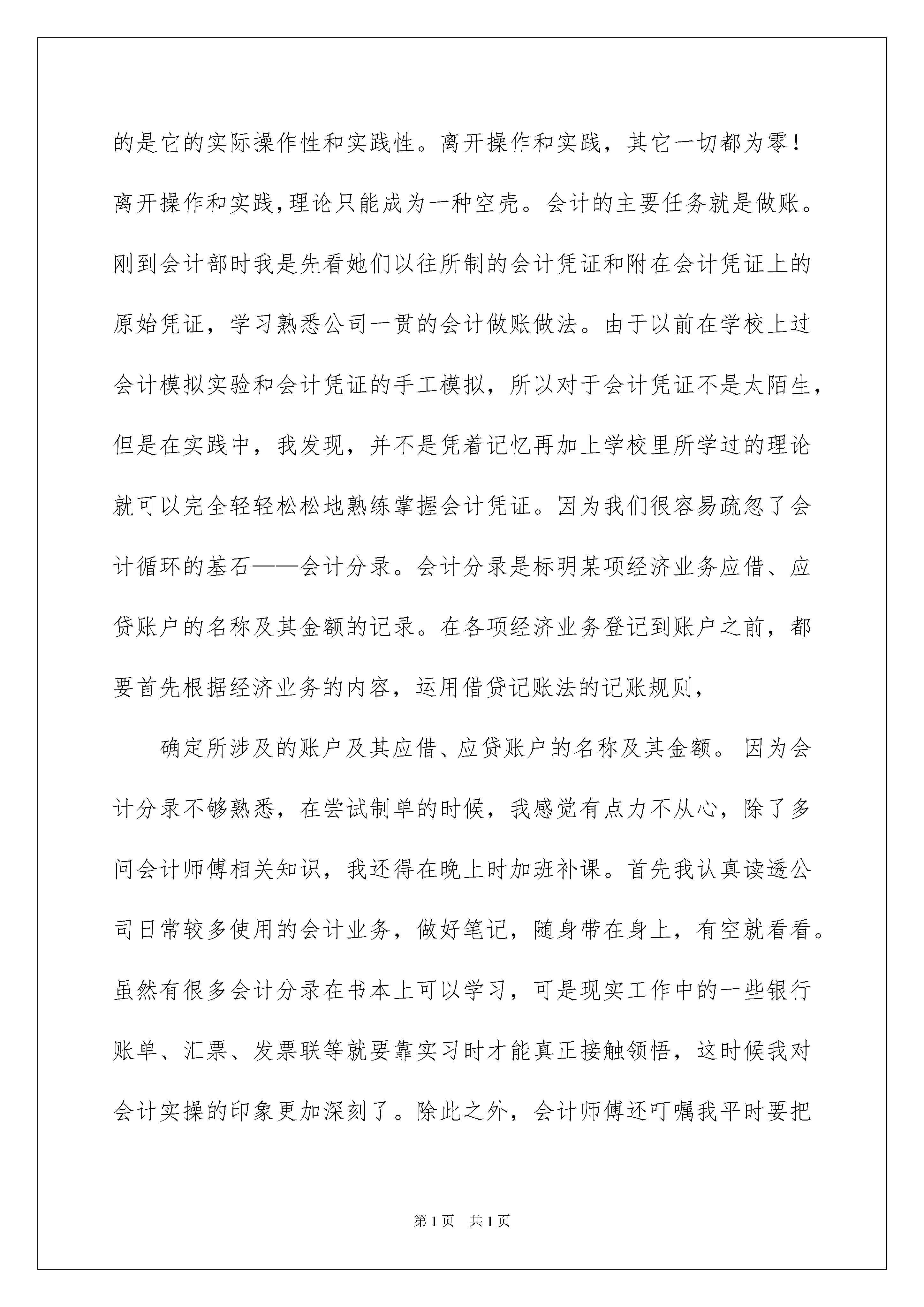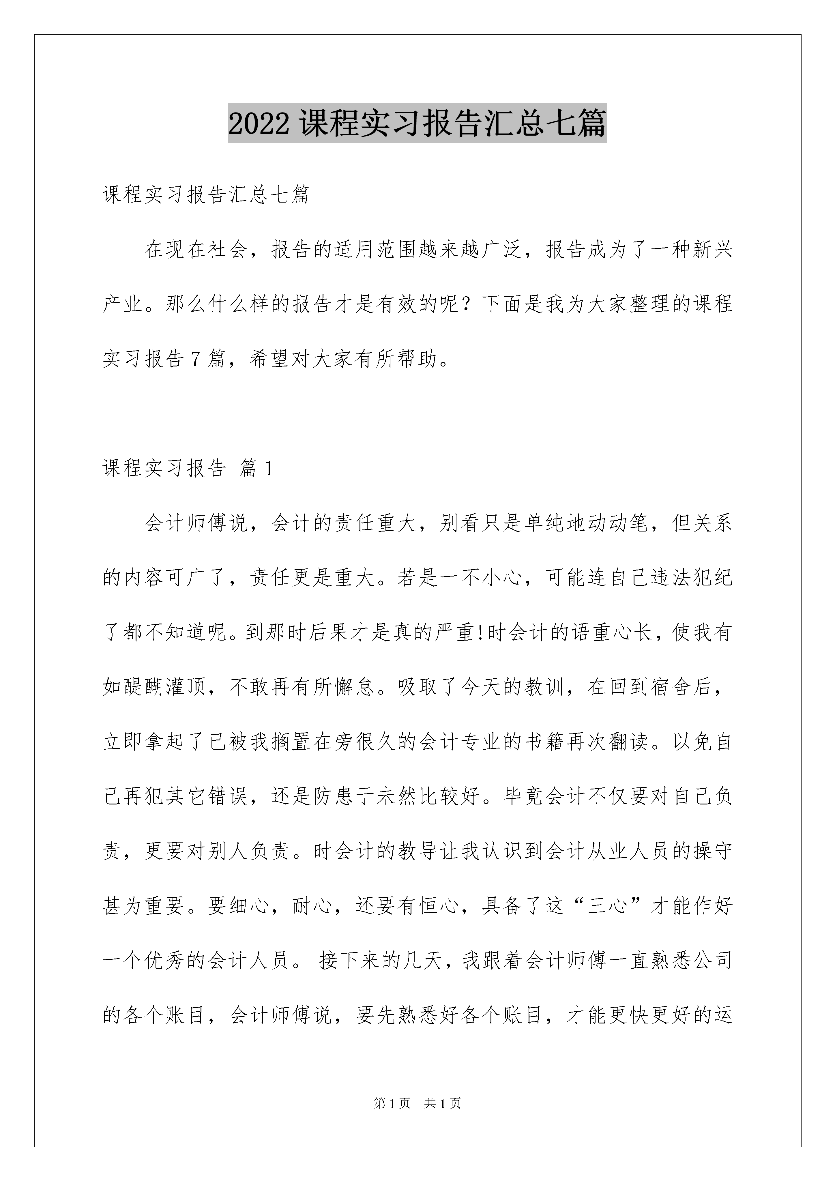 2022课程实习报告汇总七篇课程实习报告汇总七篇在现在社会,报告的适用范围越来越广泛,报告成为了一种新兴产业。那么什么样的报告才是有效的呢?下面是我为大家整理的课程实习报告7篇,希望对大家有所帮助。课程实习报告篇1会计师傅说,会计的责任重大,别看只是单纯地动动笔,但关系的内容可广了,责任更是重大。若是一不小心,可能连自己违法犯纪了都不知道呢。到那时后果才是真的严重!时会计的语重心长,使我有如醍醐灌顶,不敢再有所懈怠。吸取了今天的教训,在回到宿舍后,立即拿起了已被我搁置在旁很久的会计专业的书籍再次翻读。以免自己再犯其它错误,还是防患于未然比较好。毕竟会计不仅要对自己负责,更要对别人负责。时会计的教导让我认识到会计从业人员的操守甚为重要。要细心,耐心,还要有恒心,具备了这“三心”才能作好一个优秀的会计人员。接下来的几天,我跟着会计师傅一直熟悉公司的各个账目,会计师傅说,要先熟悉好各个账目,才能更快更好的运用到实际工作中去。我一遇到不懂的问题就向时会计请教,他总是无比耐心,不厌其烦的回答我的问题。我很庆幸自己遇到了一位好师傅。(2)她教我如何核对银行日记账,并且带我一起去银行,实地熟练地操作,教我为几个常有业务往来的单位汇款,教我看税率,教我如何计算各种所得税,并教我怎样帮职工派发工资等。我真是受益匪浅,得到的知识良多,最起码比我预期中的多。我为自己刚来时的幼稚想法感到羞愧,还好我已经在时会计的带领下渐入佳境了。到月初的时候,师傅让我跟着她一起来派发公司员工的工资。我很认真的看着师傅的每一个步骤,我希望能通过我的努力来证明自己。师傅对于我的认真劲很是赞赏。她告诉我,每个月的月初时非常的忙碌的,不仅要派发员工的工资,还要和各个客户来结算账目。我仔细的听取师傅说的每一句话,生怕漏掉了一点。在接下来的日子里,我所作的工作就是一边学习公司的业务处理,一边试着自己处理业务。师傅对我说,在处理业务时要多核算几遍,你是新手,要有耐心,要有不怕重复的毅力。我很是高兴,因为我逐渐的融入到了这个大环境当中去了。经过了一段时间的实践,我发现,会计其实更讲究的是它的实际操作性和实践性。离开操作和实践,其它一切都为零!离开操作和实践,理论只能成为一种空壳。会计的主要任务就是做账。刚到会计部时我是先看她们以往所制的会计凭证和附在会计凭证上的原始凭证,学习熟悉公司一贯的会计做账做法。由于以前在学校上过会计模拟实验和会计凭证的手工模拟,所以对于会计凭证不是太陌生,但是在实践中,我发现,并不是凭着记忆再加上学校里所学过的理论就可以完全轻轻松松地熟练掌握会计凭证。因为我们很容易疏忽了会计循环的基石——会计分录。会计分录是标明某项经济业务应借、应贷账户的名称及其金额的记录。在各项经济业务登记到账户之前,都要首先根据经济业务的内容,运用借贷记账法的记账规则,确定所涉及的账户及其应借、应贷账户的名称及其金额。因为会计分录不够熟悉,在尝试制单的时候,我感觉有点力不从心,除了多问会计师傅相关知识,我还得在晚上时加班补课。首先我认真读透公司日常较多使用的会计业务,做好笔记,随身带在身上,有空就看看。虽然有很多会计分录在书本上可以学习,可是现实工作中的一些银行账单、汇票、发票联等就要靠实习时才能真正接触领悟,这时候我对会计实操的印象更加深刻了。除此之外,会计师傅还叮嘱我平时要把所有的单据按月按日分门别类,并把每笔业务的单据整理好,用图钉装订好,才能为编制会计凭证做好准备。我开始进入到日常的记账凭证的审核当中。记账凭证的审核必须要注意到以下三点:(一)、合规性审核:这就要求审核人员必须认真审核所记录的经济业务是否合规、合法,对于弄虚作假、涂改或经济业务不合法的凭证,应拒受理,并报请上级有关人员处理。(二)、完整性审核:审核原始凭证的内容是否齐全,若填写不全,手续不完备,应退经办人员补办完整后,才予与受理。(三)、技术性审核:主要审核原始凭证的摘要和数字及其项目是否填写正确,数量、单价、金额、合计是否填写正确,大、小写金额是否相符。若有差异,应退经办人员予以更正。根据以上原始凭证所必需的要素,我认认真真审核了原始凭证,开始进入金蝶会计软件的录入记账凭证的界面,先按此笔业务录入简明而清楚的摘要,然后按会计分录选会计科目,并在相应的会计科目的借方和贷方录入金额,最后在检查各个要素准确无误后,按下保存并打印出记账凭证和相应的原始凭证钉在一起。刚开始我制作的速度比较慢,而且到了审核凭证时就会发现一些错误的凭证。但是通过几天的联系后在速度和准确度上都提高了不少。通过一周多的编制记账凭证工作,对于各个会计科目有了更加深刻而全面的了解,并且对于