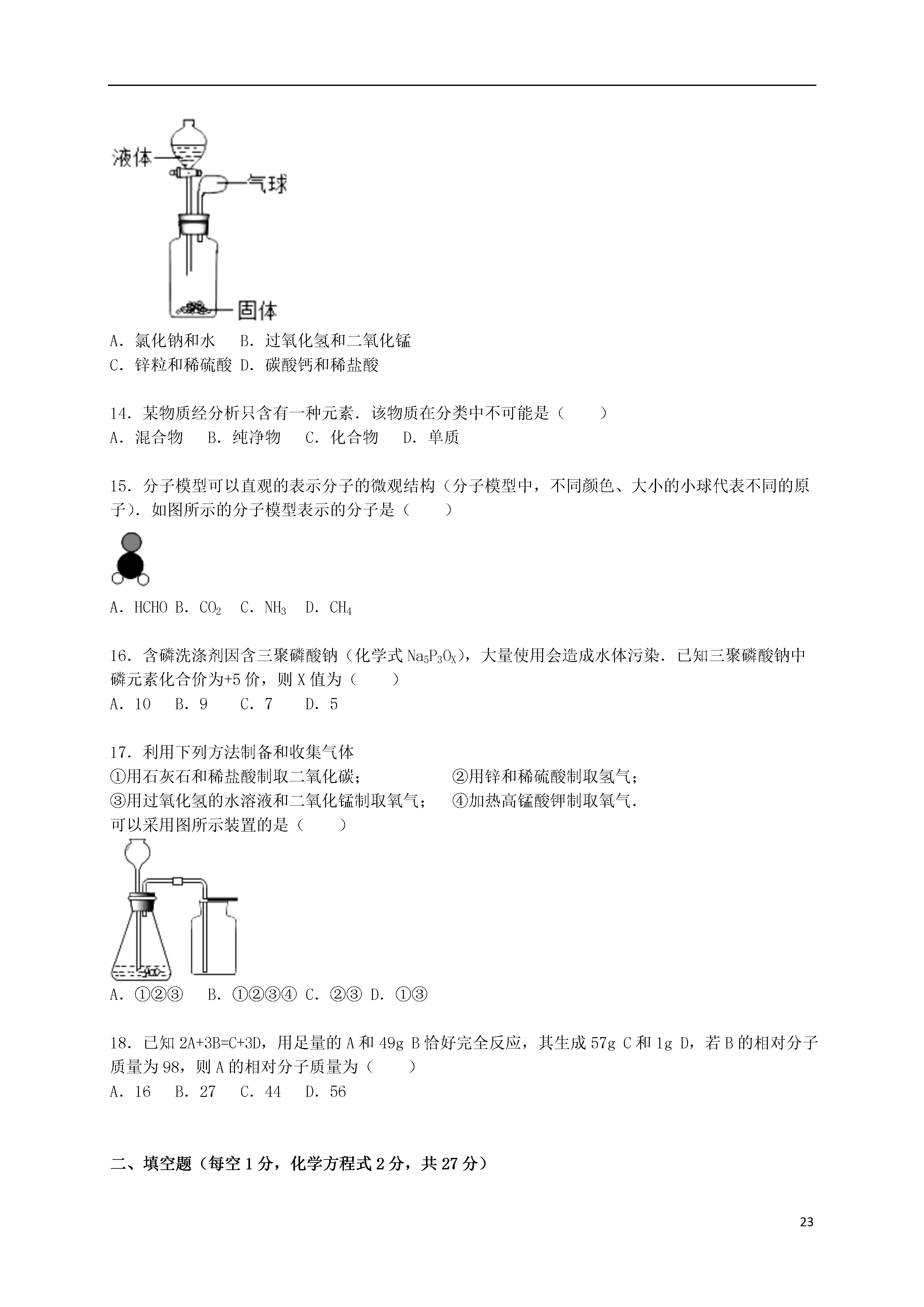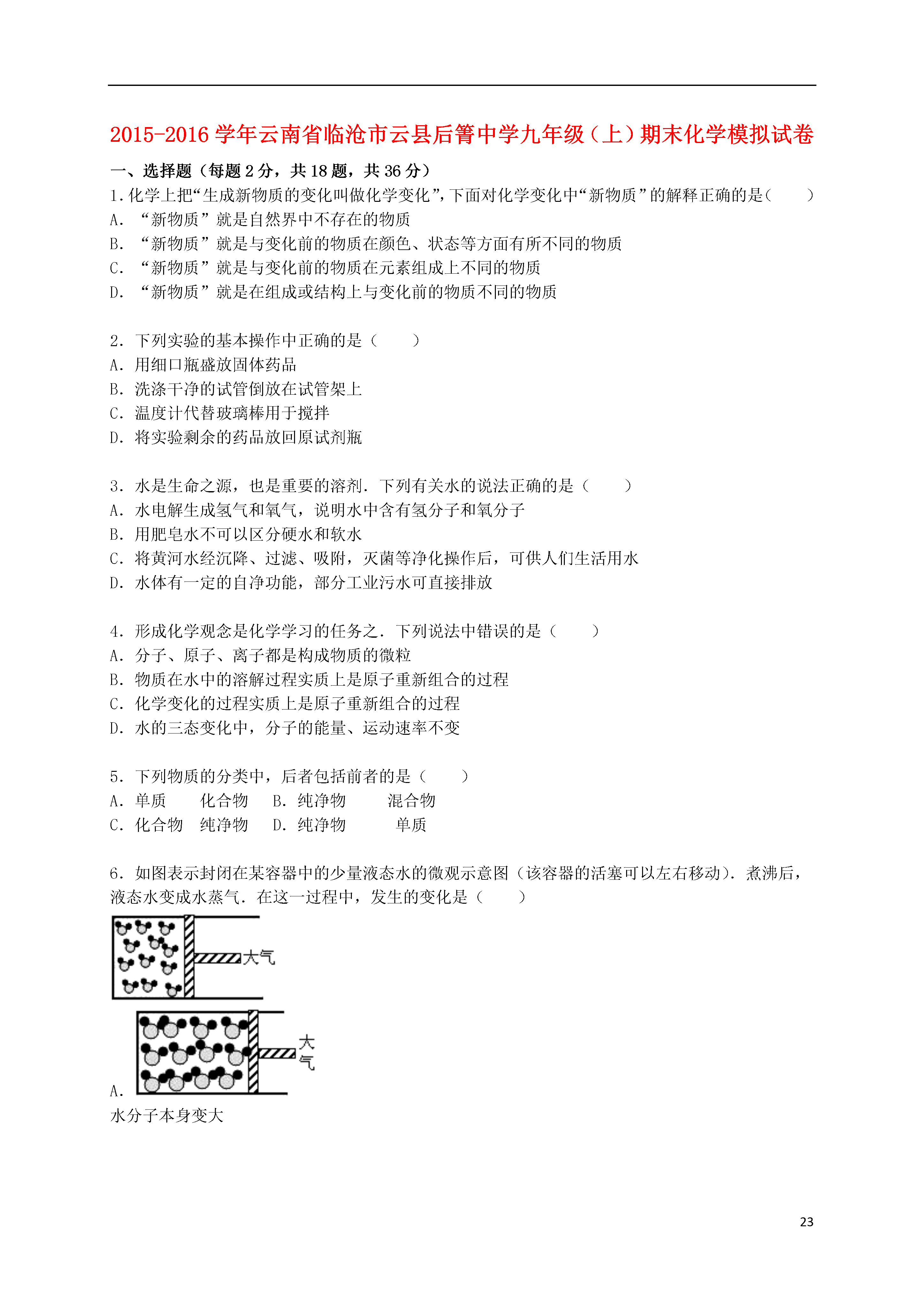试题-云南-2016_云南省临沧市云县后箐中学2015-2016学年九年级化学上学期期末模拟试题(含解析) 新人教版.doc