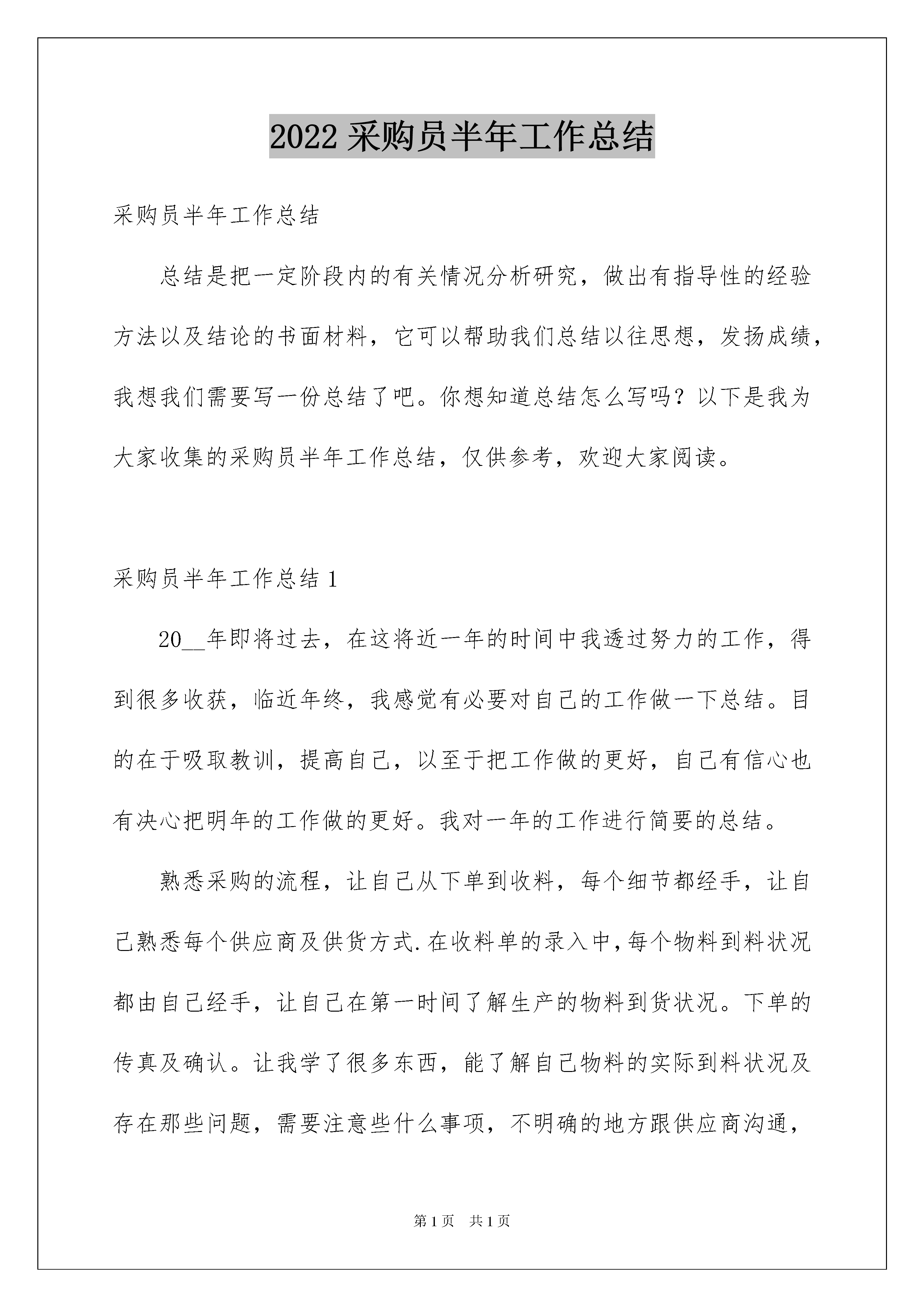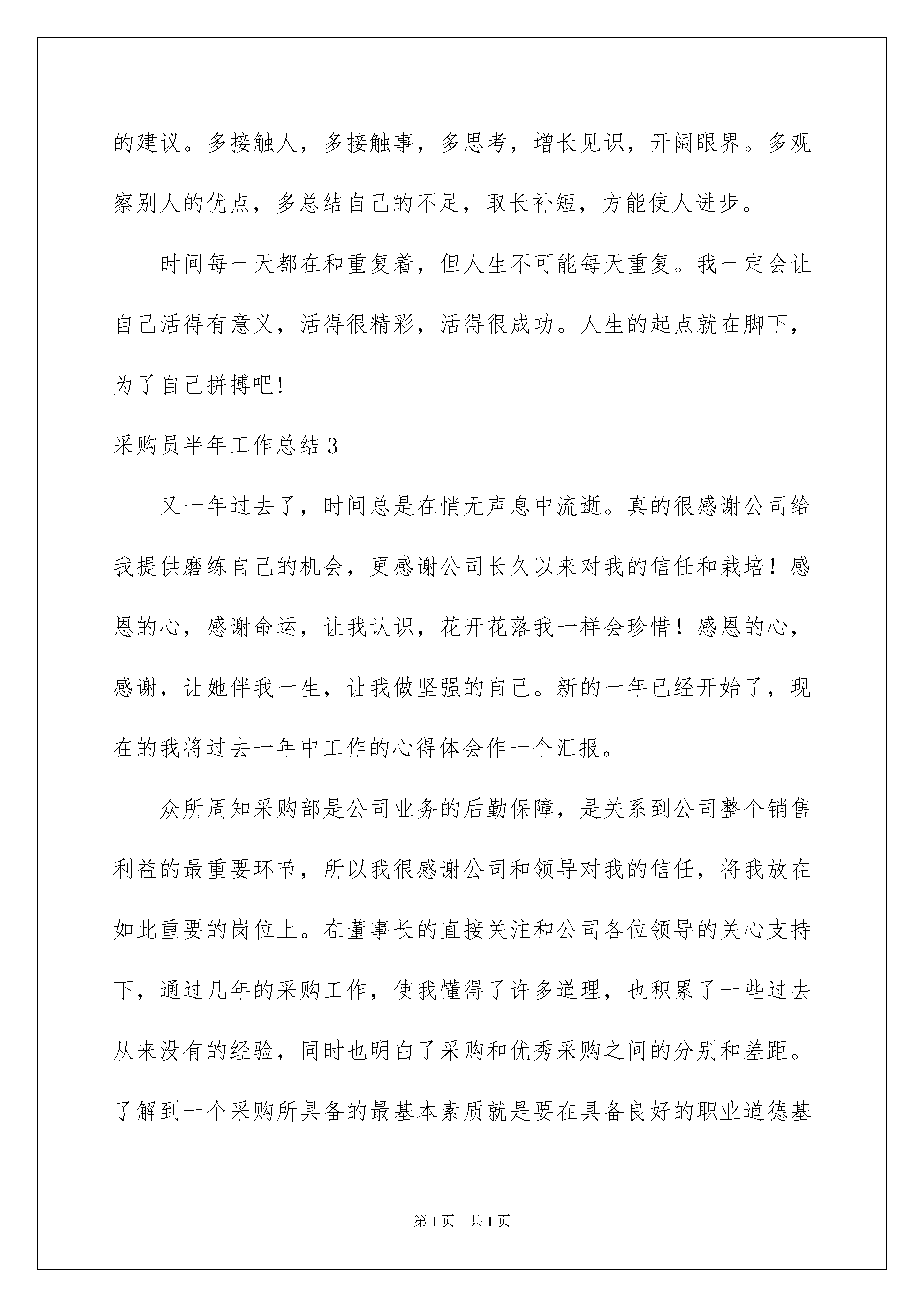 2022采购员半年工作总结采购员半年工作总结总结是把一定阶段内的有关情况分析研究,做出有指导性的经验方法以及结论的书面材料,它可以帮助我们总结以往思想,发扬成绩,我想我们需要写一份总结了吧。你想知道总结怎么写吗?以下是我为大家收集的采购员半年工作总结,仅供参考,欢迎大家阅读。采购员半年工作总结120__年即将过去,在这将近一年的时间中我透过努力的工作,得到很多收获,临近年终,我感觉有必要对自己的工作做一下总结。目的在于吸取教训,提高自己,以至于把工作做的更好,自己有信心也有决心把明年的工作做的更好。我对一年的工作进行简要的总结。熟悉采购的流程,让自己从下单到收料,每个细节都经手,让自己熟悉每个供应商及供货方式.在收料单的录入中,每个物料到料状况都由自己经手,让自己在第一时间了解生产的物料到货状况。下单的传真及确认。让我学了很多东西,能了解自己物料的实际到料状况及存在那些问题,需要注意些什么事项,不明确的地方跟供应商沟通,了解并熟悉此物料,且跟供应商有更进一步的沟通及联系。方便以后的调货事宜。明年必须把这份工作做到更细致,让每次的确认订单做到万无一失,坚持确认再确认,不在发生没有收到订单事宜。负责一些物料的调货事宜,尤其是远程的物料。学会计划自己的物料到货会不会造成满仓,造成很多的库存量,能否影响生产的进度,自己请款资金会不会影响公司的资金流动,明年会把远程物料计划更详细,让自己了解所有物料的进度。明确计划对于生产来说是重要的。有计划的生活及工作才是最好的。年底参与单价的录入及整理,真正介入到单价里面,也能够说进入采购的一个大门,才明白自己真的只是学了一点的毛皮,了解在不影响生产进度,能让供应商准时到货并不是好的采购,好的采购是在供应商能准时听自己的调度还得带给最好的服务态度及质量。且要把最好的产品以最低的价格给自己,那才是真正好的采购。货比三家。透过不同的厂家给出不同的价位,在以理想的价位压自己心中最愿意最好的供应商,得到自己想到的结果。期望以后自己进入这个采购的大门里面。参与ERP的工作录入及整理。最想说的话,这个ERP系统的引入是我们今年最大的帮忙了,透过ERP让自己学到每个车种的配置,自己的采购物料的到货状况,仓库的库存,等。让所有的物料都明白化,及精确化。所有物料有依可询,有据可依。参与盘点工作.让自己在实践中了解所有的零件.了解仓库的库存量.透过盘点工作.了解零件物料在哪方面造成库存.那些为死库存,为何会造成这些库存量.怎样才能消化库存,让仓库成为零库存,让我们的供应商成为我们的仓库.自己对自行车的不了解,,有点盲目的调货,对自己所调的物料不能跟踪到底,没有做到位,做事不够细心,思考不周全。物料跟催不紧,不清楚物料的紧迫性,处理问题没有力度,不够果断。明年努力清楚工作的重要性,努力学习了解自行车的配置及为何要如何配置。单价的计算方式从何得来。用一颗感恩的心应对自己的工作,调整好心态问题。做到采购的适价,,适质,适量,适时,适地。期望明年工作能职责到个人,分工明确规定。让自己的物料更了解职责更明确。20__年是收获的一年,也是充实的一年,和大家一齐工作更是一件很愉快的事。透过本年度的工作和学习,使我在采购上积累了很多知识和经验,并在各个方面上都得到充分的锻炼。身为公司的员工,公司的兴衰与我有着直接的联系。所以我愿意和公司一齐向着更高的目标前进为我们的公司奉献一份力量!采购员半年工作总结2__年我不但学到了很多之前从没接触到的知识,开阔了自己的眼界,丰富了自己的专业知识和内涵,更加体会到了在一个高效集体中自己应该多与人沟通,多与人分享自己在工作中的成功喜悦和遇到的困难。在工作中,我都会积极努力,多多了解与工作相关的产品知识和产品性能,方便在工作中快速灵活的运用各种产品特性来做到采买准确,价格合理,及时完成。我会用积极的工作态度,快速的反应来配合领导完成每一项采购计划。在___的每一天我都在快乐的工作着,快乐的学习着,我是一名快乐的工作者,我在这里成长着。虽然自己身上还有很多做为合格采购的不足之处,但是我有决心,我一定会通过自己的不断努力,总结工作中的经验,而进步的。我会多多学习请教,如何更好的与人沟通,学习如何更好的,细致的,正确的完成每一个任务。我会努力学习专业知识,完善自己的工作技能,高效完成领导的安排,虚心接受领导的建议。多接触人,多接触事,多思考,增长见识,开阔眼界。多观察别人的优点,多总结自己的不足,取长补短,方能使人进步。时间每一天都在和重复着,但人生不可能每天重复。我一定会让自己活得有意义,活得很精彩,活得很成功。人生的起点就在脚下,为了自己拼搏吧!采