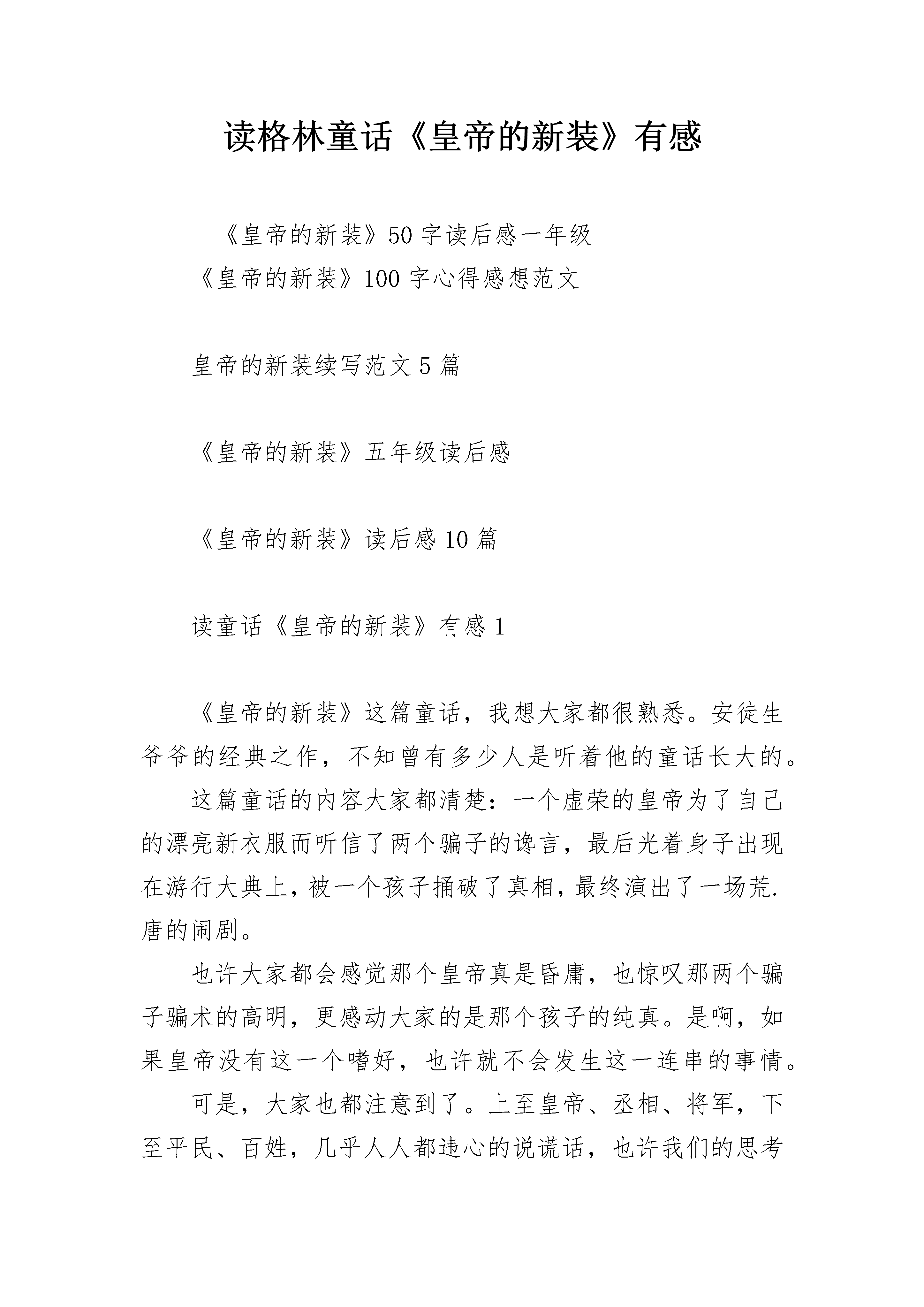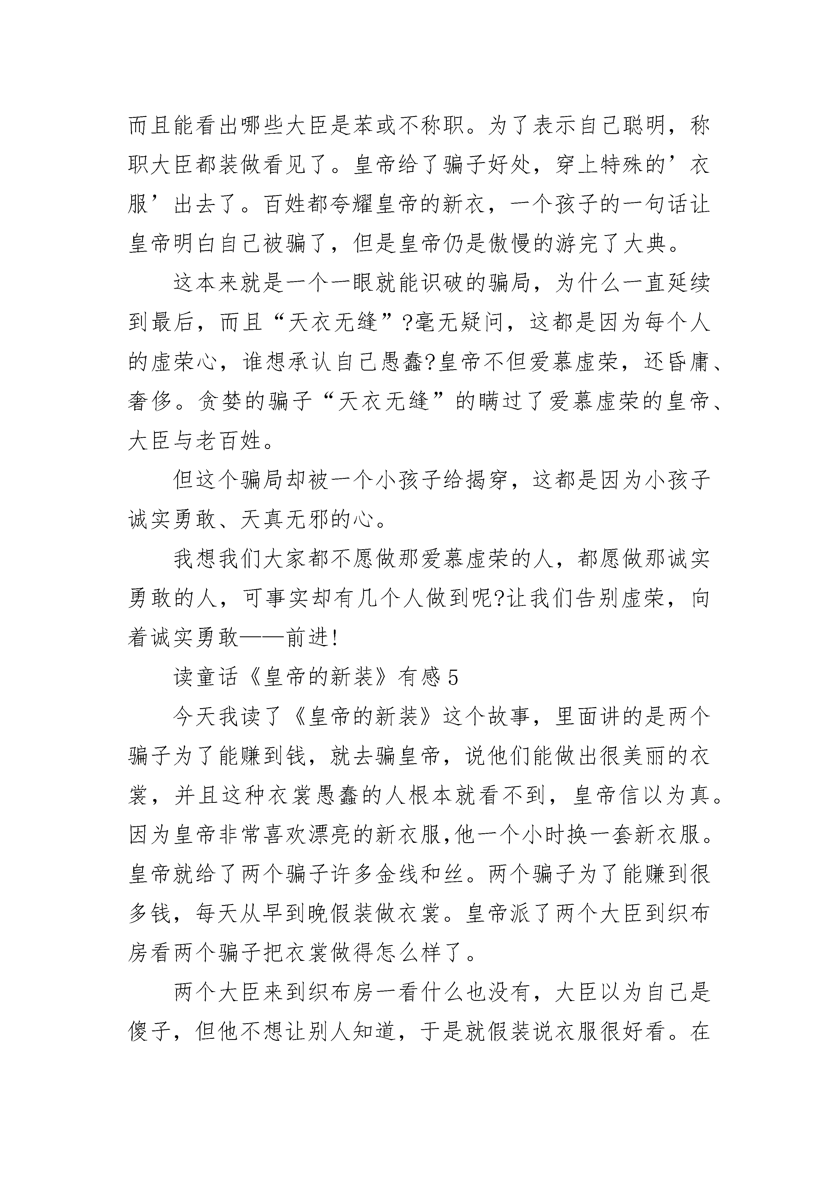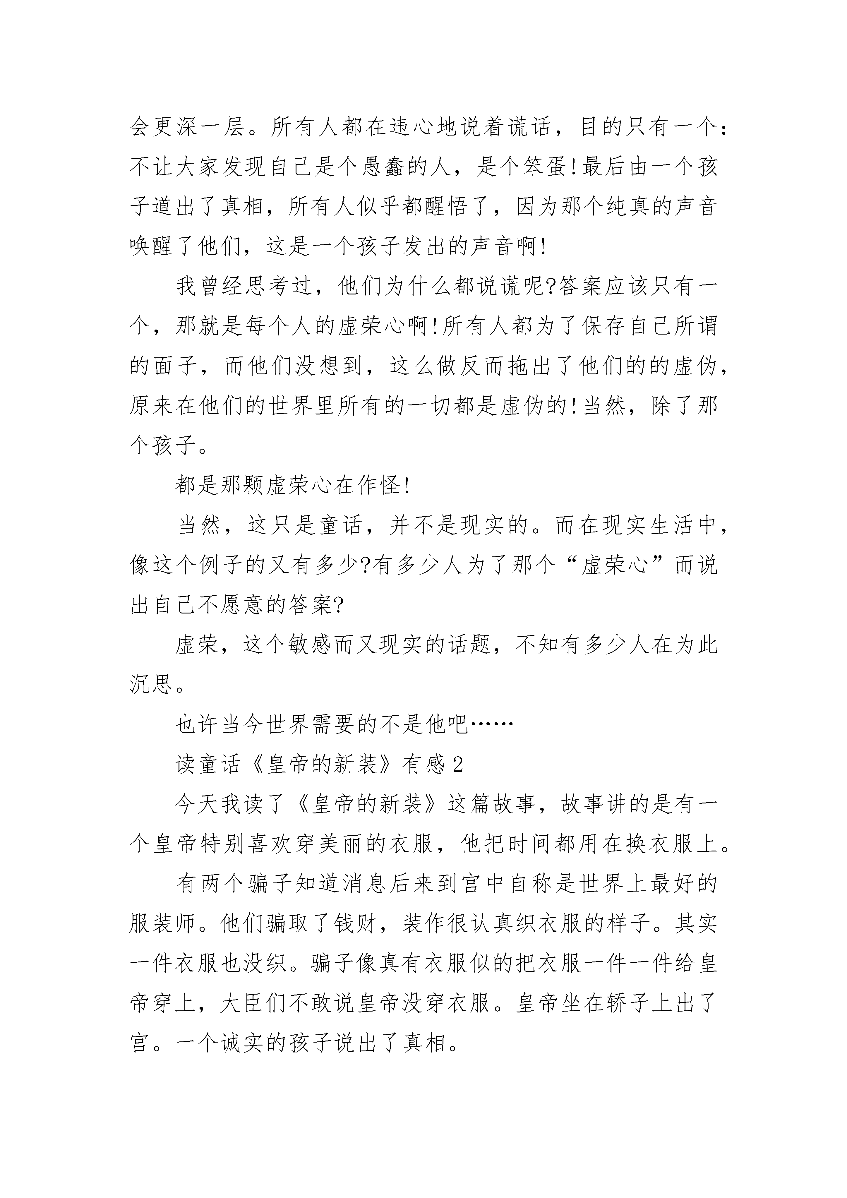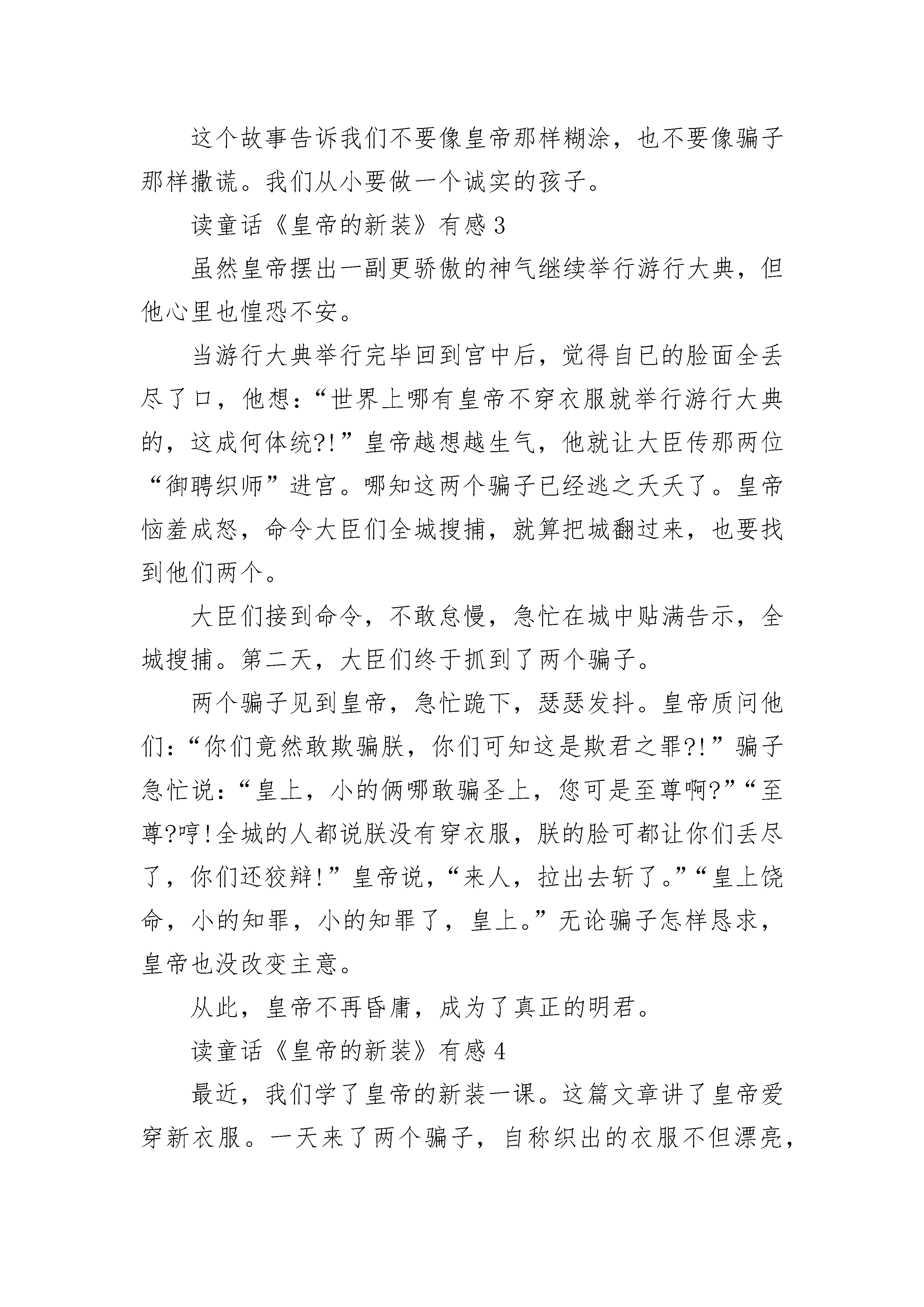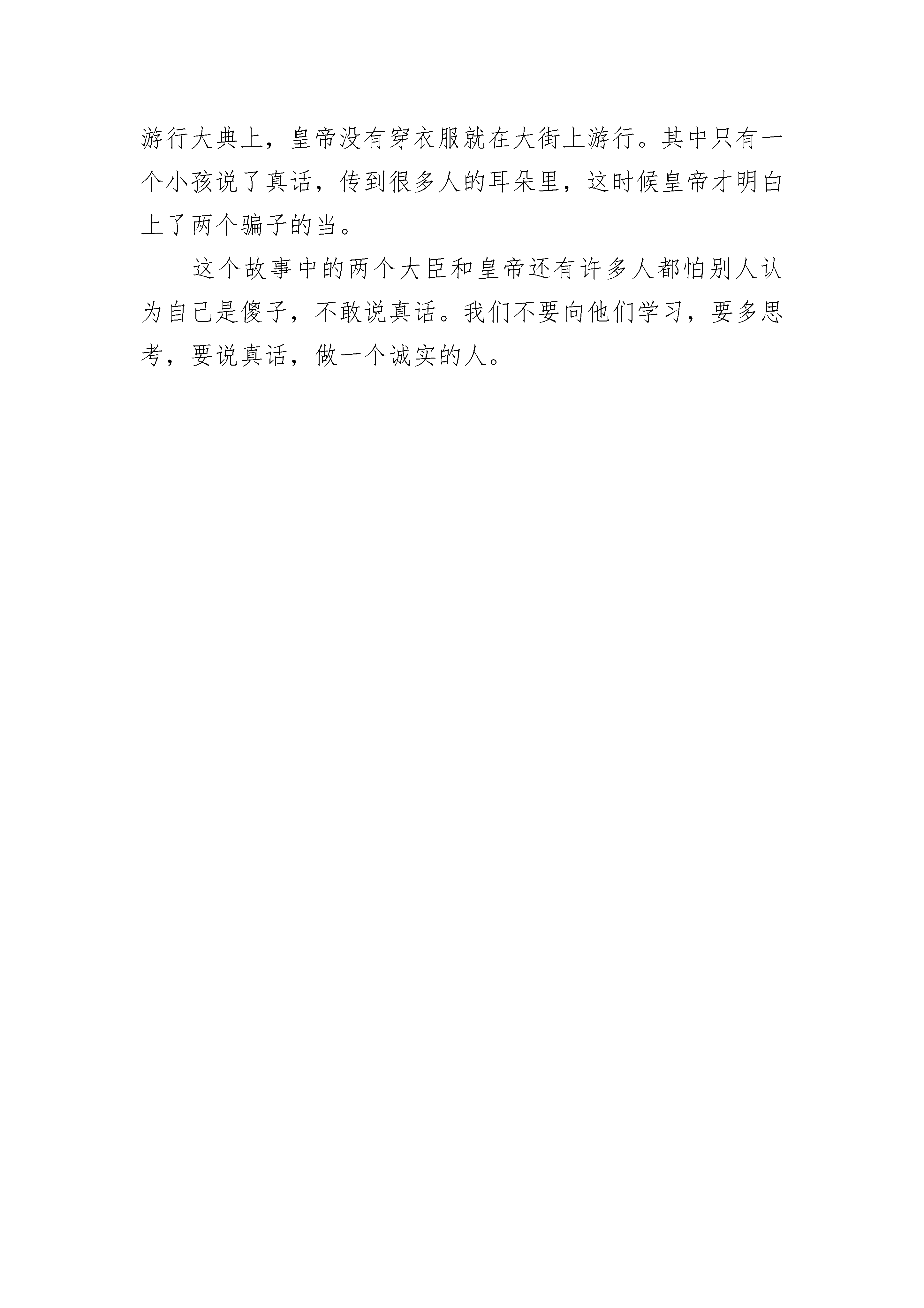 读格林童话《皇帝的新装》有感《皇帝的新装》50字读后感一年级《皇帝的新装》100字心得感想范文皇帝的新装续写范文5篇《皇帝的新装》五年级读后感《皇帝的新装》读后感10篇读童话《皇帝的新装》有感1《皇帝的新装》这篇童话,我想大家都很熟悉。安徒生爷爷的经典之作,不知曾有多少人是听着他的童话长大的。这篇童话的内容大家都清楚:一个虚荣的皇帝为了自己的漂亮新衣服而听信了两个骗子的谗言,最后光着身子出现在游行大典上,被一个孩子捅破了真相,最终演出了一场荒.唐的闹剧。也许大家都会感觉那个皇帝真是昏庸,也惊叹那两个骗子骗术的高明,更感动大家的是那个孩子的纯真。是啊,如果皇帝没有这一个嗜好,也许就不会发生这一连串的事情。可是,大家也都注意到了。上至皇帝、丞相、将军,下至平民、百姓,几乎人人都违心的说谎话,也许我们的思考会更深一层。所有人都在违心地说着谎话,目的只有一个:不让大家发现自己是个愚蠢的人,是个笨蛋!最后由一个孩子道出了真相,所有人似乎都醒悟了,因为那个纯真的声音唤醒了他们,这是一个孩子发出的声音啊!我曾经思考过,他们为什么都说谎呢?答案应该只有一个,那就是每个人的虚荣心啊!所有人都为了保存自己所谓的面子,而他们没想到,这么做反而拖出了他们的的虚伪,原来在他们的世界里所有的一切都是虚伪的!当然,除了那个孩子。都是那颗虚荣心在作怪!当然,这只是童话,并不是现实的。而在现实生活中,像这个例子的又有多少?有多少人为了那个“虚荣心”而说出自己不愿意的答案?虚荣,这个敏感而又现实的话题,不知有多少人在为此沉思。也许当今世界需要的不是他吧……读童话《皇帝的新装》有感2今天我读了《皇帝的新装》这篇故事,故事讲的是有一个皇帝特别喜欢穿美丽的衣服,他把时间都用在换衣服上。有两个骗子知道消息后来到宫中自称是世界上最好的服装师。他们骗取了钱财,装作很认真织衣服的样子。其实一件衣服也没织。骗子像真有衣服似的把衣服一件一件给皇帝穿上,大臣们不敢说皇帝没穿衣服。皇帝坐在轿子上出了宫。一个诚实的孩子说出了真相。这个故事告诉我们不要像皇帝那样糊涂,也不要像骗子那样撒谎。我们从小要做一个诚实的孩子。读童话《皇帝的新装》有感3虽然皇帝摆出一副更骄傲的神气继续举行游行大典,但他心里也惶恐不安。当游行大典举行完毕回到宫中后,觉得自已的脸面全丢尽了口,他想:“世界上哪有皇帝不穿衣服就举行游行大典的,这成何体统?!”皇帝越想越生气,他就让大臣传那两位“御聘织师”进宫。哪知这两个骗子已经逃之夭夭了。皇帝恼羞成怒,命令大臣们全城搜捕,就算把城翻过来,也要找到他们两个。大臣们接到命令,不敢怠慢,急忙在城中贴满告示,全城搜捕。第二天,大臣们终于抓到了两个骗子。两个骗子见到皇帝,急忙跪下,瑟瑟发抖。皇帝质问他们:“你们竟然敢欺骗朕,你们可知这是欺君之罪?!”骗子急忙说:“皇上,小的俩哪敢骗圣上,您可是至尊啊?”“至尊?哼!全城的人都说朕没有穿衣服,朕的脸可都让你们丢尽了,你们还狡辩!”皇帝说,“来人,拉出去斩了。”“皇上饶命,小的知罪,小的知罪了,皇上。”无论骗子怎样恳求,皇帝也没改变主意。从此,皇帝不再昏庸,成为了真正的明君。读童话《皇帝的新装》有感4最近,我们学了皇帝的新装一课。这篇文章讲了皇帝爱穿新衣服。一天来了两个骗子,自称织出的衣服不但漂亮,而且能看出哪些大臣是苯或不称职。为了表示自己聪明,称职大臣都装做看见了。皇帝给了骗子好处,穿上特殊的’衣服’出去了。百姓都夸耀皇帝的新衣,一个孩子的一句话让皇帝明白自己被骗了,但是皇帝仍是傲慢的游完了大典。这本来就是一个一眼就能识破的骗局,为什么一直延续到最后,而且“天衣无缝”?毫无疑问,这都是因为每个人的虚荣心,谁想承认自己愚蠢?皇帝不但爱慕虚荣,还昏庸、奢侈。贪婪的骗子“天衣无缝”的瞒过了爱慕虚荣的皇帝、大臣与老百姓。但这个骗局却被一个小孩子给揭穿,这都是因为小孩子诚实勇敢、天真无邪的心。我想我们大家都不愿做那爱慕虚荣的人,都愿做那诚实勇敢的人,可事实却有几个人做到呢?让我们告别虚荣,向着诚实勇敢——前进!读童话《皇帝的新装》有感5今天我读了《皇帝的新装》这个故事,里面讲的是两个骗子为了能赚到钱,就去骗皇帝,说他们能做出很美丽的衣裳,并且这种衣裳愚蠢的人根本就看不到,皇帝信以为真。因为皇帝非常喜欢漂亮的新衣服,他一个小时换一套新衣服。皇帝就给了两个骗子许多金线和丝。两个骗子为了能赚到很多钱,每天从早到晚假装做衣裳。皇帝派了两个大臣到织布房看两个骗子把衣裳做得怎么样了。两个大臣来到织布房一看什么也没有,大臣以为自己是傻子,但他不想让别人知道,于是就假装说衣服很好看。在游行大典上,皇帝没有穿衣服就在大街上游行。其中只有一个小孩说了真话,传到很多人的耳朵里,这时候皇帝才明白上了两个骗子的当。这个故事中的两个大臣和皇帝还有许多人都怕别人认为
