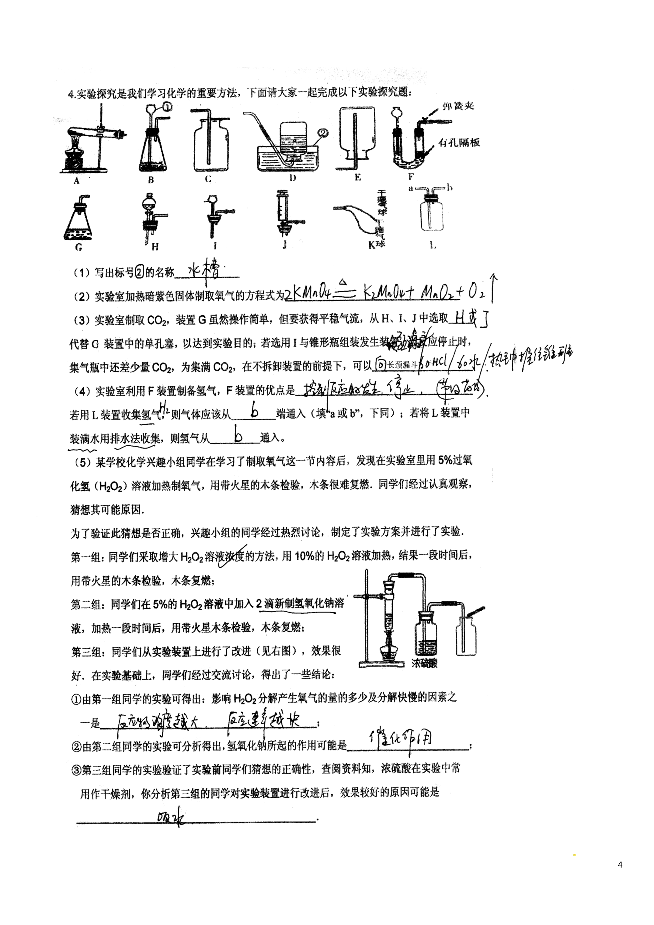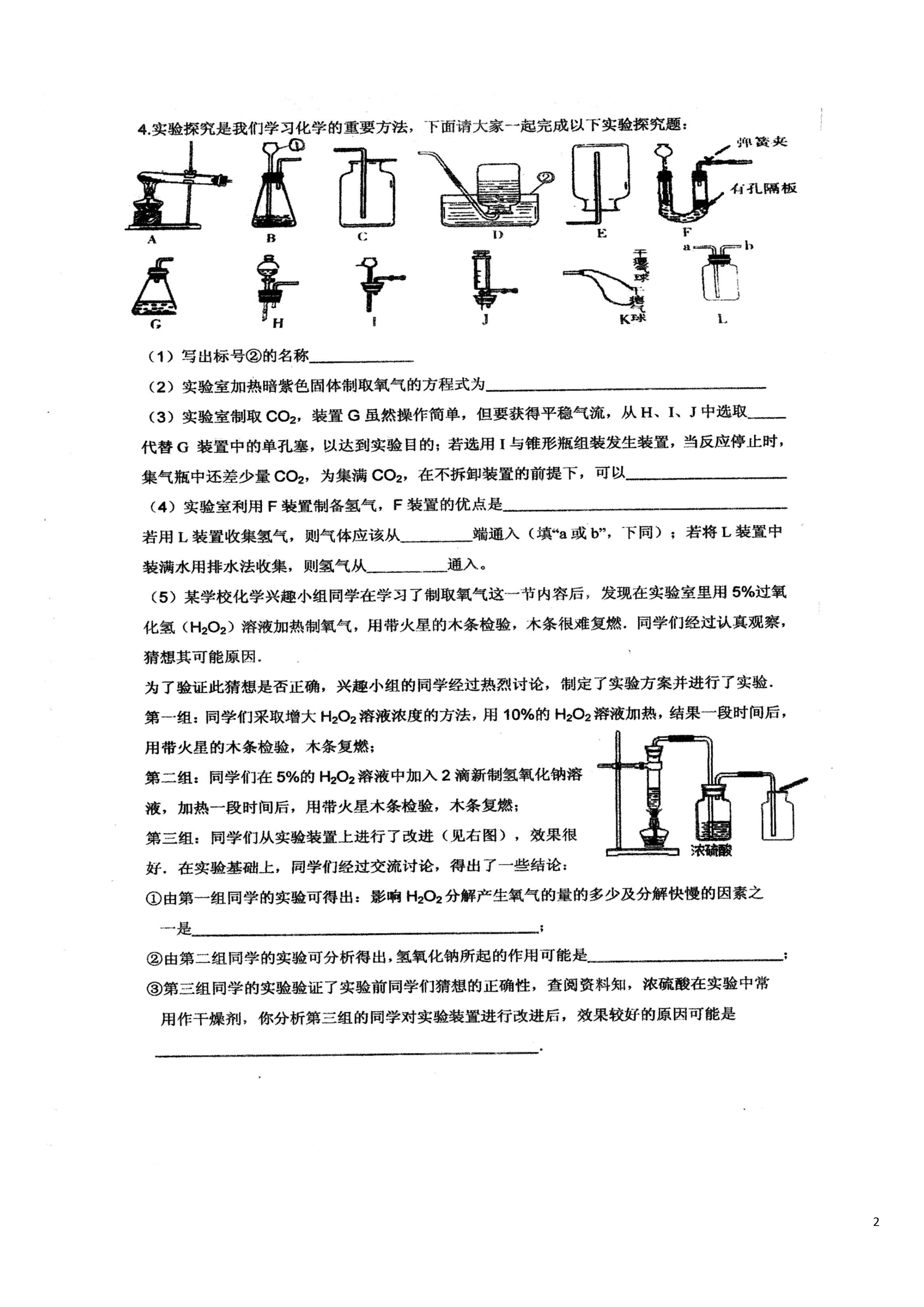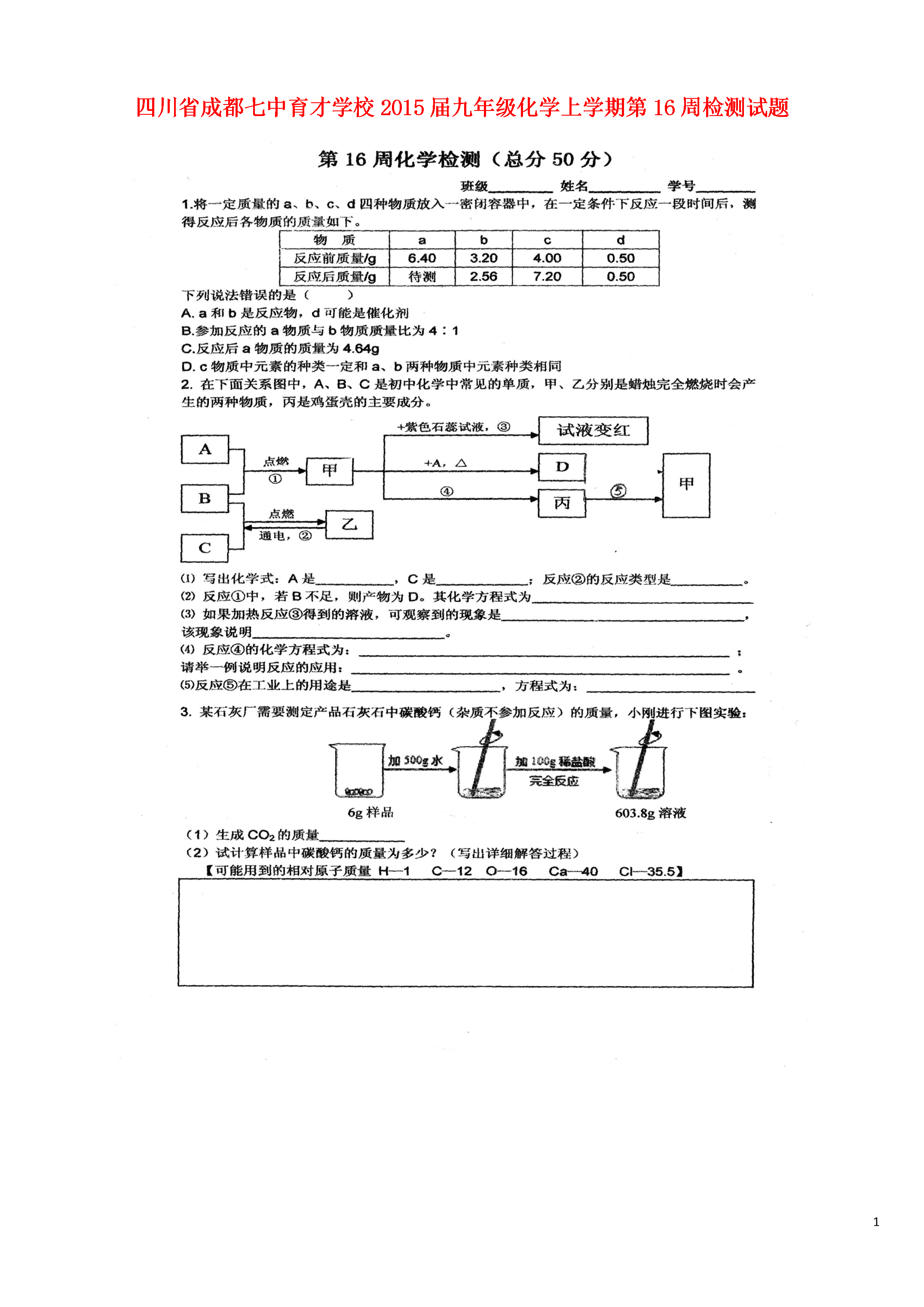 4四川省成都七中育才学校2015届九年级化学上学期第16周检测试题