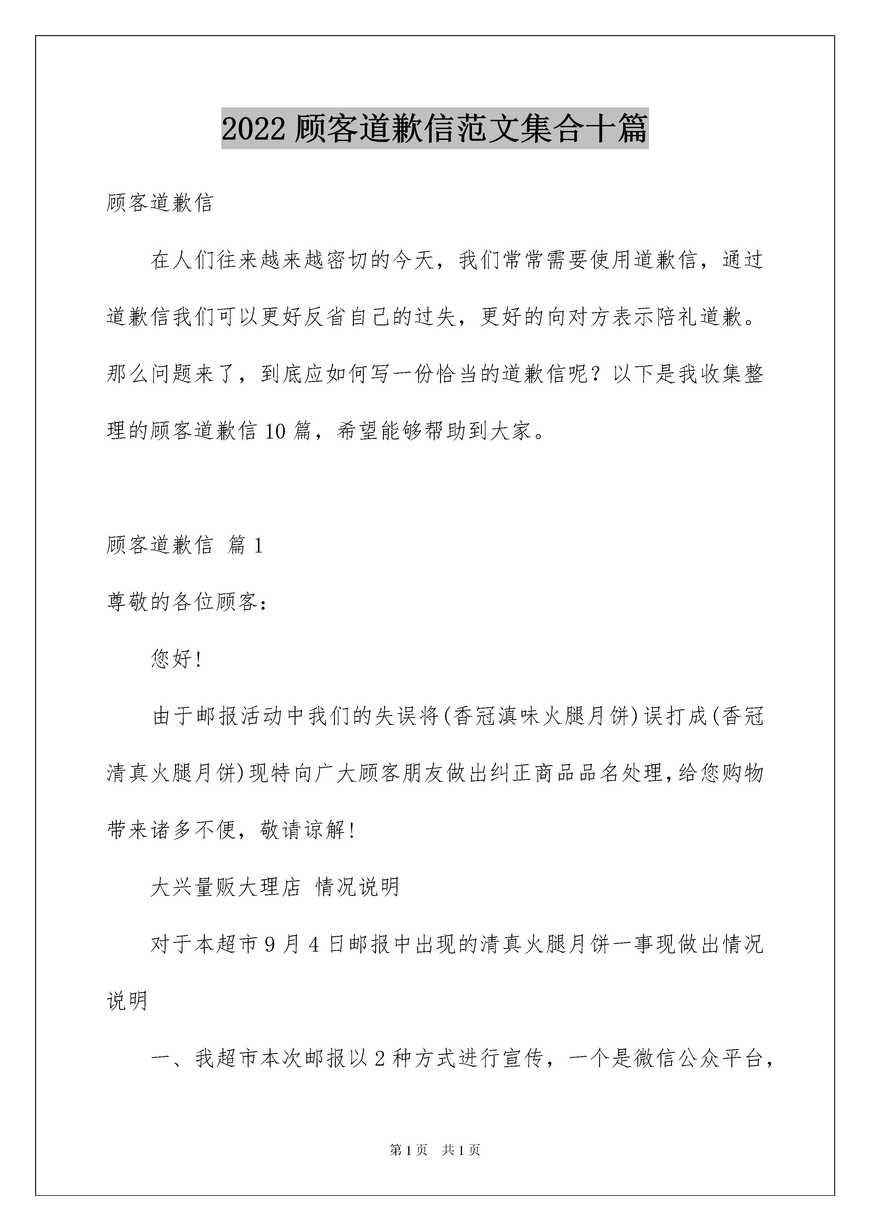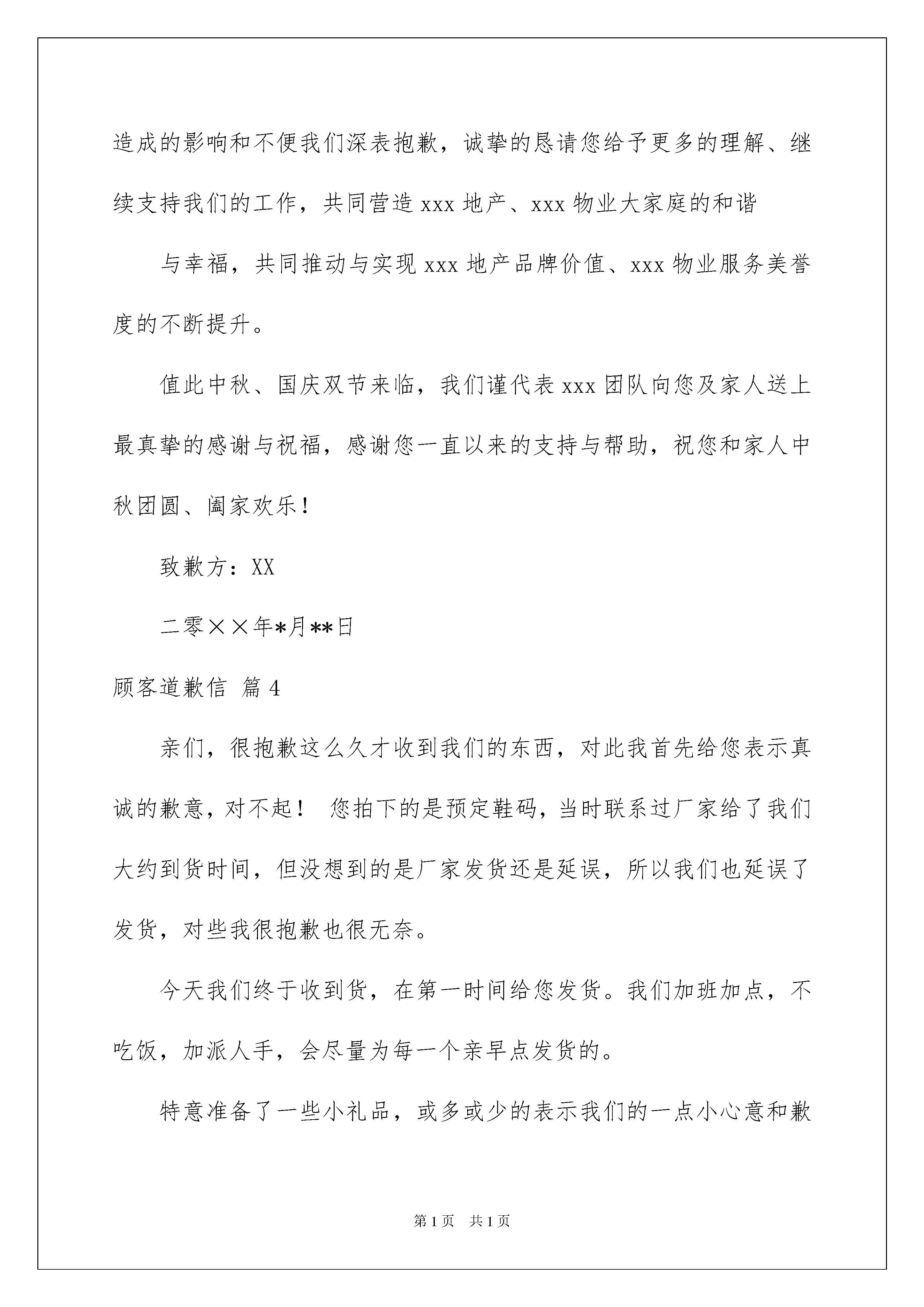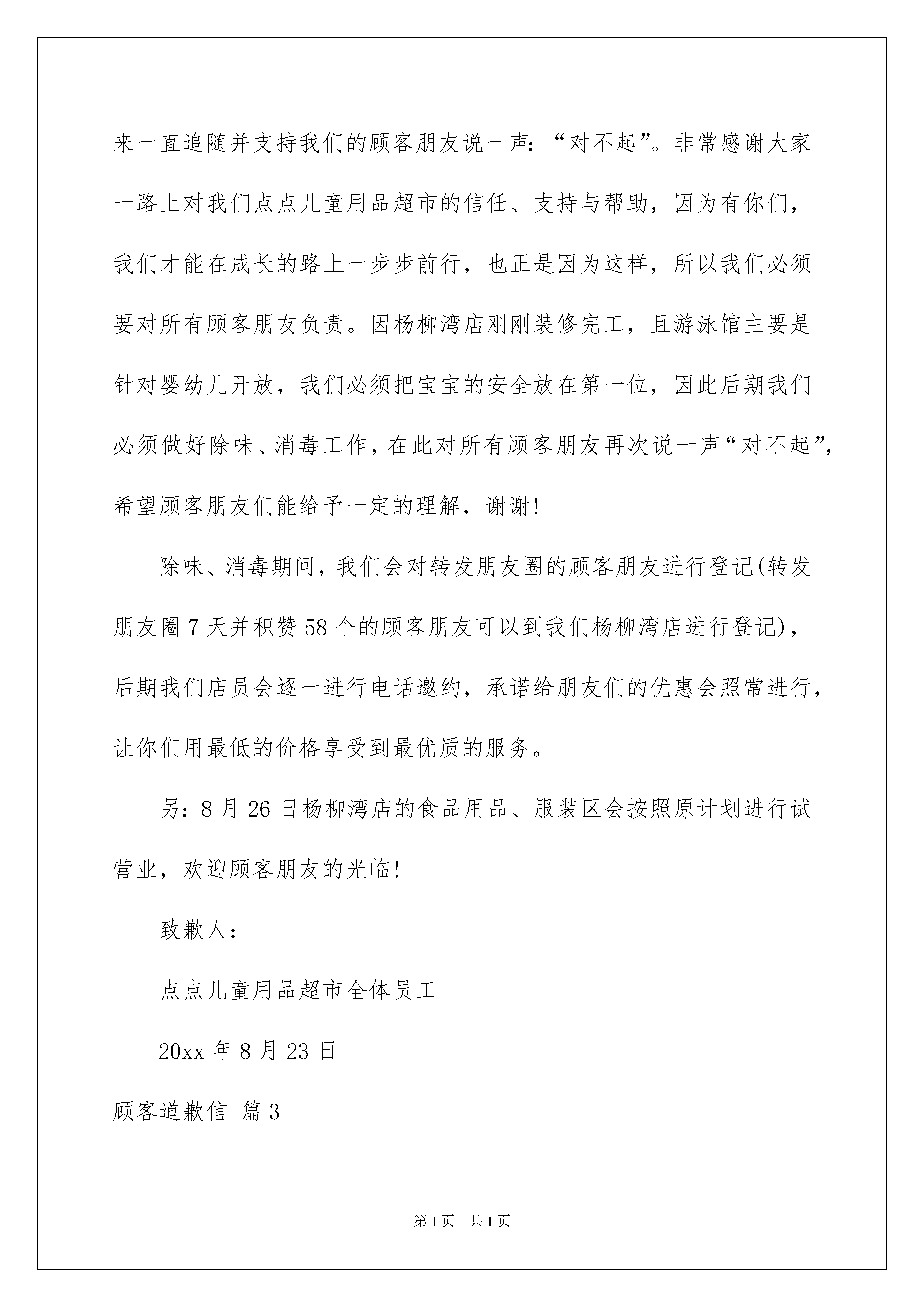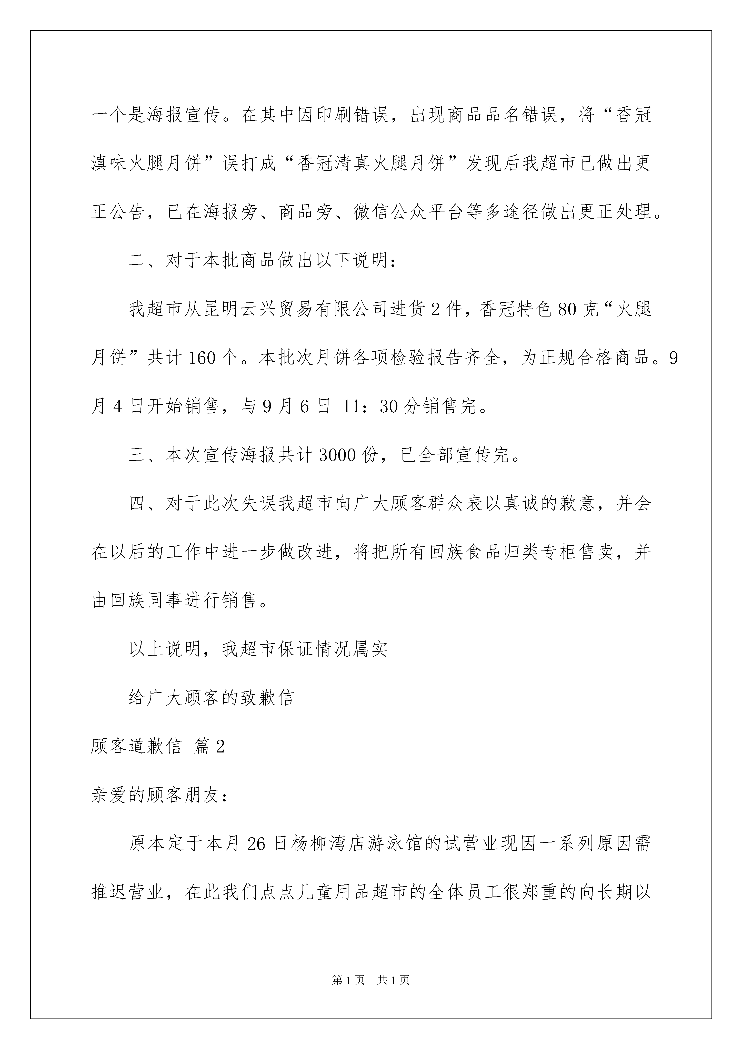 2022顾客道歉信范文集合十篇顾客道歉信在人们往来越来越密切的今天,我们常常需要使用道歉信,通过道歉信我们可以更好反省自己的过失,更好的向对方表示陪礼道歉。那么问题来了,到底应如何写一份恰当的道歉信呢?以下是我收集整理的顾客道歉信10篇,希望能够帮助到大家。顾客道歉信篇1尊敬的各位顾客:您好!由于邮报活动中我们的失误将(香冠滇味火腿月饼)误打成(香冠清真火腿月饼)现特向广大顾客朋友做出纠正商品品名处理,给您购物带来诸多不便,敬请谅解!大兴量贩大理店情况说明对于本超市9月4日邮报中出现的清真火腿月饼一事现做出情况说明一、我超市本次邮报以2种方式进行宣传,一个是微信公众平台,一个是海报宣传。在其中因印刷错误,出现商品品名错误,将“香冠滇味火腿月饼”误打成“香冠清真火腿月饼”发现后我超市已做出更正公告,已在海报旁、商品旁、微信公众平台等多途径做出更正处理。二、对于本批商品做出以下说明:我超市从昆明云兴贸易有限公司进货2件,香冠特色80克“火腿月饼”共计160个。本批次月饼各项检验报告齐全,为正规合格商品。9月4日开始销售,与9月6日11:30分销售完。三、本次宣传海报共计3000份,已全部宣传完。四、对于此次失误我超市向广大顾客群众表以真诚的歉意,并会在以后的工作中进一步做改进,将把所有回族食品归类专柜售卖,并由回族同事进行销售。以上说明,我超市保证情况属实给广大顾客的致歉信顾客道歉信篇2亲爱的顾客朋友:原本定于本月26日杨柳湾店游泳馆的试营业现因一系列原因需推迟营业,在此我们点点儿童用品超市的全体员工很郑重的向长期以来一直追随并支持我们的顾客朋友说一声:“对不起”。非常感谢大家一路上对我们点点儿童用品超市的信任、支持与帮助,因为有你们,我们才能在成长的路上一步步前行,也正是因为这样,所以我们必须要对所有顾客朋友负责。因杨柳湾店刚刚装修完工,且游泳馆主要是针对婴幼儿开放,我们必须把宝宝的安全放在第一位,因此后期我们必须做好除味、消毒工作,在此对所有顾客朋友再次说一声“对不起”,希望顾客朋友们能给予一定的理解,谢谢!除味、消毒期间,我们会对转发朋友圈的顾客朋友进行登记(转发朋友圈7天并积赞58个的顾客朋友可以到我们杨柳湾店进行登记),后期我们店员会逐一进行电话邀约,承诺给朋友们的优惠会照常进行,让你们用最低的价格享受到最优质的服务。另:8月26日杨柳湾店的食品用品、服装区会按照原计划进行试营业,欢迎顾客朋友的光临!致歉人:点点儿童用品超市全体员工20xx年8月23日顾客道歉信篇3尊敬的xxx:您好!近期由于楼内xx异响问题,给您及家人带来了诸多影响和不便,我们谨代表xxx团队向您及家人表示深深的歉意!xx项目从前期建设到顺利交付,我们诚挚感谢您在这个过程中所给予的密切关注与大力支持。作为xx市乃至全国高端品质楼盘的代表,xx项目凝聚了我们xxx团队的用心与智慧,更汇聚了很多像您一样崇尚高端品质生活的业主与客户,为此我们深感骄傲与责任。纵览国内外的建筑,回顾xx项目的建设与交付使用,再一次印证了"建筑永远是缺憾的艺术"这一规律,即使进行了大量的前期准备工作、过程中对于设计与施工进行严格把控,也无法绝对避免问题的发生。但我们保证,会通过事前的仔细排查与防范、及时响应与服务周到,将一切有可能发生的问题提前避免、已经发生的问题迅速解决。我们坚信,只有建造并不断完善高品质的地产项目、提供细致周到的物业服务,才能不辜负您和其他业主、客户的选择与信任,才能从根本上做强xx集团的品牌。目前您所发现的问题已得到彻底的处理和解决,对于给您及家人造成的影响和不便我们深表抱歉,诚挚的恳请您给予更多的理解、继续支持我们的工作,共同营造xxx地产、xxx物业大家庭的和谐与幸福,共同推动与实现xxx地产品牌价值、xxx物业服务美誉度的不断提升。值此中秋、国庆双节来临,我们谨代表xxx团队向您及家人送上最真挚的感谢与祝福,感谢您一直以来的支持与帮助,祝您和家人中秋团圆、阖家欢乐!致歉方:XX二零××年*月**日顾客道歉信篇4亲们,很抱歉这么久才收到我们的东西,对此我首先给您表示真诚的歉意,对不起!您拍下的是预定鞋码,当时联系过厂家给了我们大约到货时间,但没想到的是厂家发货还是延误,所以我们也延误了发货,对些我很抱歉也很无奈。今天我们终于收到货,在第一时间给您发货。我们加班加点,不吃饭,加派人手,会尽量为每一个亲早点发货的。特意准备了一些小礼品,或多或少的表示我们的一点小心意和歉意,希望您能笑纳。亲~收货后有还算满意,请记得给我们好评,动态评分也给五星评分,好吗?再次谢谢亲们的支持了,本店会一如既往的为每个亲真诚