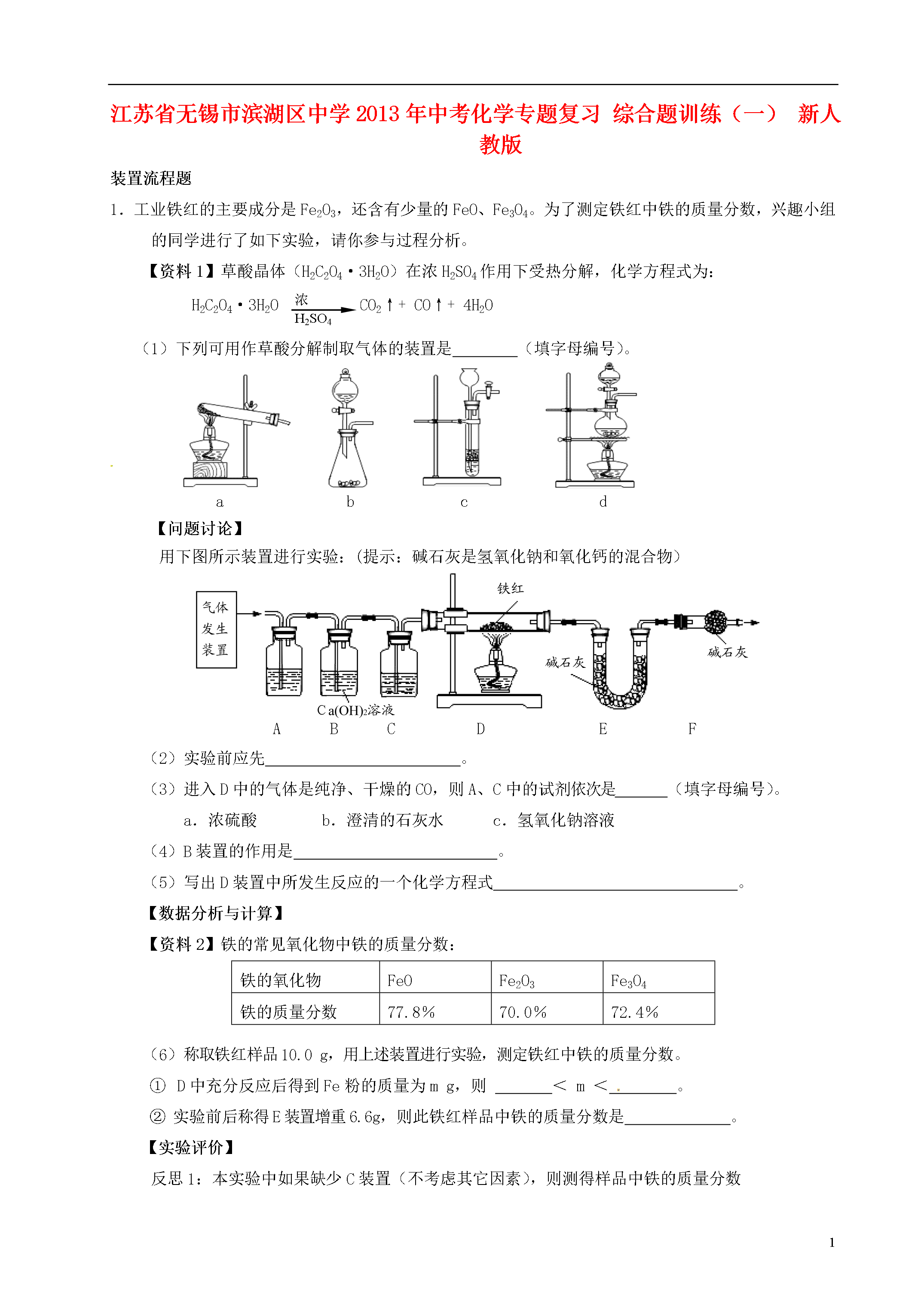 试题-江苏-2013_江苏省无锡市滨湖区中学2013年中考化学专题复习 综合题训练(一)(无答案) 新人教版.rar