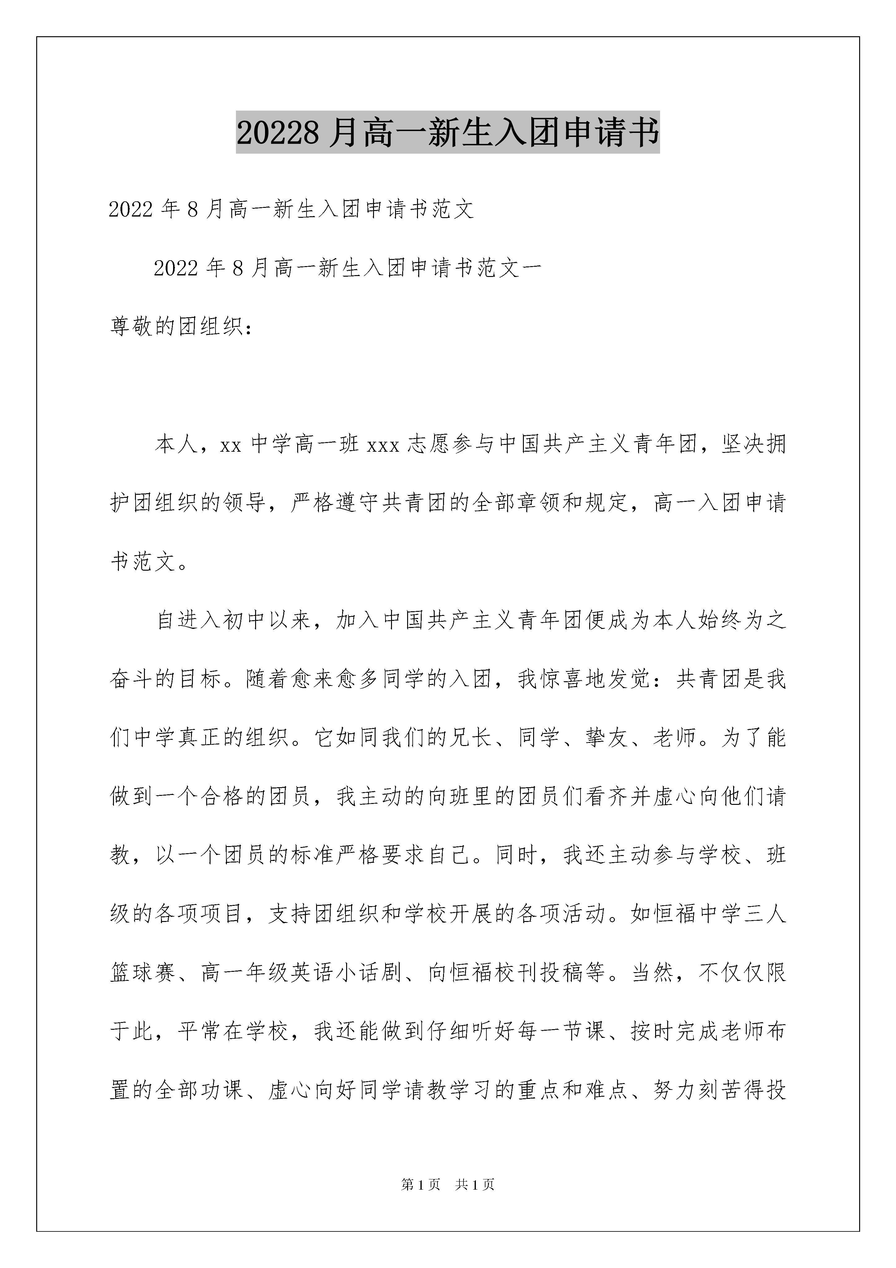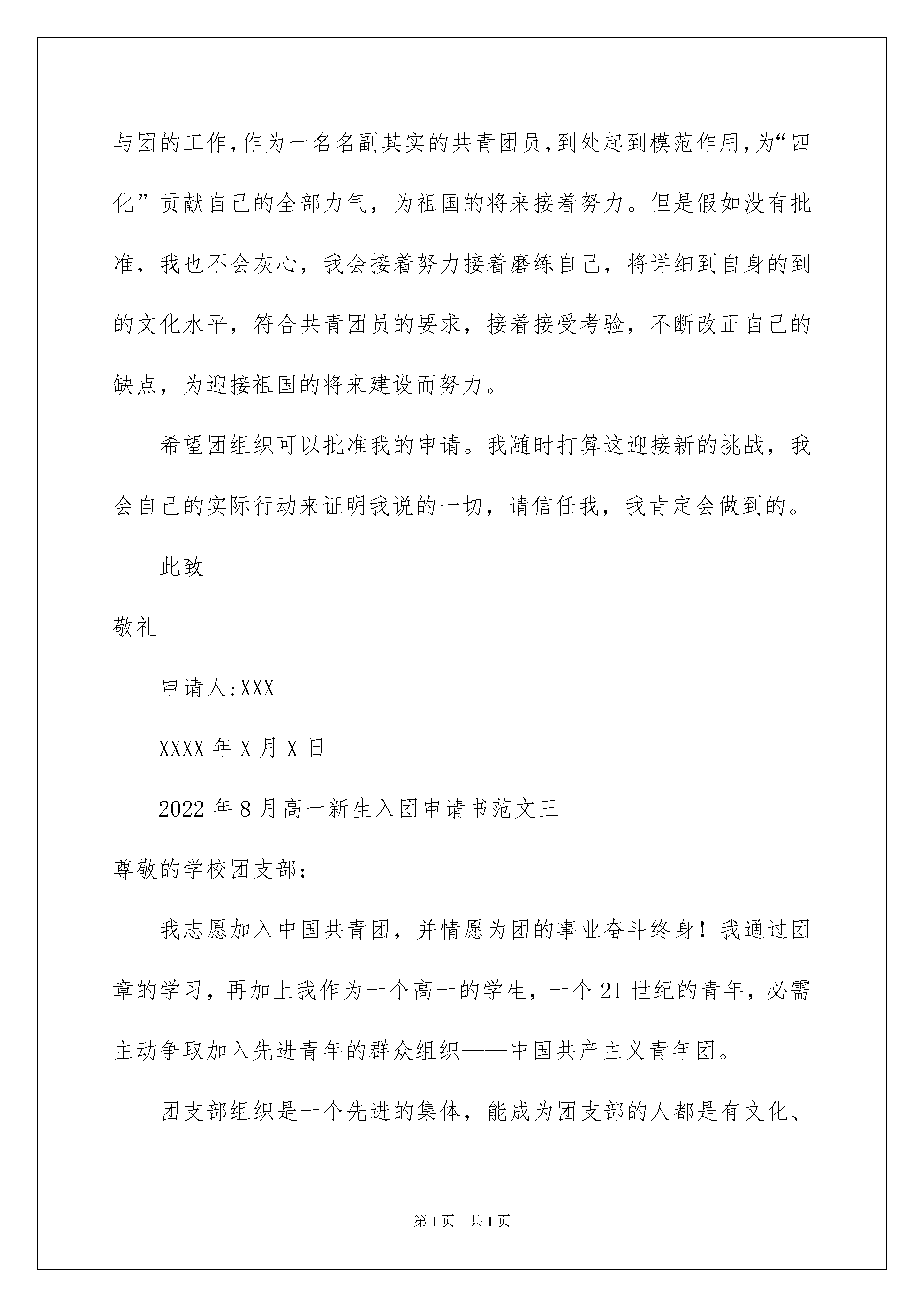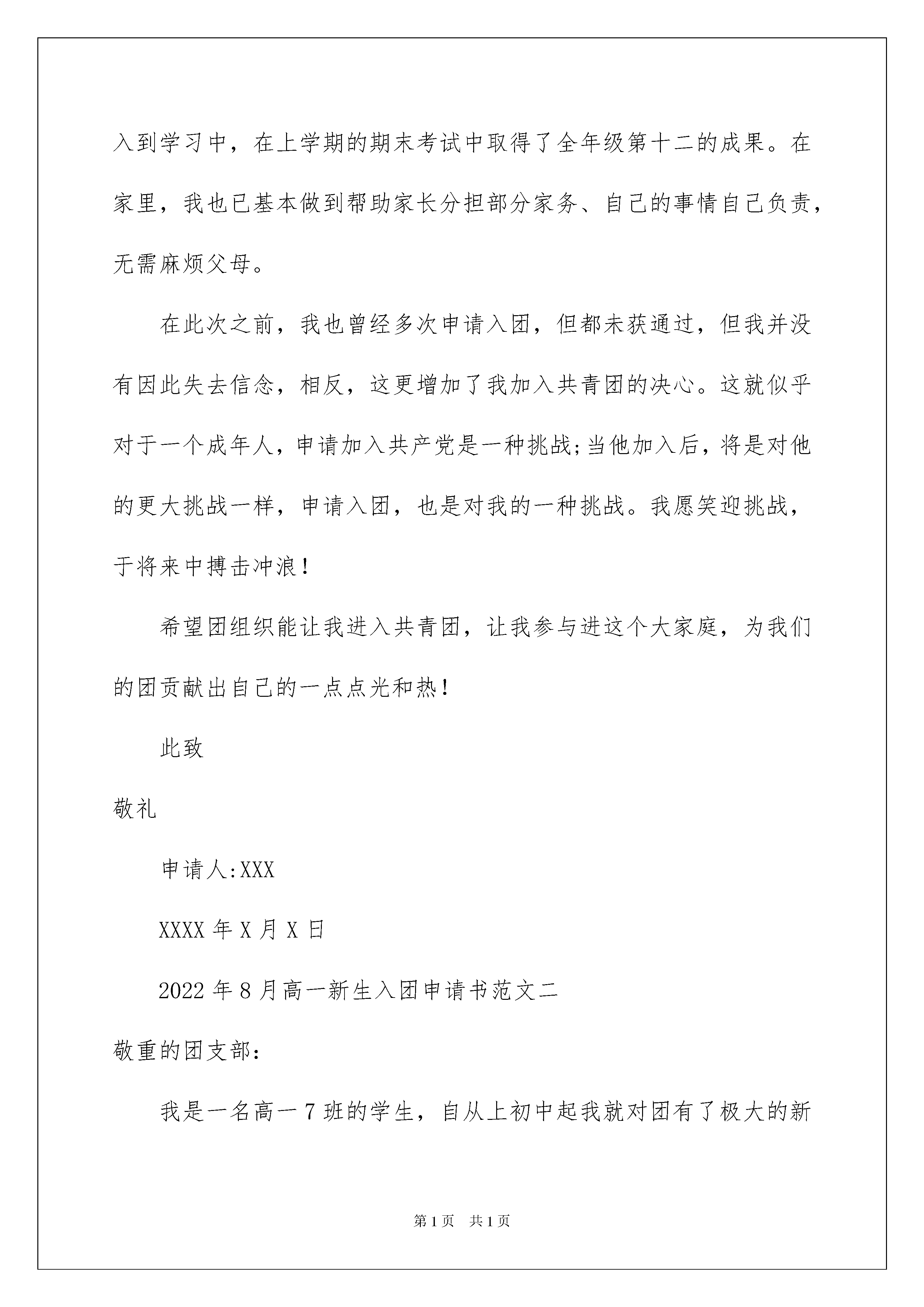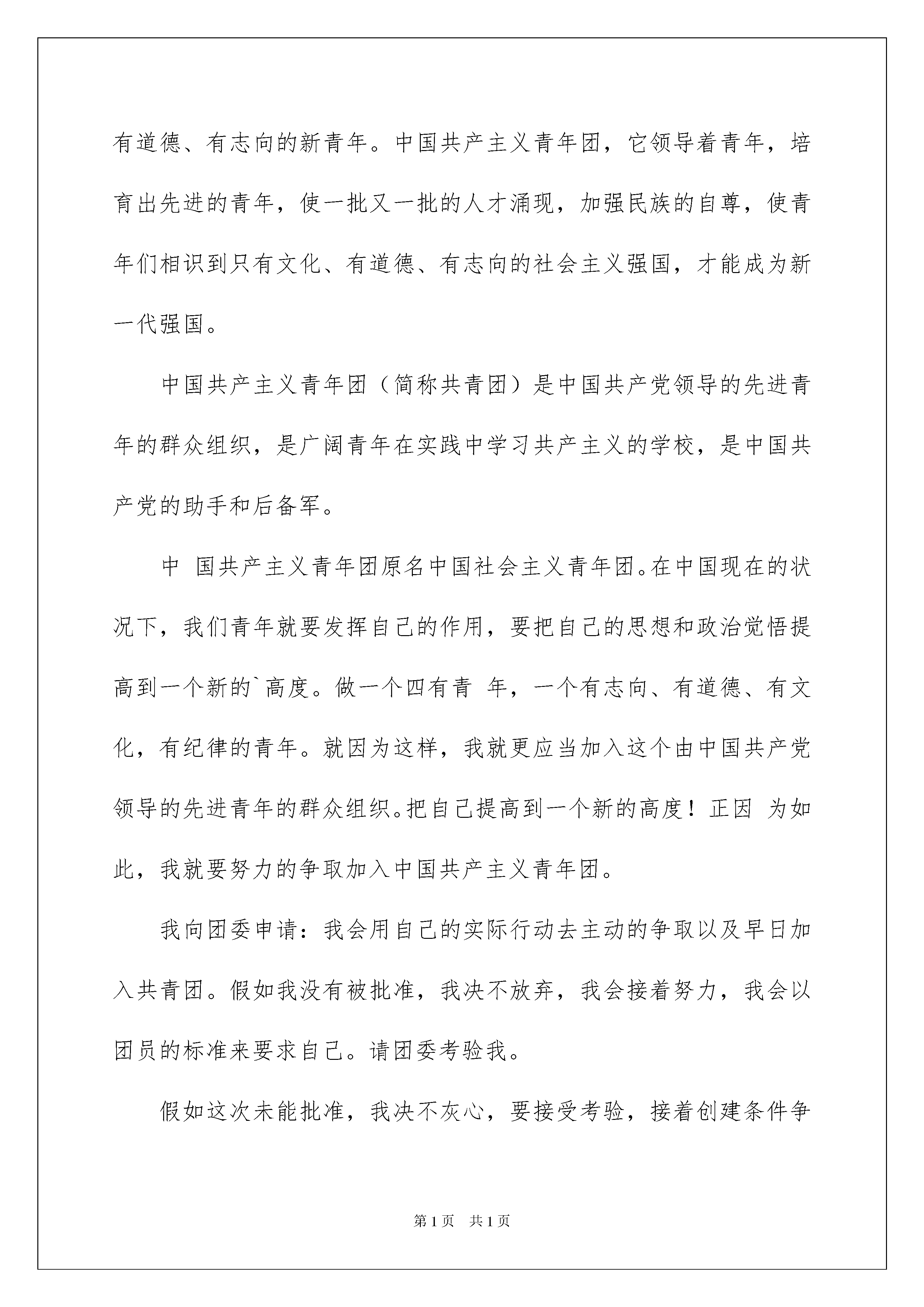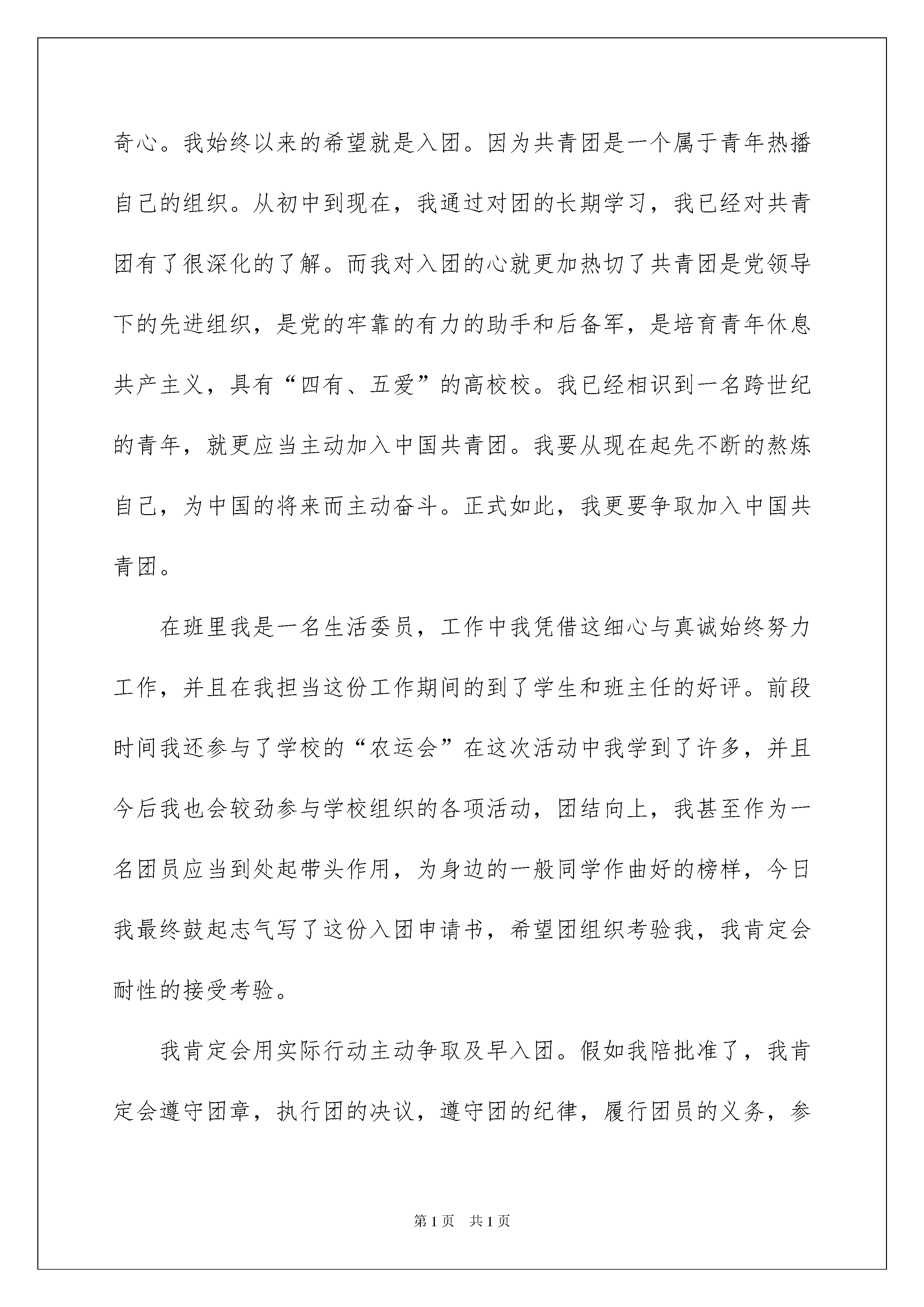 20228月高一新生入团申请书2022年8月高一新生入团申请书范文2022年8月高一新生入团申请书范文一尊敬的团组织:本人,xx中学高一班xxx志愿参与中国共产主义青年团,坚决拥护团组织的领导,严格遵守共青团的全部章领和规定,高一入团申请书范文。自进入初中以来,加入中国共产主义青年团便成为本人始终为之奋斗的目标。随着愈来愈多同学的入团,我惊喜地发觉:共青团是我们中学真正的组织。它如同我们的兄长、同学、挚友、老师。为了能做到一个合格的团员,我主动的向班里的团员们看齐并虚心向他们请教,以一个团员的标准严格要求自己。同时,我还主动参与学校、班级的各项项目,支持团组织和学校开展的各项活动。如恒福中学三人篮球赛、高一年级英语小话剧、向恒福校刊投稿等。当然,不仅仅限于此,平常在学校,我还能做到仔细听好每一节课、按时完成老师布置的全部功课、虚心向好同学请教学习的重点和难点、努力刻苦得投入到学习中,在上学期的期末考试中取得了全年级第十二的成果。在家里,我也已基本做到帮助家长分担部分家务、自己的事情自己负责,无需麻烦父母。在此次之前,我也曾经多次申请入团,但都未获通过,但我并没有因此失去信念,相反,这更增加了我加入共青团的决心。这就似乎对于一个成年人,申请加入共产党是一种挑战;当他加入后,将是对他的更大挑战一样,申请入团,也是对我的一种挑战。我愿笑迎挑战,于将来中搏击冲浪!希望团组织能让我进入共青团,让我参与进这个大家庭,为我们的团贡献出自己的一点点光和热!此致敬礼申请人:XXXXXXX年X月X日2022年8月高一新生入团申请书范文二敬重的团支部:我是一名高一7班的学生,自从上初中起我就对团有了极大的新奇心。我始终以来的希望就是入团。因为共青团是一个属于青年热播自己的组织。从初中到现在,我通过对团的长期学习,我已经对共青团有了很深化的了解。而我对入团的心就更加热切了共青团是党领导下的先进组织,是党的牢靠的有力的助手和后备军,是培育青年休息共产主义,具有“四有、五爱”的高校校。我已经相识到一名跨世纪的青年,就更应当主动加入中国共青团。我要从现在起先不断的熬炼自己,为中国的将来而主动奋斗。正式如此,我更要争取加入中国共青团。在班里我是一名生活委员,工作中我凭借这细心与真诚始终努力工作,并且在我担当这份工作期间的到了学生和班主任的好评。前段时间我还参与了学校的“农运会”在这次活动中我学到了许多,并且今后我也会较劲参与学校组织的各项活动,团结向上,我甚至作为一名团员应当到处起带头作用,为身边的一般同学作曲好的榜样,今日我最终鼓起志气写了这份入团申请书,希望团组织考验我,我肯定会耐性的接受考验。我肯定会用实际行动主动争取及早入团。假如我陪批准了,我肯定会遵守团章,执行团的决议,遵守团的纪律,履行团员的义务,参与团的工作,作为一名名副其实的共青团员,到处起到模范作用,为“四化”贡献自己的全部力气,为祖国的将来接着努力。但是假如没有批准,我也不会灰心,我会接着努力接着磨练自己,将详细到自身的到的文化水平,符合共青团员的要求,接着接受考验,不断改正自己的缺点,为迎接祖国的将来建设而努力。希望团组织可以批准我的申请。我随时打算这迎接新的挑战,我会自己的实际行动来证明我说的一切,请信任我,我肯定会做到的。此致敬礼申请人:XXXXXXX年X月X日2022年8月高一新生入团申请书范文三尊敬的学校团支部:我志愿加入中国共青团,并情愿为团的事业奋斗终身!我通过团章的学习,再加上我作为一个高一的学生,一个21世纪的青年,必需主动争取加入先进青年的群众组织——中国共产主义青年团。团支部组织是一个先进的集体,能成为团支部的人都是有文化、有道德、有志向的新青年。中国共产主义青年团,它领导着青年,培育出先进的青年,使一批又一批的人才涌现,加强民族的自尊,使青年们相识到只有文化、有道德、有志向的社会主义强国,才能成为新一代强国。中国共产主义青年团(简称共青团)是中国共产党领导的先进青年的群众组织,是广阔青年在实践中学习共产主义的学校,是中国共产党的助手和后备军。中国共产主义青年团原名中国社会主义青年团。在中国现在的状况下,我们青年就要发挥自己的作用,要把自己的思想和政治觉悟提高到一个新的`高度。做一个四有青年,一个有志向、有道德、有文化,有纪律的青年。就因为这样,我就更应当加入这个由中国共产党领导的先进青年的群众组织。把自己提高到一个新的高度!正因为如此,我就要努力的争取加入中国共产主义青年团。我向团委申请:我会用自己的实际行动去主动的争取以及早日加入共青团。假如我没有被批准,我决不放弃,我会接着努力,我会以团员的标准来要求自己