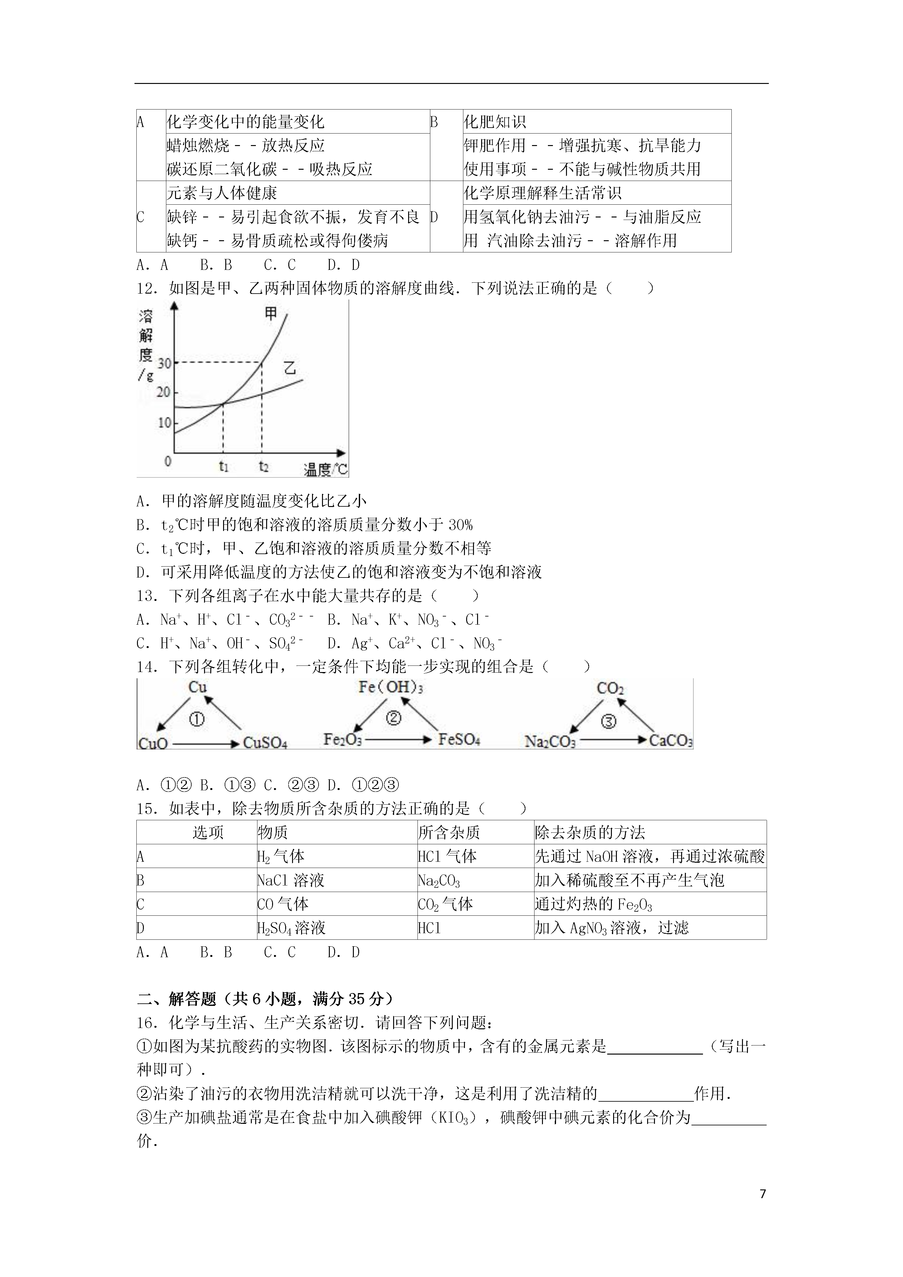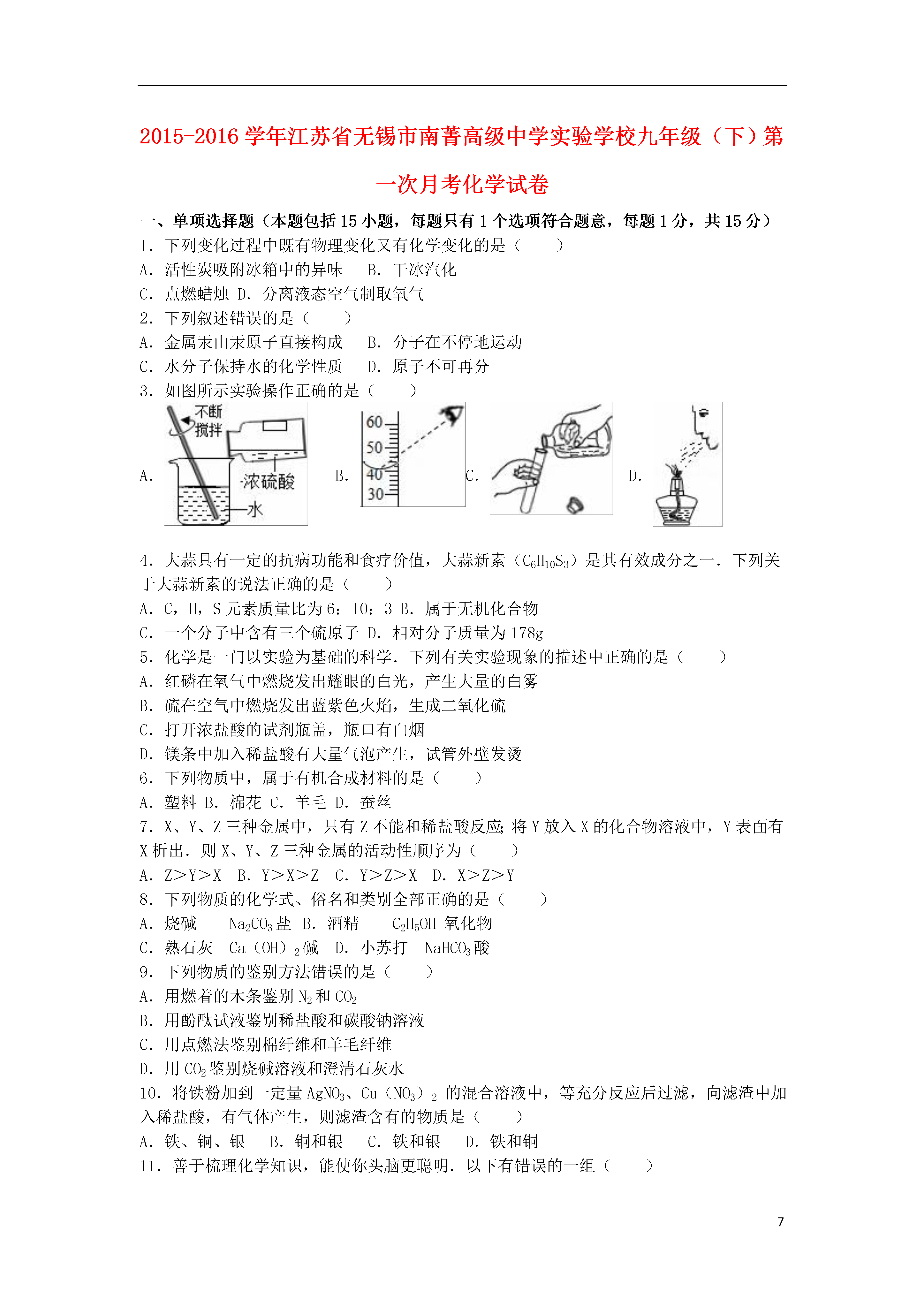 试题-江苏-2016_江苏省无锡市南菁高级中学实验学校2016届九年级化学下学期第一次月考试题(含解析) 新人教版.doc