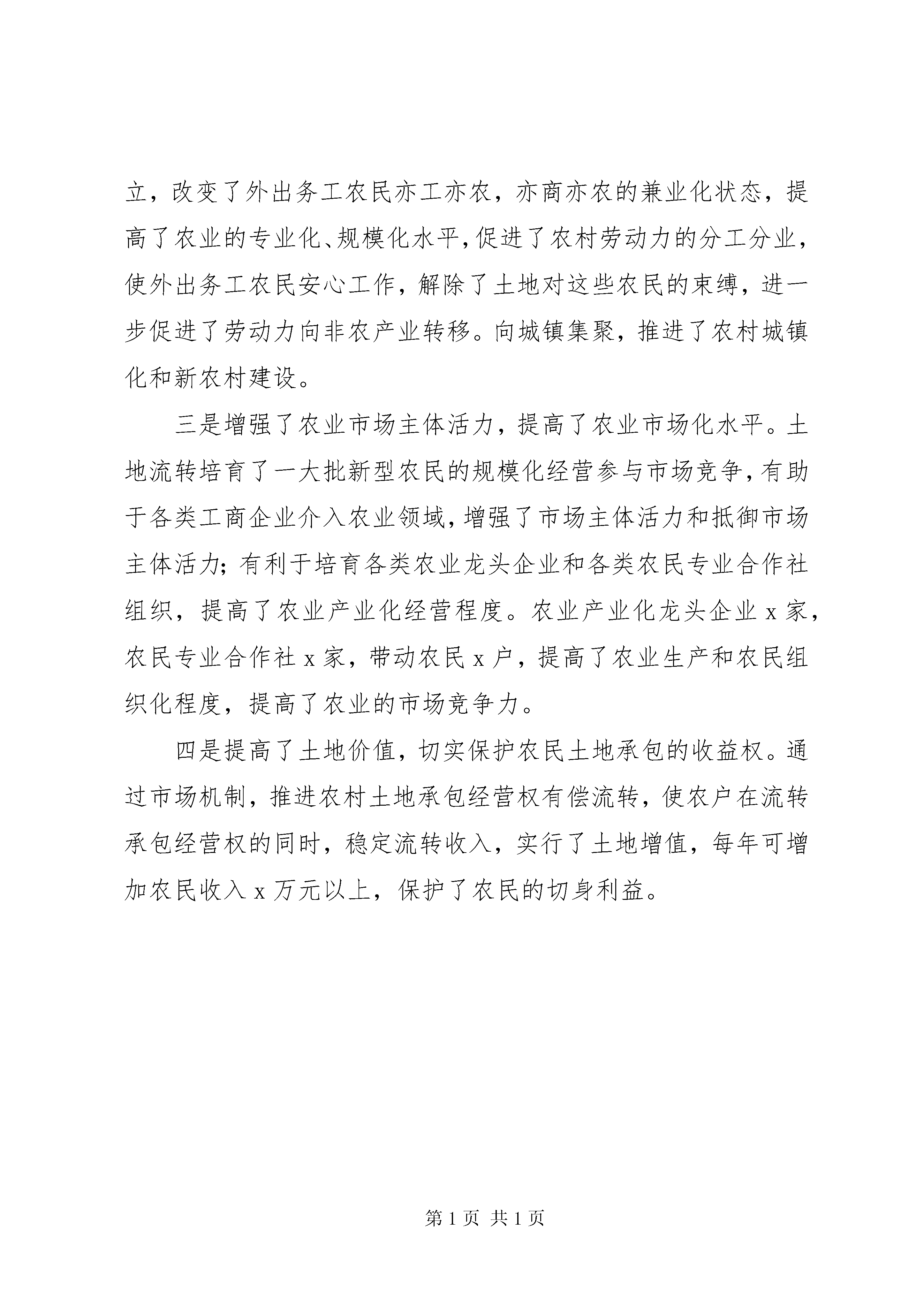 土地存贷合作社工作报告一、基本情况xx镇xx土地存贷合作社自xx年xx月xx日成立以来,已开展存地业务x宗,存地面积x亩,其中农户承包地x宗xx亩,村集体发包经营地x宗x亩。已开展贷地业务x宗,x亩,其中龙头企业贷地x宗xx亩(青龙湖公司以每亩x元贷地x亩;XX省莲莲康生态农业发展公司以每亩x元贷地x亩);冬青蔬菜合作社以每亩x元左右贷地x宗x亩;x户种植能手贷地x宗x亩,其中,种植能手许行兵贷地x亩,陈士军贷地x亩;一般农户x户以每亩x-x元贷地x宗x亩。通过土地存贷合作社的载体,目前该村已形成了蔬菜、养殖、莲子等三大基地。二、主要成效一是促进了农业结构调整和规模化经营,提高了农业生产的效益。通过流转农村土地相对向种田大户集中,全村经营大户x户,x亩,土地规模经营不断扩大,优化了土地配置,完善了农业生产要素市场,较好地解决了粗放经营问题,促进了农业结构战略性调整,提高了农业专业化程度和产业化营水平,提高了土地规模化和集体约化经营水平,提高了农业生产率。二是促进了农村劳动的转移,推进了农村城镇化和新农村建设。实行土地流转以后,全村外出务工农民逐年增加,xx年达到x人,劳务收入x多万元。农村土地承包经营权流转机制的建立,改变了外出务工农民亦工亦农,亦商亦农的兼业化状态,提高了农业的专业化、规模化水平,促进了农村劳动力的分工分业,使外出务工农民安心工作,解除了土地对这些农民的束缚,进一步促进了劳动力向非农产业转移。向城镇集聚,推进了农村城镇化和新农村建设。三是增强了农业市场主体活力,提高了农业市场化水平。土地流转培育了一大批新型农民的规模化经营参与市场竞争,有助于各类工商企业介入农业领域,增强了市场主体活力和抵御市场主体活力;有利于培育各类农业龙头企业和各类农民专业合作社组织,提高了农业产业化经营程度。农业产业化龙头企业x家,农民专业合作社x家,带动农民x户,提高了农业生产和农民组织化程度,提高了农业的市场竞争力。四是提高了土地价值,切实保护农民土地承包的收益权。通过市场机制,推进农村土地承包经营权有偿流转,使农户在流转承包经营权的同时,稳定流转收入,实行了土地增值,每年可增加农民收入x万元以上,保护了农民的切身利益。