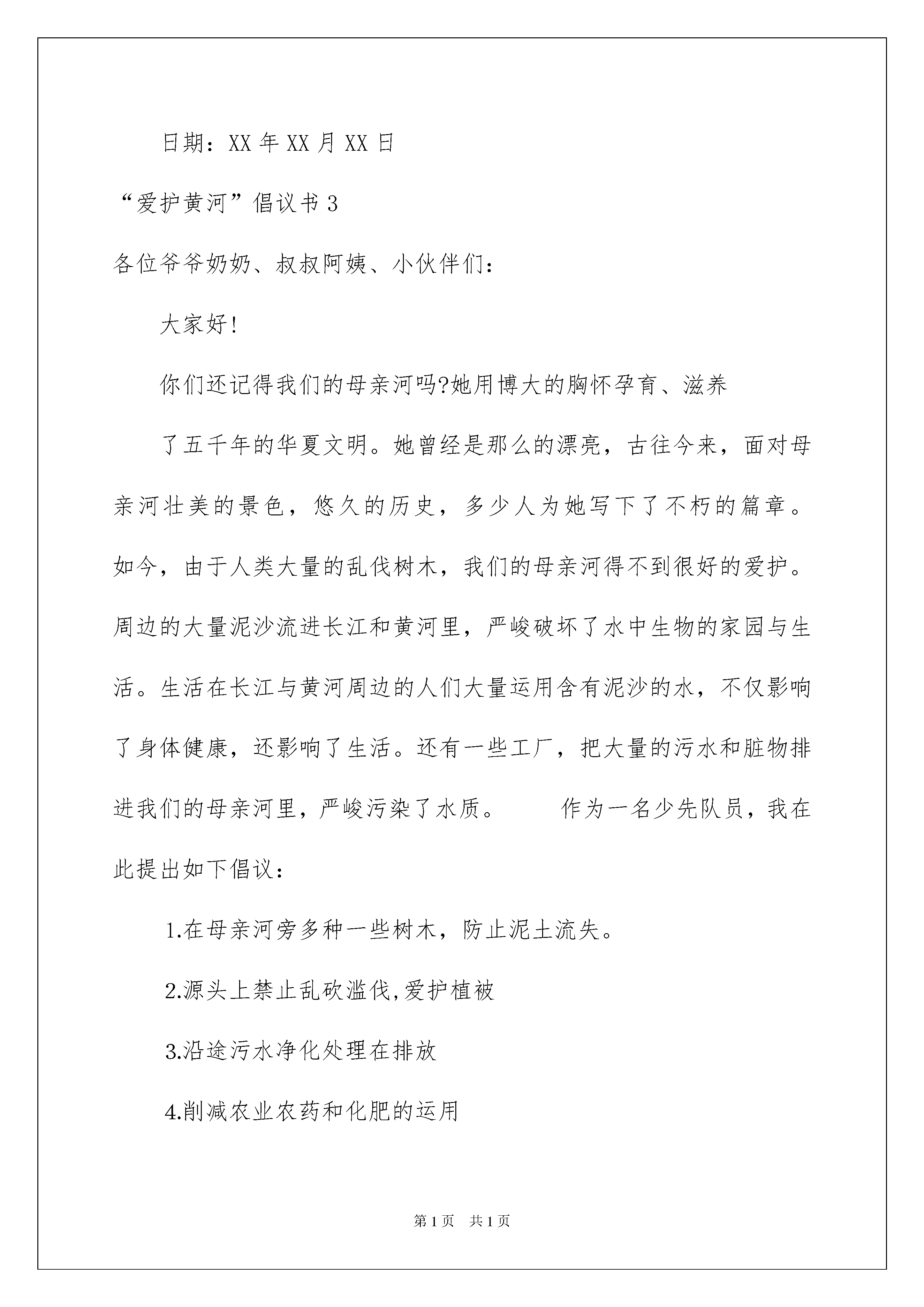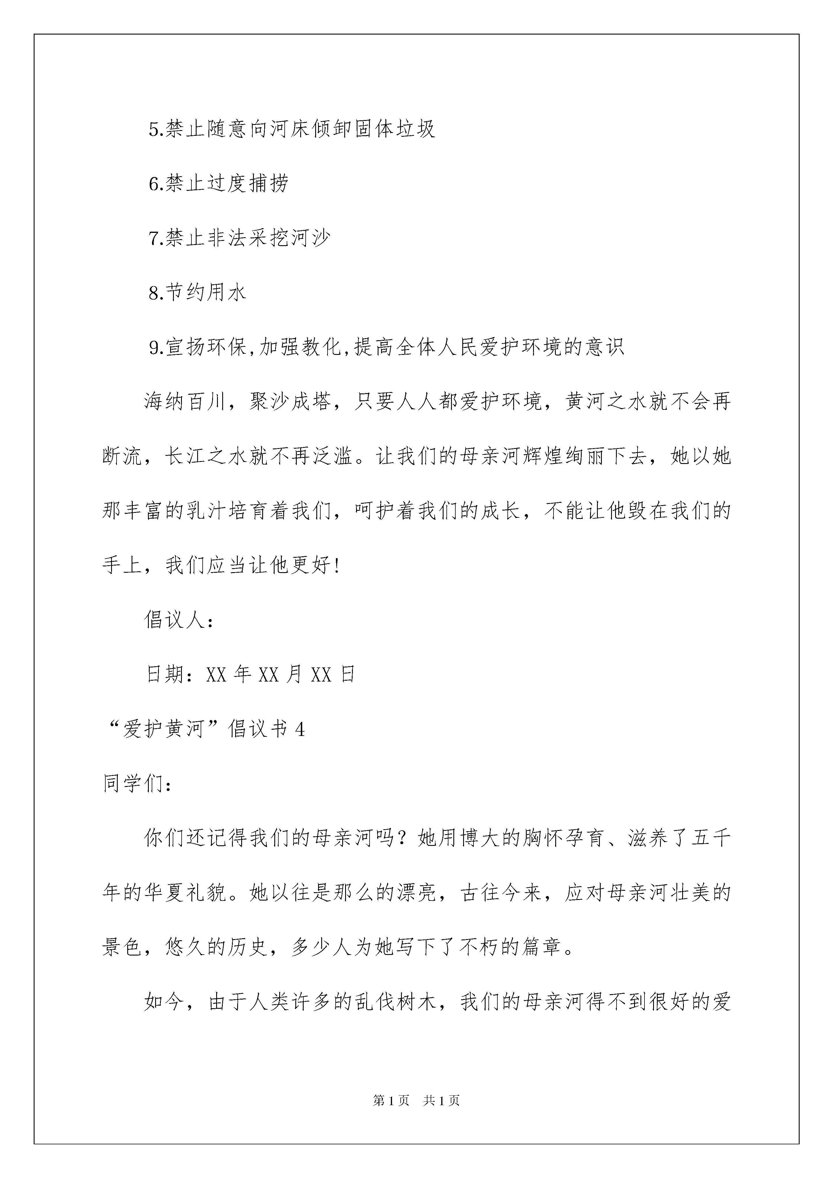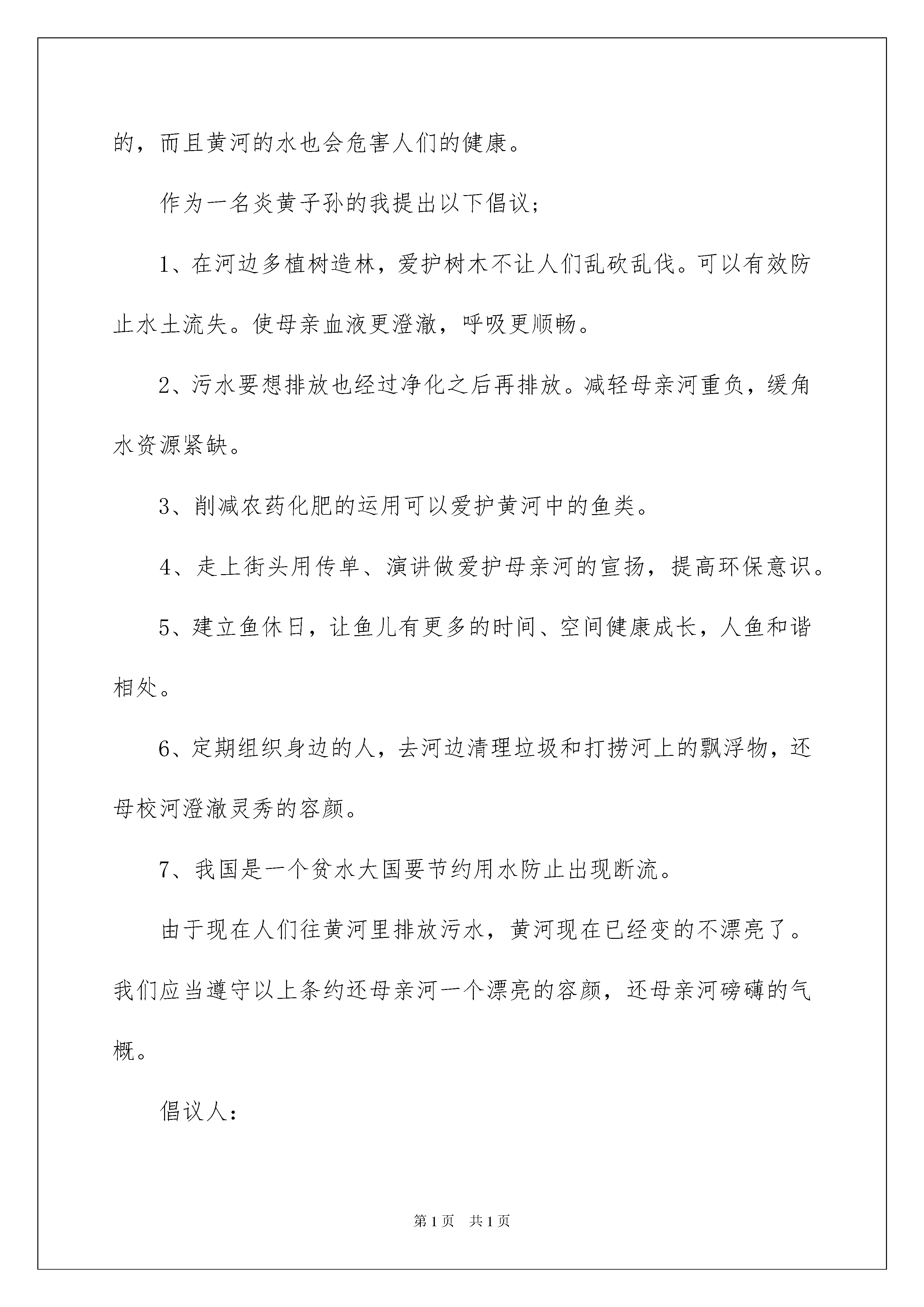 2022“保护黄河”倡议书“爱护黄河”倡议书在当今社会生活中,我们可以运用倡议书的机会越来越多,通过倡议书倡议者可以表达自己的决心和希望或者写出某种建议。写起倡议书来就毫无头绪?下面是我为大家收集的“爱护黄河”倡议书,欢迎大家借鉴与参考,希望对大家有所帮助。“爱护黄河”倡议书1敬爱的同胞们:我们的母亲河:黄河,她从古代始终流淌至今,哺育了我们的祖先,使他们得以繁衍,也孕育了我们宏大的华夏文明。她从高山奔向大海,为我们人类做出了巨大贡献!时代进步了,化工厂越来越多了,为了一点肮脏的利益,人们不惜“杀害”自己的母亲。为了我们所拥有的宏大文明和母亲河,我提出倡议:第一,节约每一滴水,绝不奢侈!其次,工厂的废水禁止向黄河排放。第三,在黄河两边栽下树苗,不破坏亦有树木,防止水土流失,爱护植被。第四,禁止过度捕捞,爱护黄河的生态平衡。不能容纳对我们做出极大贡献的母亲河,最终也不能容纳我们自己!为了不使后人只能在书本中了解到黄河,也为了我们自己,让我们一起努力吧!加入到爱护黄河的行动中来吧!!“爱护黄河”倡议书2华夏炎黄子孙们:我们的母亲河——黄河,原来是澄澈灵秀,水草丰美,森林茂密。黄河用它那磅礴的气概吸引了许很多多中外游客前来参观黄河。黄河不仅是漂亮的对两人民的贡献也不小,黄河流程5500千米,上千条支流与溪川如同多数毛细血管,不断的为祖国大地输送着活力与朝气,由于黄河水流落差大可能性发电所以黄河给两岸的人民的生活供应了便利。现在黄河已经不像过去一样了。由于人们无节制的开垦放牧使黄河变成了一要真正的“黄河”。工业损害双面夹击,母亲河的乳汁不再干净。母亲河现在体无完肤,危在旦夕,这样下去黄河肯定会干枯的,而且黄河的水也会危害人们的健康。作为一名炎黄子孙的我提出以下倡议;1、在河边多植树造林,爱护树木不让人们乱砍乱伐。可以有效防止水土流失。使母亲血液更澄澈,呼吸更顺畅。2、污水要想排放也经过净化之后再排放。减轻母亲河重负,缓角水资源紧缺。3、削减农药化肥的运用可以爱护黄河中的鱼类。4、走上街头用传单、演讲做爱护母亲河的宣扬,提高环保意识。5、建立鱼休日,让鱼儿有更多的时间、空间健康成长,人鱼和谐相处。6、定期组织身边的人,去河边清理垃圾和打捞河上的飘浮物,还母校河澄澈灵秀的容颜。7、我国是一个贫水大国要节约用水防止出现断流。由于现在人们往黄河里排放污水,黄河现在已经变的不漂亮了。我们应当遵守以上条约还母亲河一个漂亮的容颜,还母亲河磅礴的气概。倡议人:日期:XX年XX月XX日“爱护黄河”倡议书3各位爷爷奶奶、叔叔阿姨、小伙伴们:大家好!你们还记得我们的母亲河吗?她用博大的胸怀孕育、滋养了五千年的华夏文明。她曾经是那么的漂亮,古往今来,面对母亲河壮美的景色,悠久的历史,多少人为她写下了不朽的篇章。如今,由于人类大量的乱伐树木,我们的母亲河得不到很好的爱护。周边的大量泥沙流进长江和黄河里,严峻破坏了水中生物的家园与生活。生活在长江与黄河周边的人们大量运用含有泥沙的水,不仅影响了身体健康,还影响了生活。还有一些工厂,把大量的污水和脏物排进我们的母亲河里,严峻污染了水质。作为一名少先队员,我在此提出如下倡议:⒈在母亲河旁多种一些树木,防止泥土流失。⒉源头上禁止乱砍滥伐,爱护植被⒊沿途污水净化处理在排放⒋削减农业农药和化肥的运用⒌禁止随意向河床倾卸固体垃圾⒍禁止过度捕捞⒎禁止非法采挖河沙⒏节约用水⒐宣扬环保,加强教化,提高全体人民爱护环境的意识海纳百川,聚沙成塔,只要人人都爱护环境,黄河之水就不会再断流,长江之水就不再泛滥。让我们的母亲河辉煌绚丽下去,她以她那丰富的乳汁培育着我们,呵护着我们的成长,不能让他毁在我们的手上,我们应当让他更好!倡议人:日期:XX年XX月XX日“爱护黄河”倡议书4同学们:你们还记得我们的母亲河吗?她用博大的胸怀孕育、滋养了五千年的华夏礼貌。她以往是那么的漂亮,古往今来,应对母亲河壮美的景色,悠久的历史,多少人为她写下了不朽的篇章。如今,由于人类许多的乱伐树木,我们的母亲河得不到很好的爱护。周边的许多泥沙流进长江和黄河里,严峻破坏了水中生物的家园与生活。作为一名少先队员,我在此提出如下倡议:1、在母亲河旁多种一些树木,防止泥土流失。2、源头上禁止乱砍滥伐,爱护植被。3、沿途污水净化处理在排放。4、节俭用水。5、禁止随意向河床倾卸固体垃圾。海纳百川,聚沙成塔,只要人人都爱护环境,黄河之水就不会再断流,长江之水就不再泛滥。呵护着我们的`成长,不能让他毁在我们的手上,我们应当让他更好!“爱护黄河”倡议书5华夏子孙们:你们还记得黄河吗?曾经是那么年轻,激情散发,用响亮的歌声唱响世