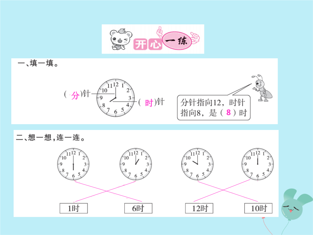 课件-全国-2019_2018-2019学年一年级数学上册 7 认识钟表 第1课时 认识钟表(1)作业课件 新人教版.ppt