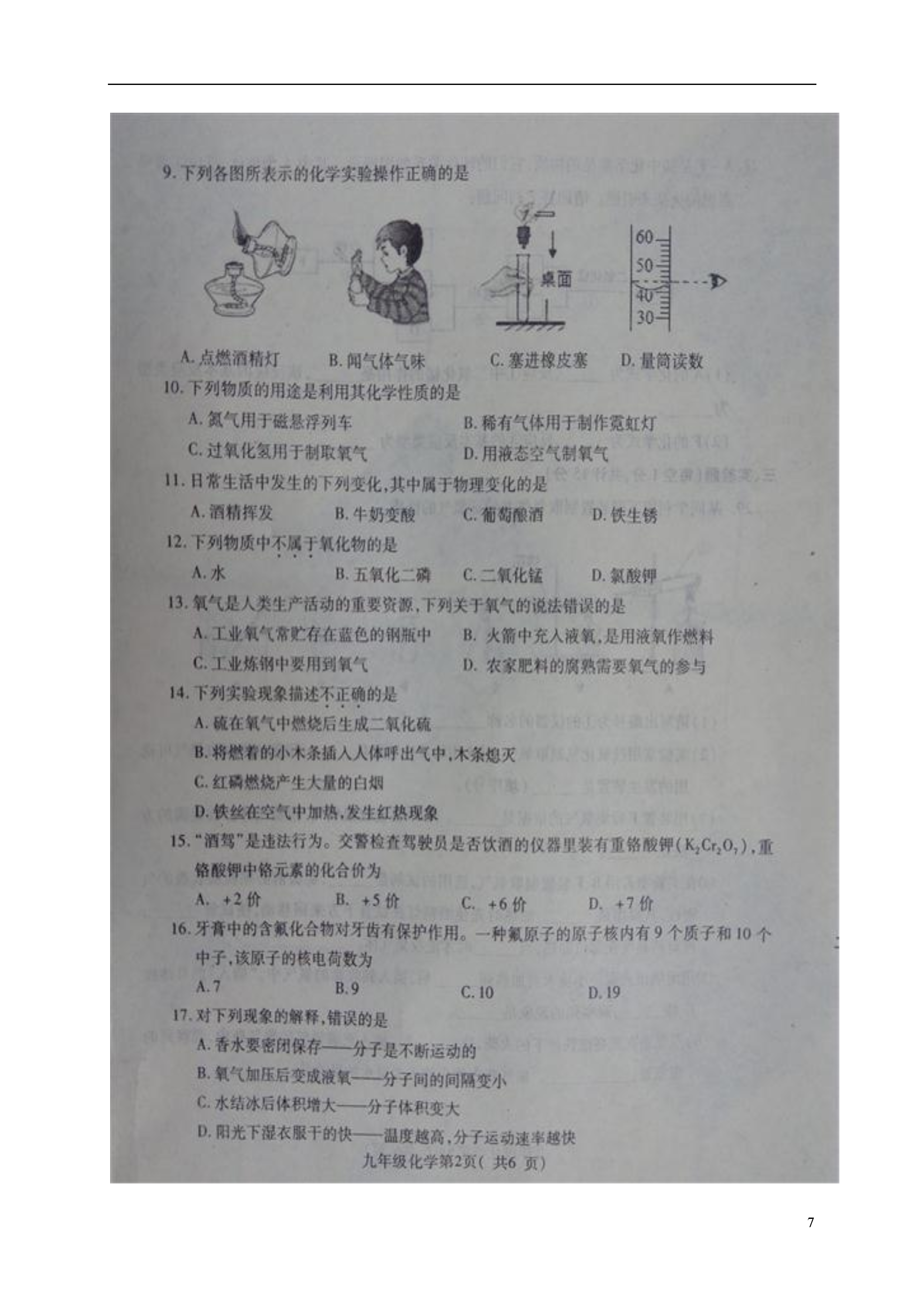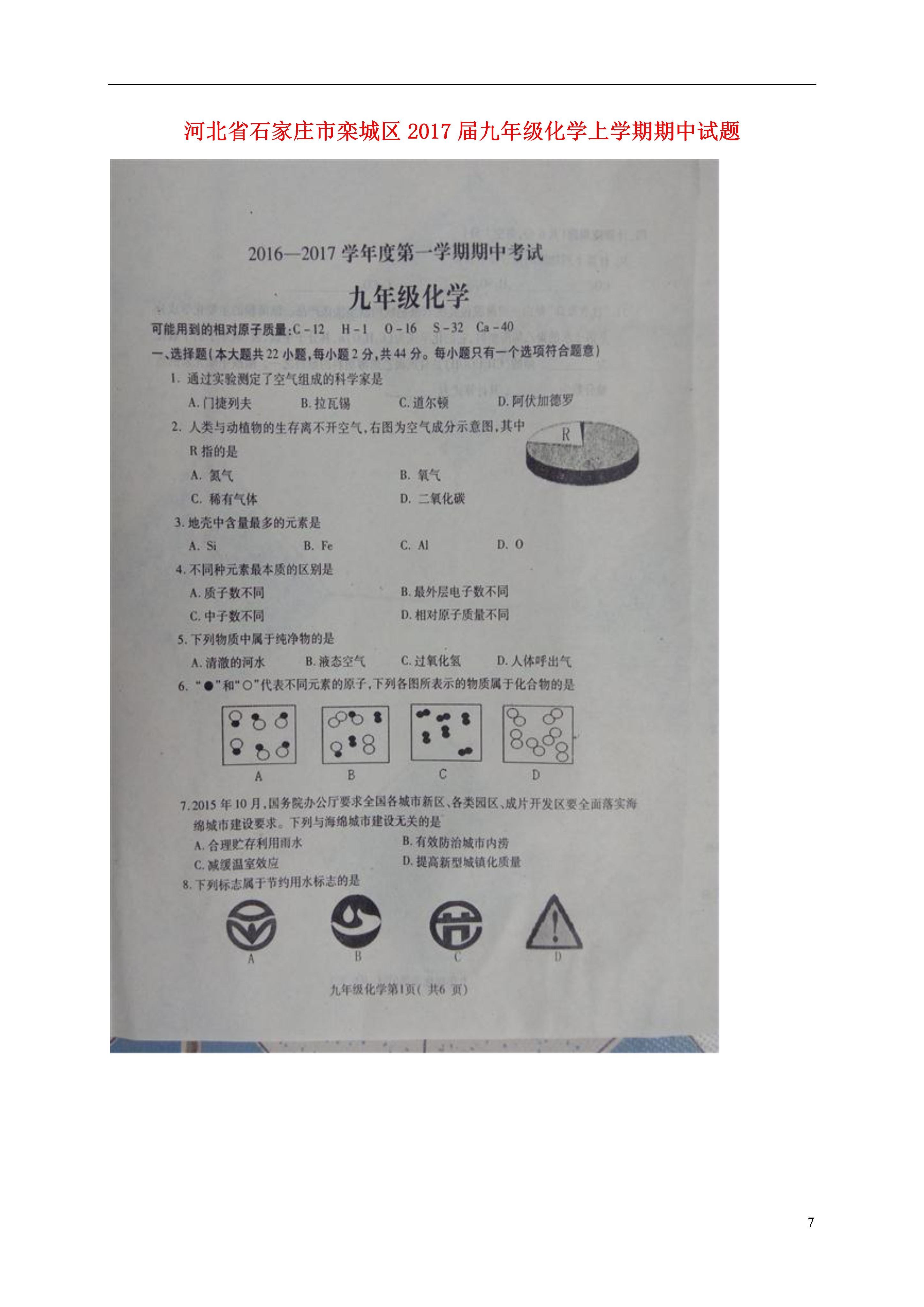 7河北省石家庄市栾城区2017届九年级化学上学期期中试题