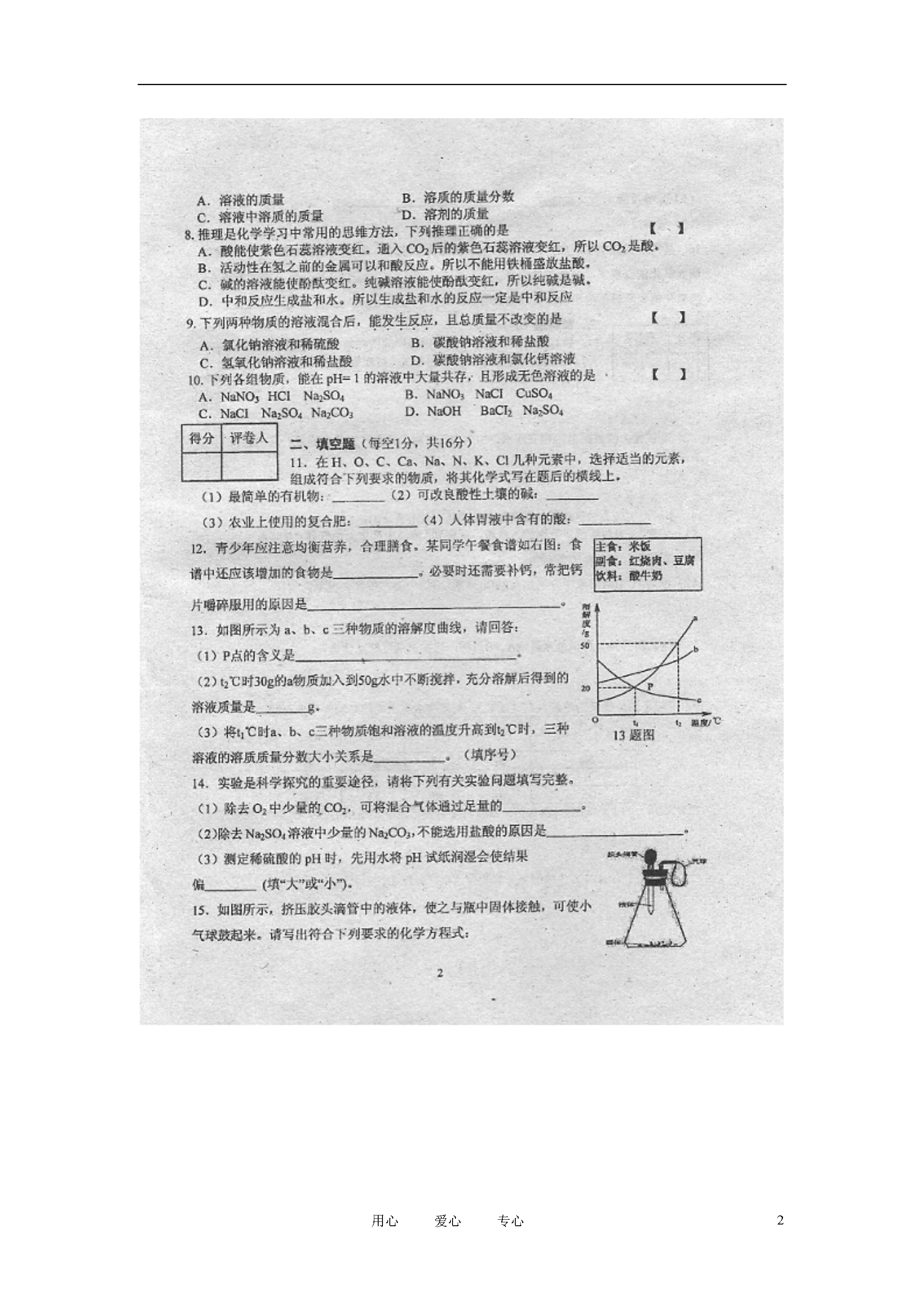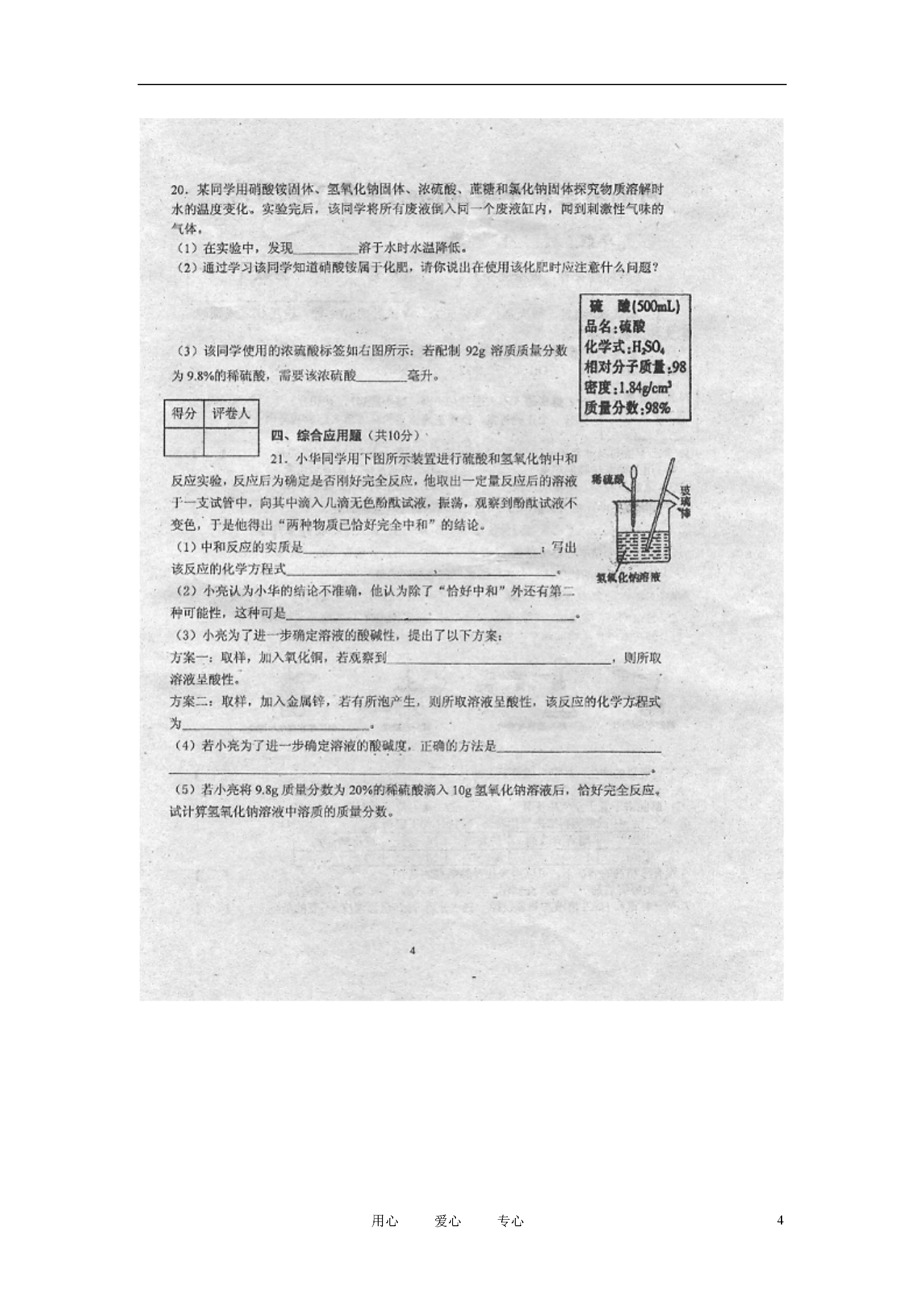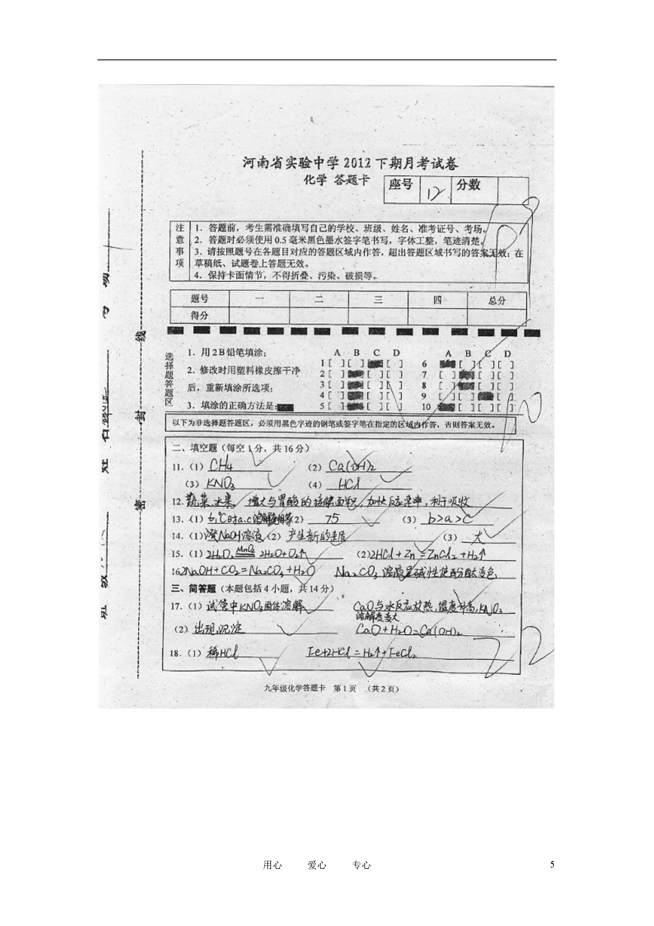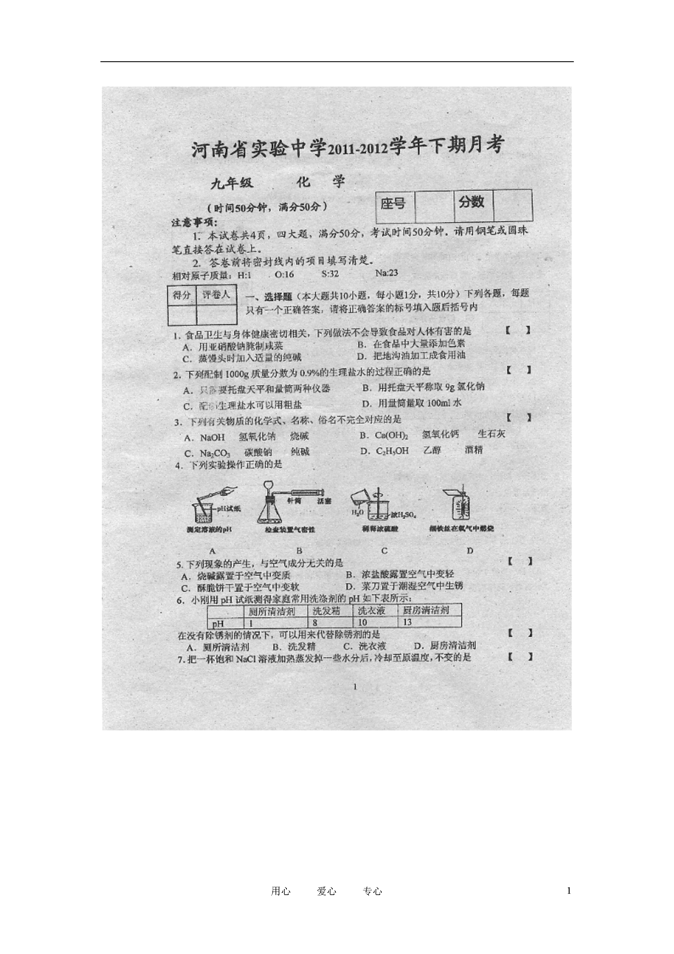 试题-河南-2012_河南省实验中学2011-2012学年九年级化学下学期第一次月考试题(扫描版) 人教新课标版.rar