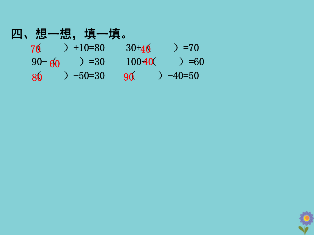 课件-全国-2020_一年级数学下册 第六单元 100以内的加法和减法(一)1 整十数加、减整十数作业课件 新人教版.ppt