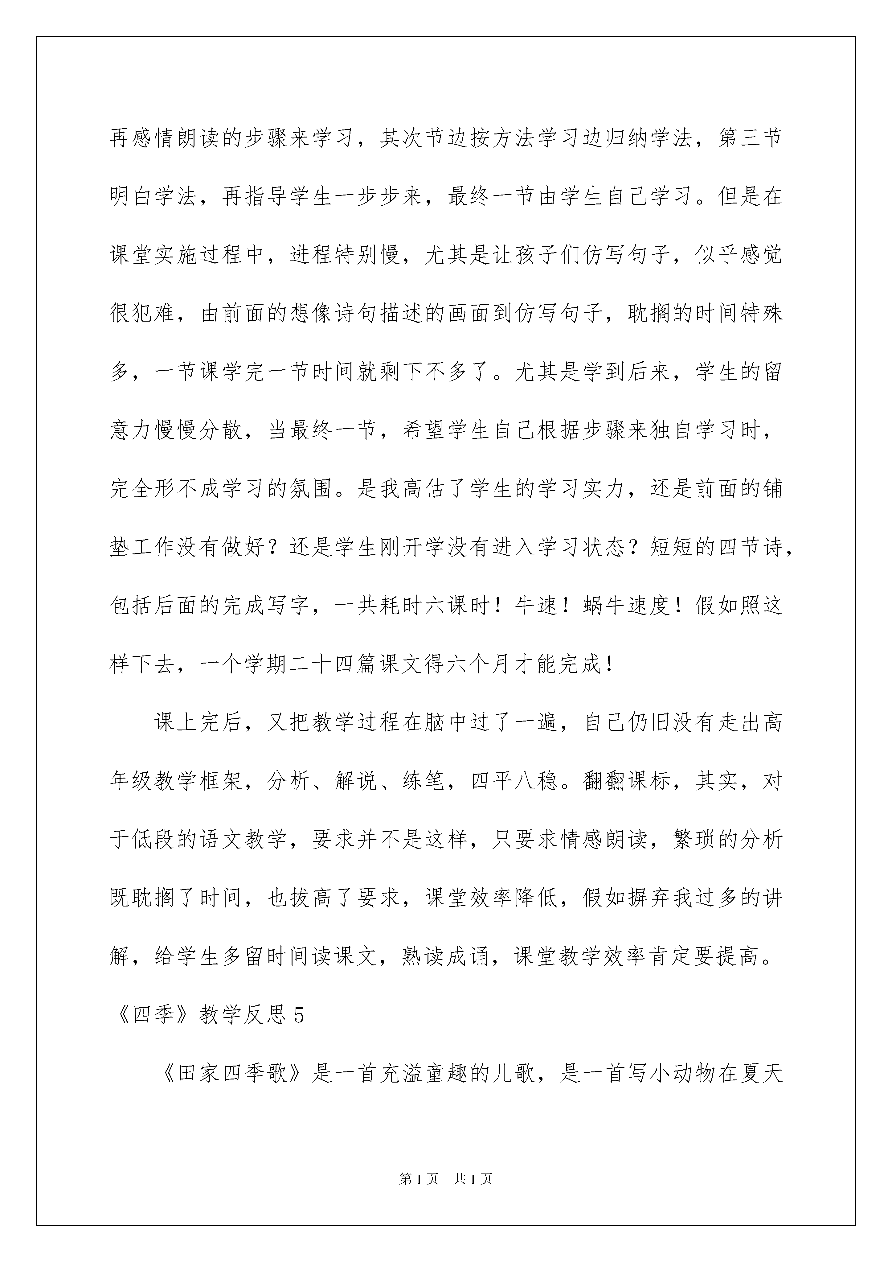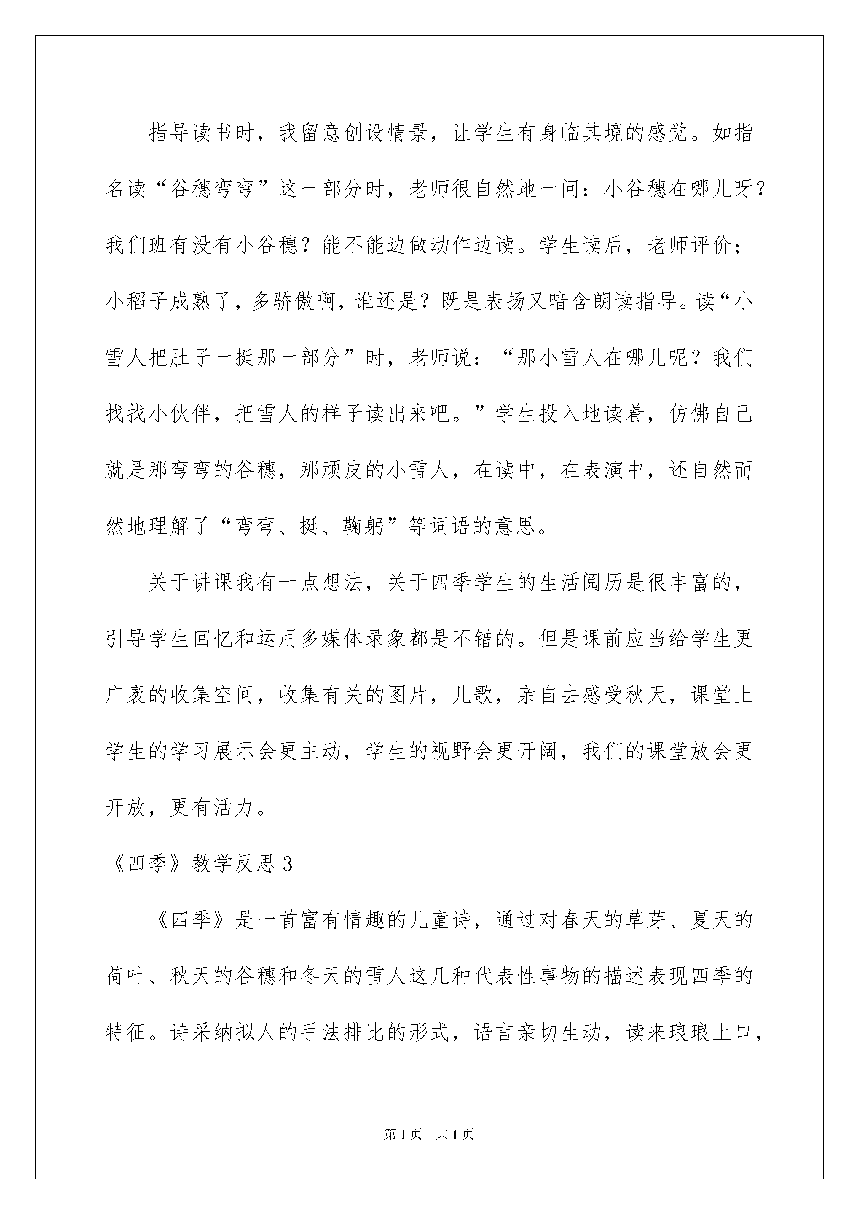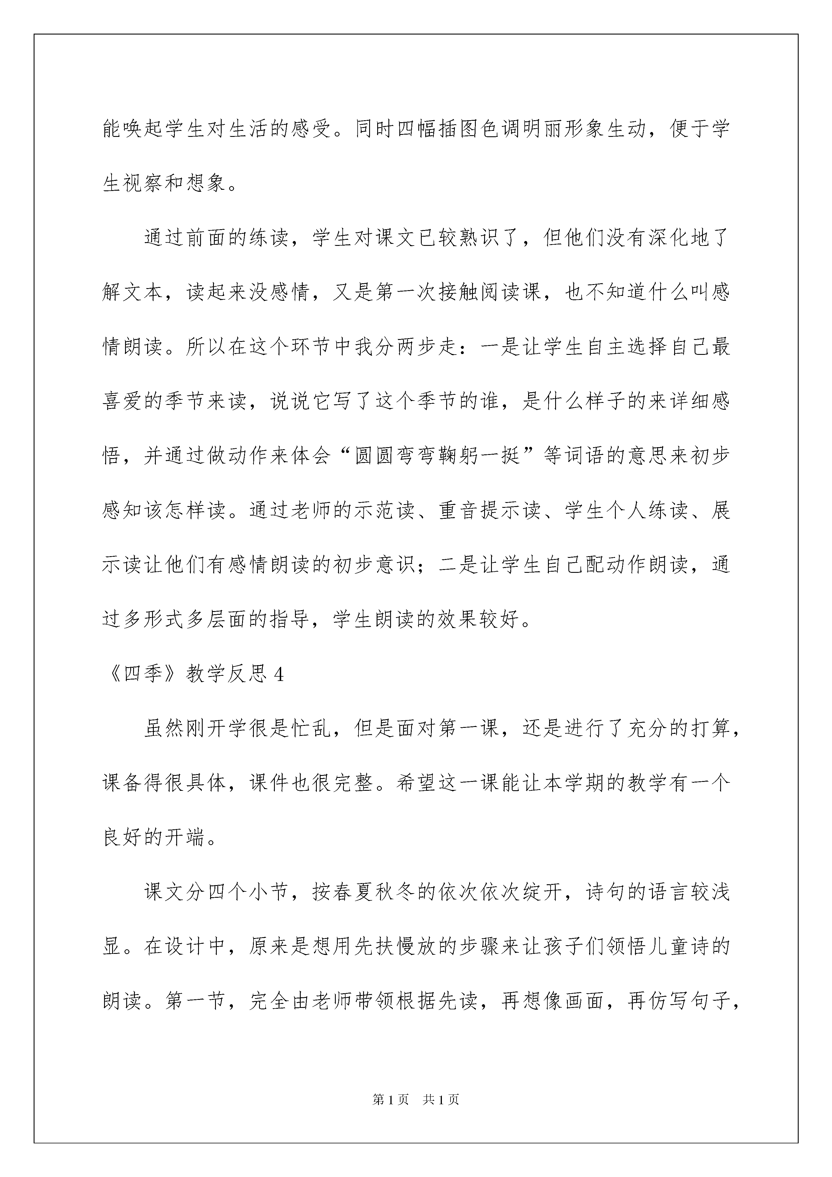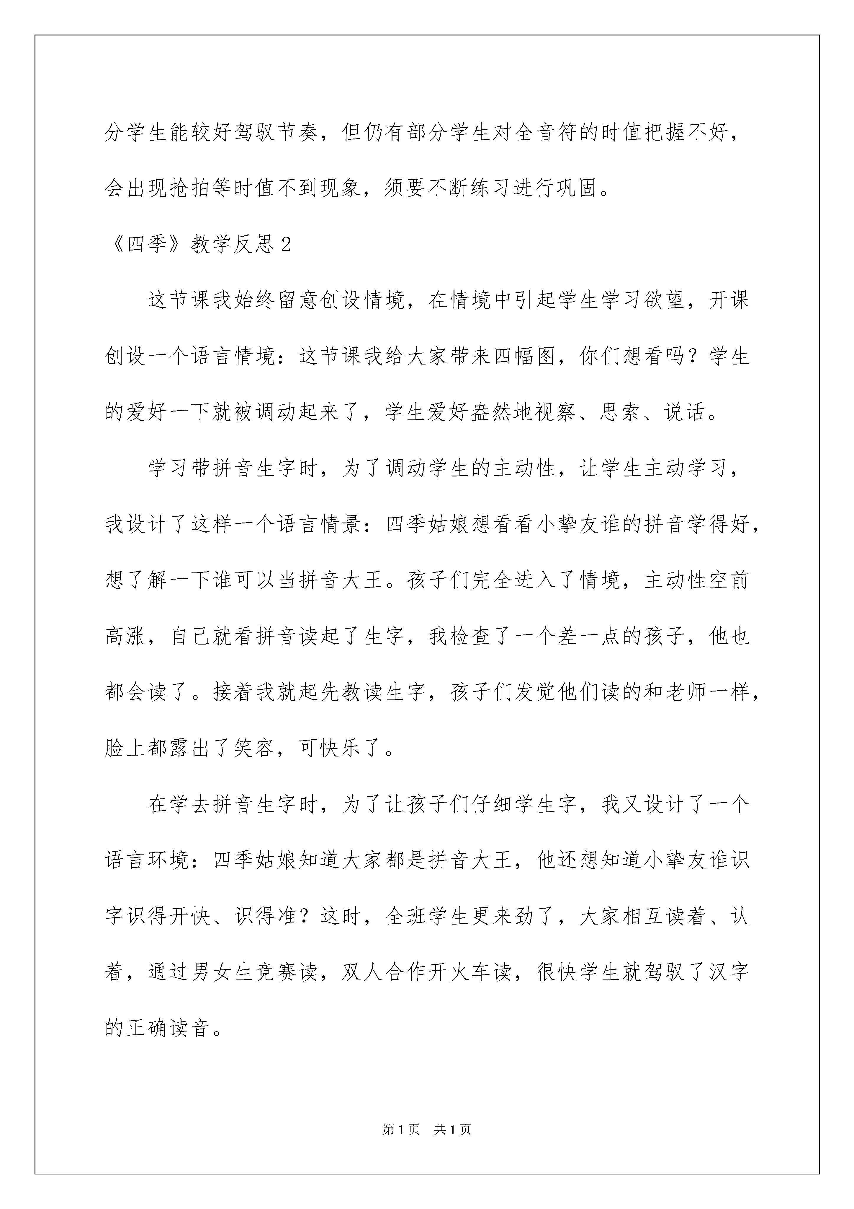 2022《四季》教学反思《四季》教学反思身为一名刚到岗的老师,我们要在课堂教学中快速成长,写教学反思能总结我们的教学阅历,我们该怎么去写教学反思呢?以下是我为大家整理的《四季》教学反思,欢迎阅读与保藏。《四季》教学反思1教材中的《四季童趣》这首歌,天真活泼,节奏既富有动感又带有激情,旋律不仅抒情而且线条感特别的流畅。较难的是歌曲中带有休止符的切分节奏。这个是比较难的,在教学之前心里也没底,不知道学生们能不能驾驭,然而这个又是歌曲的韵味所在,不得不唱好。为了解决好这点,我创设情境,在与学生对一年四季各个季节的沟通时,就把歌曲的伴奏音乐轻轻的放着,所谓"润物细无声",然后请学生观赏了歌曲的范唱,请学生特别轻的跟着范唱唱一遍,沟通了解学生在唱时有什么困难,是不是节奏不太跟得上。让学生自己发觉问题。再提出要求让学生留意视察休止符,跟着录音把吸气吸好。然后再静心倾听歌曲的范唱。经过几次努力,大部分学生能较好驾驭节奏,但仍有部分学生对全音符的时值把握不好,会出现抢拍等时值不到现象,须要不断练习进行巩固。《四季》教学反思2这节课我始终留意创设情境,在情境中引起学生学习欲望,开课创设一个语言情境:这节课我给大家带来四幅图,你们想看吗?学生的爱好一下就被调动起来了,学生爱好盎然地视察、思索、说话。学习带拼音生字时,为了调动学生的主动性,让学生主动学习,我设计了这样一个语言情景:四季姑娘想看看小挚友谁的拼音学得好,想了解一下谁可以当拼音大王。孩子们完全进入了情境,主动性空前高涨,自己就看拼音读起了生字,我检查了一个差一点的孩子,他也都会读了。接着我就起先教读生字,孩子们发觉他们读的和老师一样,脸上都露出了笑容,可快乐了。在学去拼音生字时,为了让孩子们仔细学生字,我又设计了一个语言环境:四季姑娘知道大家都是拼音大王,他还想知道小挚友谁识字识得开快、识得准?这时,全班学生更来劲了,大家相互读着、认着,通过男女生竞赛读,双人合作开火车读,很快学生就驾驭了汉字的正确读音。指导读书时,我留意创设情景,让学生有身临其境的感觉。如指名读“谷穗弯弯”这一部分时,老师很自然地一问:小谷穗在哪儿呀?我们班有没有小谷穗?能不能边做动作边读。学生读后,老师评价;小稻子成熟了,多骄傲啊,谁还是?既是表扬又暗含朗读指导。读“小雪人把肚子一挺那一部分”时,老师说:“那小雪人在哪儿呢?我们找找小伙伴,把雪人的样子读出来吧。”学生投入地读着,仿佛自己就是那弯弯的谷穗,那顽皮的小雪人,在读中,在表演中,还自然而然地理解了“弯弯、挺、鞠躬”等词语的意思。关于讲课我有一点想法,关于四季学生的生活阅历是很丰富的,引导学生回忆和运用多媒体录象都是不错的。但是课前应当给学生更广袤的收集空间,收集有关的图片,儿歌,亲自去感受秋天,课堂上学生的学习展示会更主动,学生的视野会更开阔,我们的课堂放会更开放,更有活力。《四季》教学反思3《四季》是一首富有情趣的儿童诗,通过对春天的草芽、夏天的荷叶、秋天的谷穗和冬天的雪人这几种代表性事物的描述表现四季的特征。诗采纳拟人的手法排比的形式,语言亲切生动,读来琅琅上口,能唤起学生对生活的感受。同时四幅插图色调明丽形象生动,便于学生视察和想象。通过前面的练读,学生对课文已较熟识了,但他们没有深化地了解文本,读起来没感情,又是第一次接触阅读课,也不知道什么叫感情朗读。所以在这个环节中我分两步走:一是让学生自主选择自己最喜爱的季节来读,说说它写了这个季节的谁,是什么样子的来详细感悟,并通过做动作来体会“圆圆弯弯鞠躬一挺”等词语的意思来初步感知该怎样读。通过老师的示范读、重音提示读、学生个人练读、展示读让他们有感情朗读的初步意识;二是让学生自己配动作朗读,通过多形式多层面的指导,学生朗读的效果较好。《四季》教学反思4虽然刚开学很是忙乱,但是面对第一课,还是进行了充分的打算,课备得很具体,课件也很完整。希望这一课能让本学期的教学有一个良好的开端。课文分四个小节,按春夏秋冬的依次依次绽开,诗句的语言较浅显。在设计中,原来是想用先扶慢放的步骤来让孩子们领悟儿童诗的朗读。第一节,完全由老师带领根据先读,再想像画面,再仿写句子,再感情朗读的步骤来学习,其次节边按方法学习边归纳学法,第三节明白学法,再指导学生一步步来,最终一节由学生自己学习。但是在课堂实施过程中,进程特别慢,尤其是让孩子们仿写句子,似乎感觉很犯难,由前面的想像诗句描述的画面到仿写句子,耽搁的时间特殊多,一节课学完一节时间就剩下不多了。尤其是学到后来,学生的留意力慢慢分散,当最终一节,希望学生自己根据步骤来独自学习时,完全形不成学习的氛围。是我高估了学生的学习