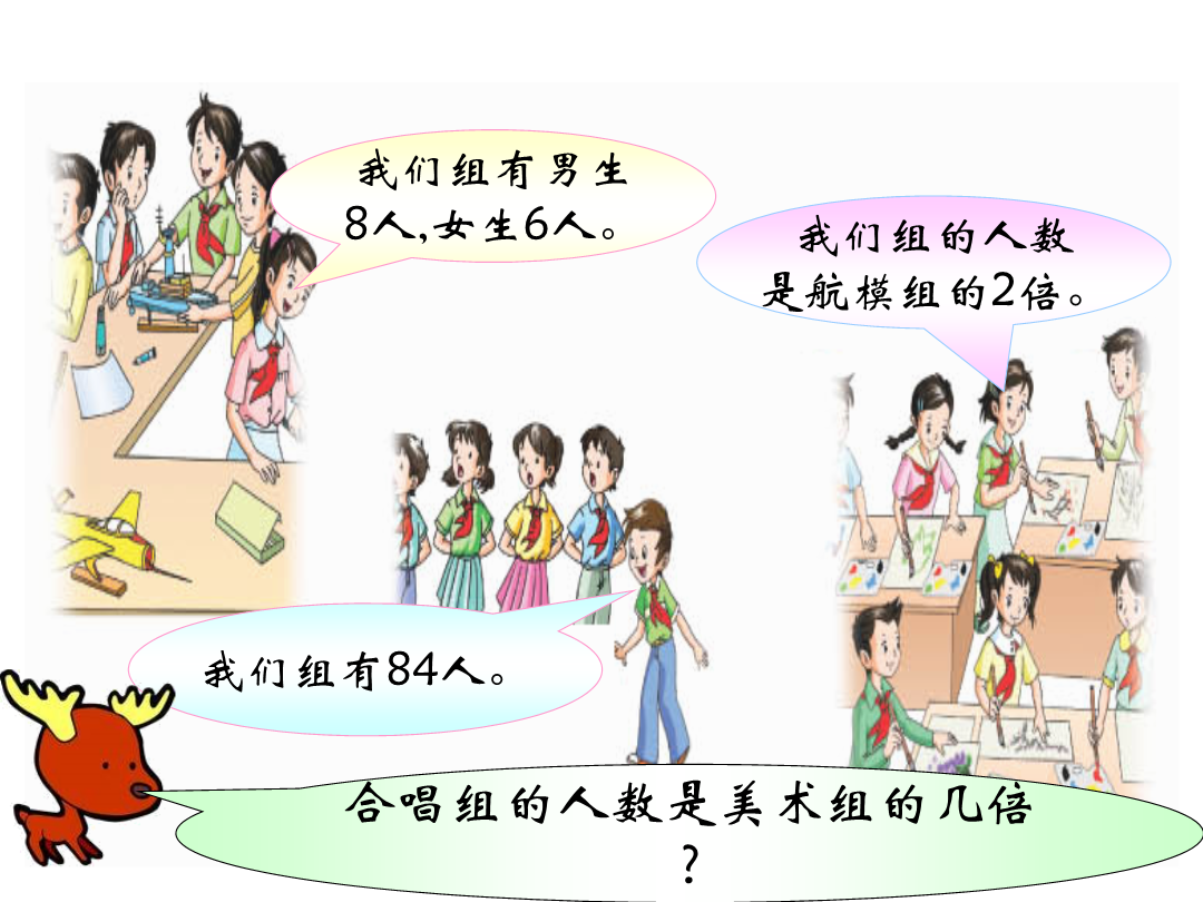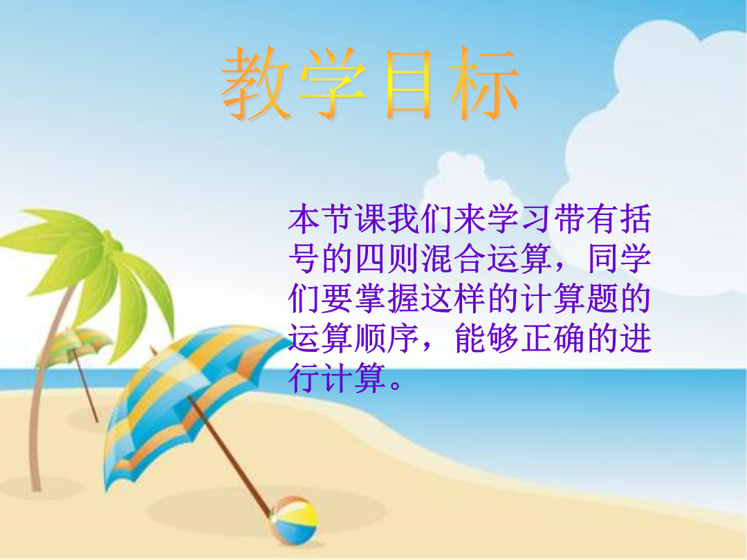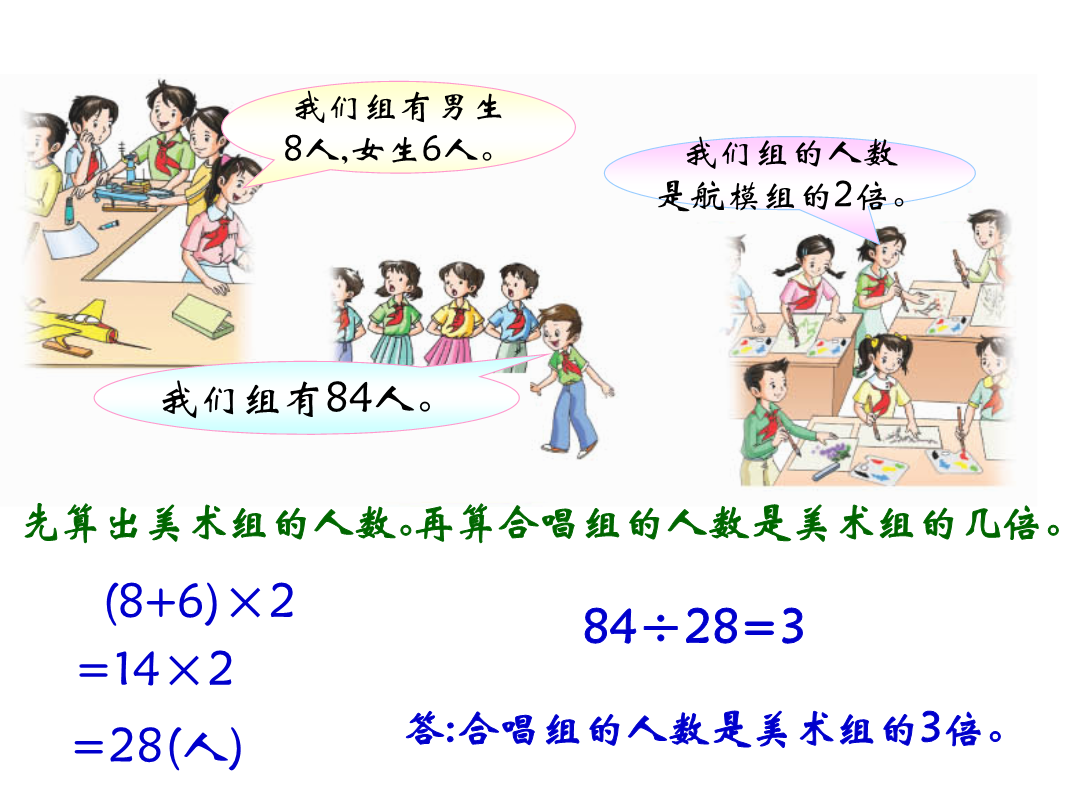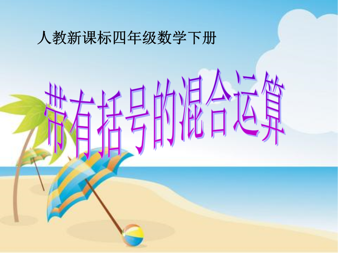 带有括号的混合运算教学目标我们组有男生8人,女生6人。我们组有男生8人,女生6人。我们组有男生8人,女生6人。我们组有男生8人,女生6人。这里要先算美术组的人数,列综合算式时,就要用到中括号。42×[169-(78+35)]72÷[960÷(245-165)]想想做做,怎样算简便就怎样算。想想做做,怎样算简便就怎样算。(165-65÷5)×6=(100÷5)×6=20×6=120载重量5t羽毛球拍每副97元小军从家到学校走了8分。用同样的速度,他从家到少年宫要走多少时间?242+84+(58+116)3总结