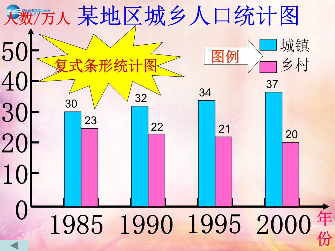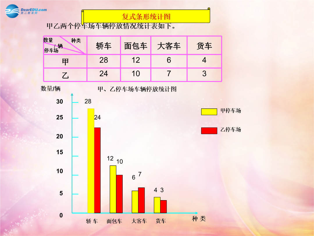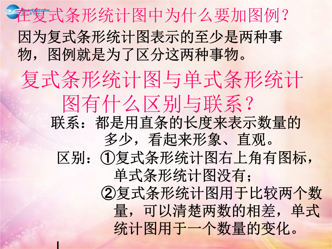 第六单元0复式条形统计图与单式条形统计图有什么区别与联系?6种类统计图是横着画的,数据写在统计图的右边.像这样的统计图叫做横向复式条形统计图.(1)你能提出什么数学问题?(2)你能得到哪些信息?保护环境,关爱家园,从我做起甲乙两个地区,甲地区绿化搞得好,乙地区树林和草地遭到破坏。甲乙两地近年来降水量如下表:甲乙两个地区,甲地区绿化搞得好,乙地区树林和草地遭到破坏。甲乙两地近年来降水量如下表。甲、乙地区降水量统计图根据统计表完成书上106页的统计图,并回答问题。。某小学四年级学生体重情况统计图李叔叔收到的邮件数量统计图