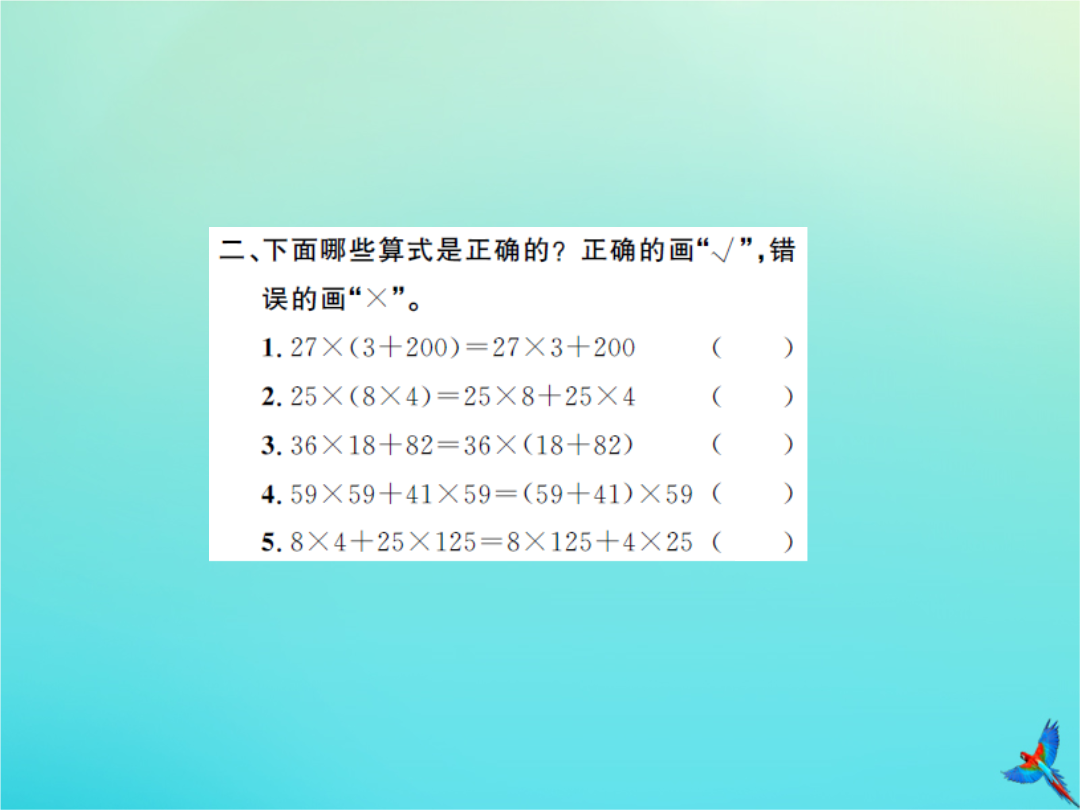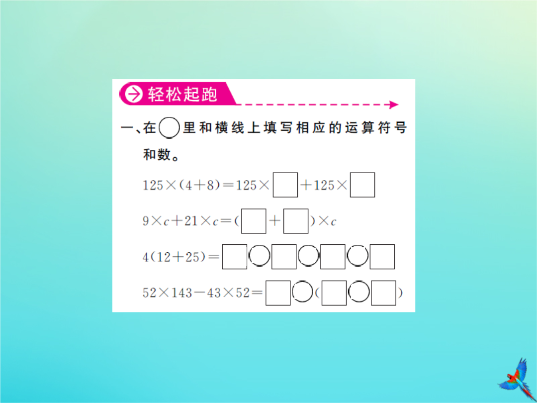 课件-全国-2020_四年级数学下册 第三单元 运算定律 第6课时 乘法分配律习题课件 新人教版.ppt