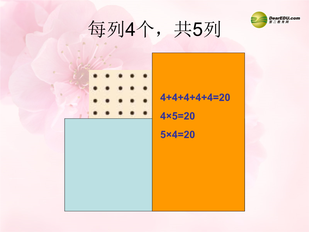 请将下面的加法算式改写成乘法算式照样子,摆一摆每列4个,共5列4×73×8一共有多少人?一共有多少瓶?请你提出2个数学问题,并尝试解答。2人一组,一人说一人摆