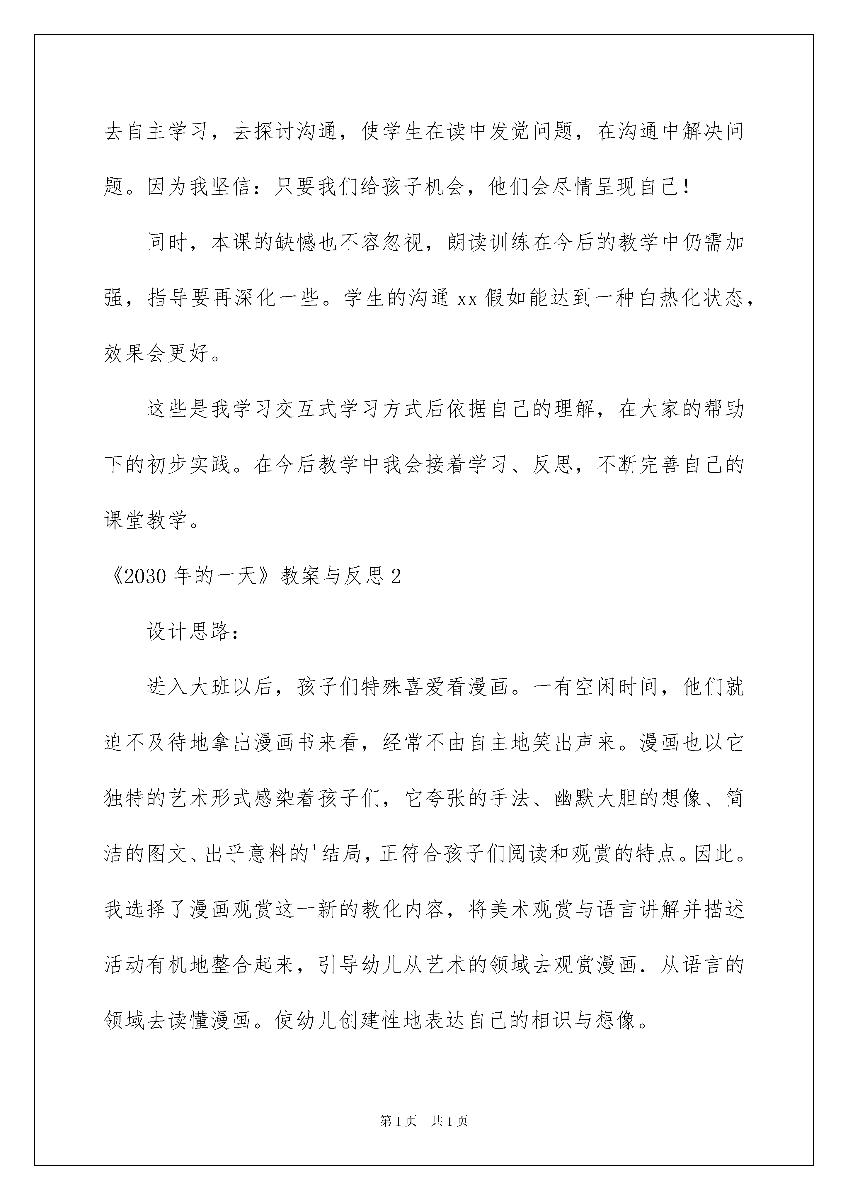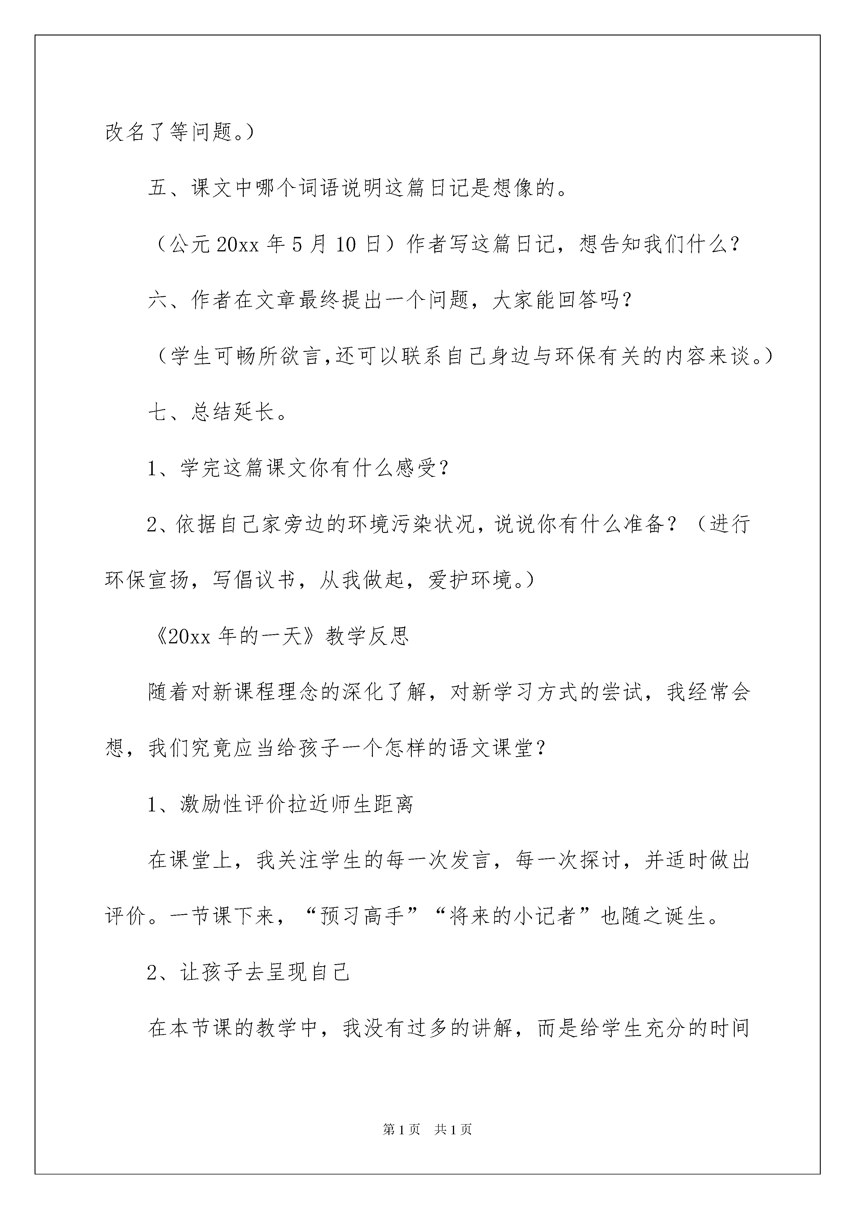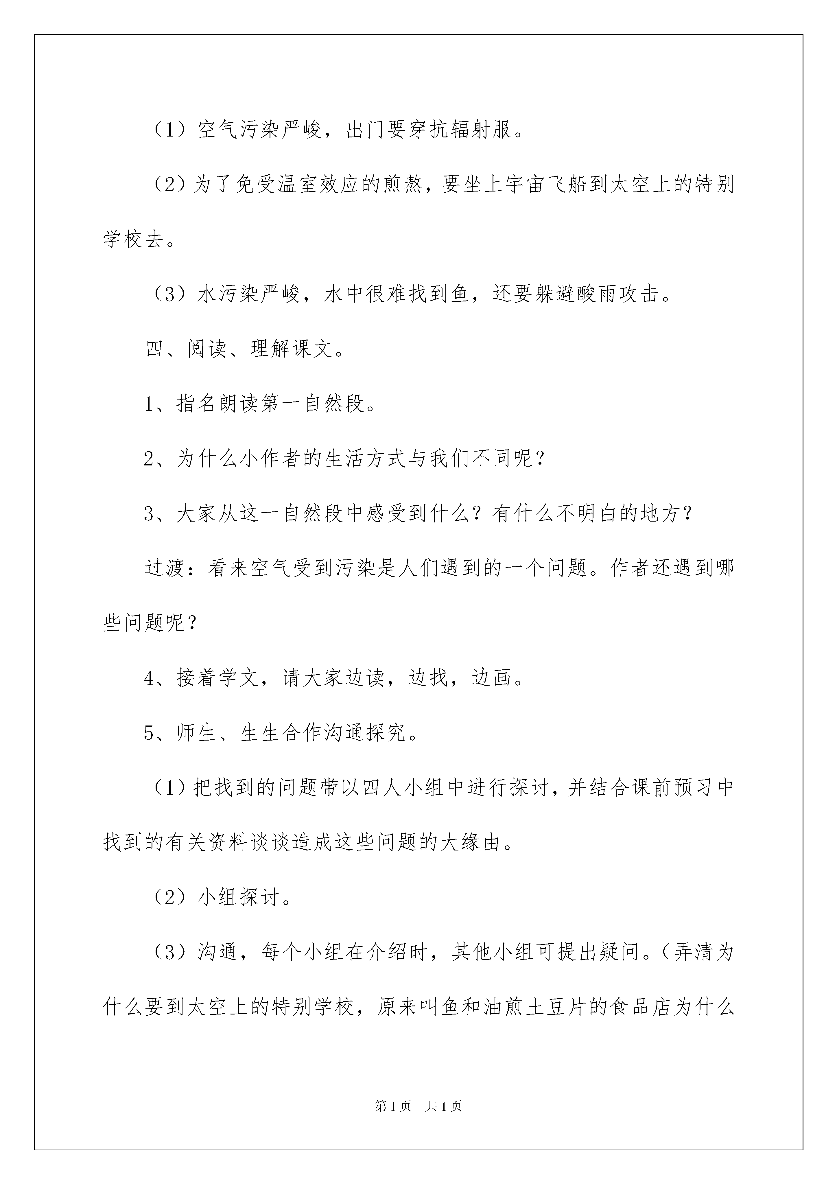 2022《的一天》教案与反思《2030年的一天》教案与反思作为一位兢兢业业的人民老师,时常要开展教案打算工作,教案是教材及大纲与课堂教学的纽带和桥梁。那么问题来了,教案应当怎么写?下面是我细心整理的《2030年的一天》教案与反思,希望对大家有所帮助。《2030年的一天》教案与反思1教学要求:1、相识3个生字。2、有感情地朗读课文。了解这篇想象日记的叙述依次和主要内容。3、了解作者所想象的30年后地球环境污染的状况,培育学生环保意识。教学重、难点:了解课文的叙述依次和主要内容。教学打算:课前布置学生视察四周环境状况,收集有关环境污染的资料,有条件的,还可以看看有关环境治理和爱护方面的新闻报道。教学时数:1课时教学过程:一、图片(或录像)导入。1、出示挂图(环境污染图)或播放关于环境爱护的公益广告。2、看到这些画面(情景)你想到了什么?(学生自由发言,只要意识到环境日益受到污染、破坏,我们要爱护环境即可。)二、读通课文。1、先请一位同学读读“阅读提示”。2、自由读课文,遇到带生字的句子多读几遍。3、指名读课文,要求读得正确,流利。三、学生沟通,读懂课文。1、这篇文章原委告知了我们什么呢?(20xx年5月10日这一天人们生活的情形。)2、作者根据什么依次来记叙的?在这一天的各个时间段里,“我做了些什么事?”请大家用笔在书上画出来。3、日记中讲到哪些环境恶化的状况?(1)空气污染严峻,出门要穿抗辐射服。(2)为了免受温室效应的煎熬,要坐上宇宙飞船到太空上的特别学校去。(3)水污染严峻,水中很难找到鱼,还要躲避酸雨攻击。四、阅读、理解课文。1、指名朗读第一自然段。2、为什么小作者的生活方式与我们不同呢?3、大家从这一自然段中感受到什么?有什么不明白的地方?过渡:看来空气受到污染是人们遇到的一个问题。作者还遇到哪些问题呢?4、接着学文,请大家边读,边找,边画。5、师生、生生合作沟通探究。(1)把找到的问题带以四人小组中进行探讨,并结合课前预习中找到的有关资料谈谈造成这些问题的大缘由。(2)小组探讨。(3)沟通,每个小组在介绍时,其他小组可提出疑问。(弄清为什么要到太空上的特别学校,原来叫鱼和油煎土豆片的食品店为什么改名了等问题。)五、课文中哪个词语说明这篇日记是想像的。(公元20xx年5月10日)作者写这篇日记,想告知我们什么?六、作者在文章最终提出一个问题,大家能回答吗?(学生可畅所欲言,还可以联系自己身边与环保有关的内容来谈。)七、总结延长。1、学完这篇课文你有什么感受?2、依据自己家旁边的环境污染状况,说说你有什么准备?(进行环保宣扬,写倡议书,从我做起,爱护环境。)《20xx年的一天》教学反思随着对新课程理念的深化了解,对新学习方式的尝试,我经常会想,我们究竟应当给孩子一个怎样的语文课堂?1、激励性评价拉近师生距离在课堂上,我关注学生的每一次发言,每一次探讨,并适时做出评价。一节课下来,“预习高手”“将来的小记者”也随之诞生。2、让孩子去呈现自己在本节课的教学中,我没有过多的讲解,而是给学生充分的时间去自主学习,去探讨沟通,使学生在读中发觉问题,在沟通中解决问题。因为我坚信:只要我们给孩子机会,他们会尽情呈现自己!同时,本课的缺憾也不容忽视,朗读训练在今后的教学中仍需加强,指导要再深化一些。学生的沟通xx假如能达到一种白热化状态,效果会更好。这些是我学习交互式学习方式后依据自己的理解,在大家的帮助下的初步实践。在今后教学中我会接着学习、反思,不断完善自己的课堂教学。《2030年的一天》教案与反思2设计思路:进入大班以后,孩子们特殊喜爱看漫画。一有空闲时间,他们就迫不及待地拿出漫画书来看,经常不由自主地笑出声来。漫画也以它独特的艺术形式感染着孩子们,它夸张的手法、幽默大胆的想像、简洁的图文、出乎意料的'结局,正符合孩子们阅读和观赏的特点。因此。我选择了漫画观赏这一新的教化内容,将美术观赏与语言讲解并描述活动有机地整合起来,引导幼儿从艺术的领域去观赏漫画.从语言的领域去读懂漫画。使幼儿创建性地表达自己的相识与想像。重点难点:1.观赏和感知理解漫画作品.须要幼儿集中留意视察,这也是能否达到目标的重要条件。因此,我从活动起先便设置了一个个悬念,直到结尾也就是高潮部分,我没有干脆揭晓答案,而是留给幼儿一个充分的想像空间。这样,使幼儿的留意得以许久保持。2.了解漫画特点对幼儿是有肯定难度的,当然也不是一次活动所能完成的。因此,在活动中,我们不能空洞地将一些抽象的词汇灌输给孩子们听,而是通过细心设计的提问和让幼儿观赏一些有代表性的漫画作品,有机渗透在活动中。我还设置了漫画墙作为打算和延长活