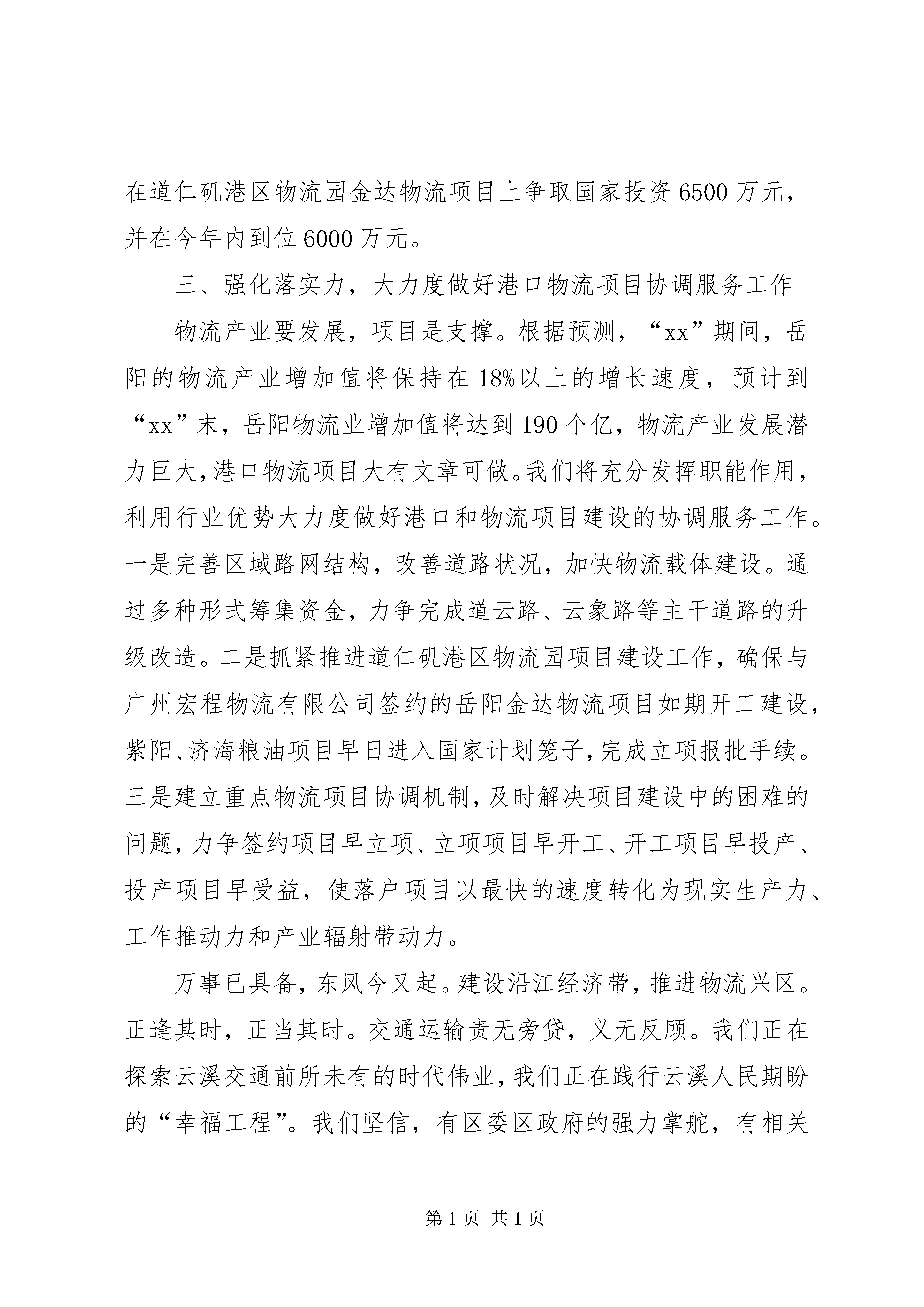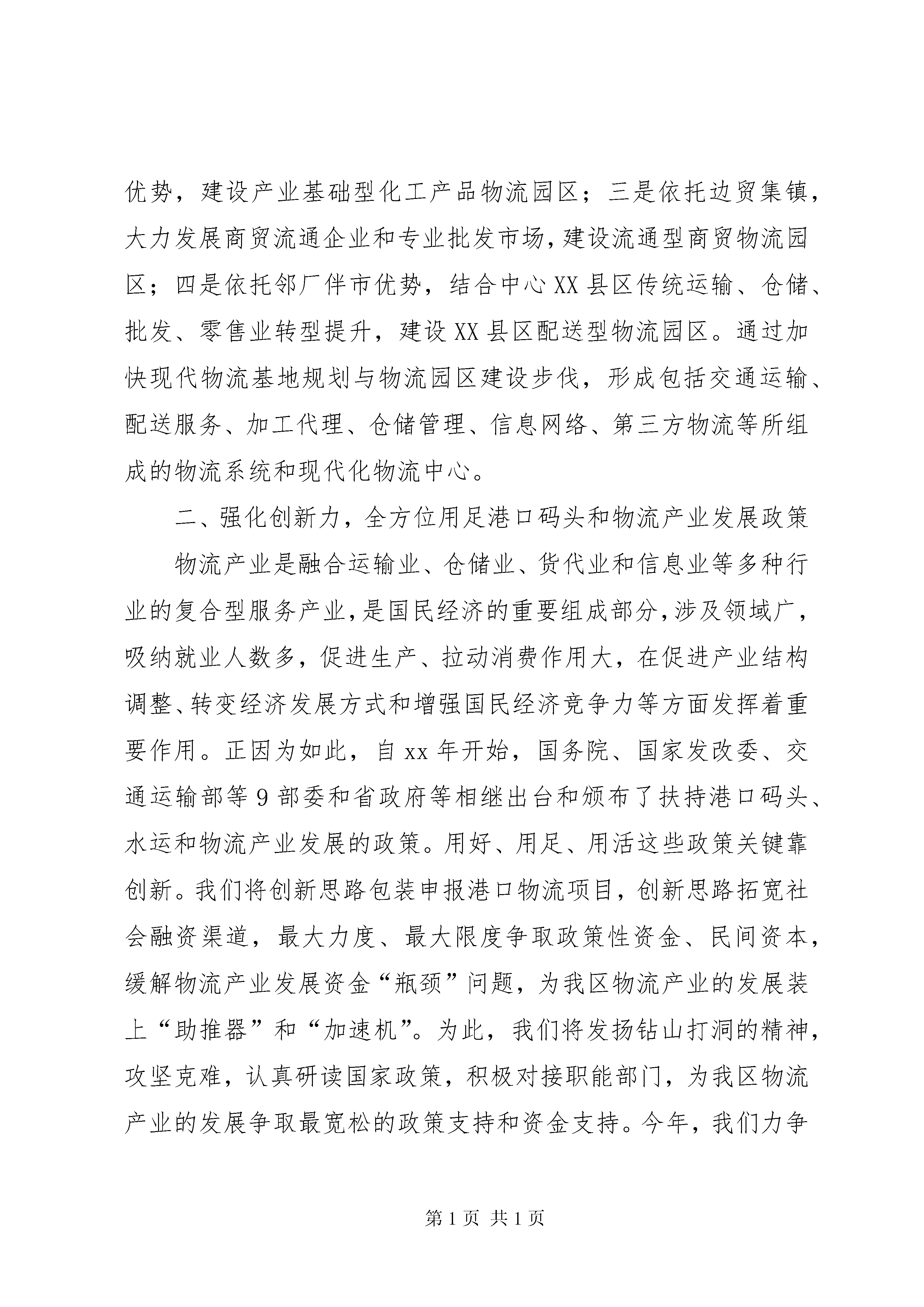 在全区经济工作会议上的表态发言稿同志们:建设沿江经济带是云溪多元支撑多元发展的重要一极,是“物流兴区”的核心区域。目前,我区交通运输正在千亿园区便捷组网,建设物流兴区不仅占天时、地利、人和,而且是未来云溪方兴未艾的热点亮点。作为全区物流行业管理部门,今年,我们交通运输局将紧紧围绕志莲书记的主题报告和各位领导的重要讲话精神,在全面履行交通行政管理职能,全面加强交通基础设施建设,全面规范交通运输市场管理,全面提升交通行政执法队伍建设的同时,全力推进港口和物流产业基础建设,为此,我们将做好以下三个方面的工作:一、强化执行力,高起点编制物流产业发展规划科学的蓝图推动科学发展。我们将成立专门的机构,安排专门的人员,积极探索,集思广益,立足长远,高起点科学编制好我区的物流产业发展规划。全区物流产业发展在总体思路上将坚持充分发挥水路、陆路和港口优势,规划建设一批用地节约、产业集聚、功能集成、经营集约的物流园区。基本设想是建设四大专业物流园区。一是依托道仁矶港口和京广铁路、京珠高速、随岳高速、杭瑞高速、107国道穿境而过的交通枢纽优势,建设枢纽型港口物流园区;二是依托长岭炼化、巴陵石化等中央大型企业和云溪工业园、长炼工业园两大园区内企业的产业基础和产业优势,建设产业基础型化工产品物流园区;三是依托边贸集镇,大力发展商贸流通企业和专业批发市场,建设流通型商贸物流园区;四是依托邻厂伴市优势,结合中心XX县区传统运输、仓储、批发、零售业转型提升,建设XX县区配送型物流园区。通过加快现代物流基地规划与物流园区建设步伐,形成包括交通运输、配送服务、加工代理、仓储管理、信息网络、第三方物流等所组成的物流系统和现代化物流中心。二、强化创新力,全方位用足港口码头和物流产业发展政策物流产业是融合运输业、仓储业、货代业和信息业等多种行业的复合型服务产业,是国民经济的重要组成部分,涉及领域广,吸纳就业人数多,促进生产、拉动消费作用大,在促进产业结构调整、转变经济发展方式和增强国民经济竞争力等方面发挥着重要作用。正因为如此,自xx年开始,国务院、国家发改委、交通运输部等9部委和省政府等相继出台和颁布了扶持港口码头、水运和物流产业发展的政策。用好、用足、用活这些政策关键靠创新。我们将创新思路包装申报港口物流项目,创新思路拓宽社会融资渠道,最大力度、最大限度争取政策性资金、民间资本,缓解物流产业发展资金“瓶颈”问题,为我区物流产业的发展装上“助推器”和“加速机”。为此,我们将发扬钻山打洞的精神,攻坚克难,认真研读国家政策,积极对接职能部门,为我区物流产业的发展争取最宽松的政策支持和资金支持。今年,我们力争在道仁矶港区物流园金达物流项目上争取国家投资6500万元,并在今年内到位6000万元。三、强化落实力,大力度做好港口物流项目协调服务工作物流产业要发展,项目是支撑。根据预测,“xx”期间,岳阳的物流产业增加值将保持在18%以上的增长速度,预计到“xx”末,岳阳物流业增加值将达到190个亿,物流产业发展潜力巨大,港口物流项目大有文章可做。我们将充分发挥职能作用,利用行业优势大力度做好港口和物流项目建设的协调服务工作。一是完善区域路网结构,改善道路状况,加快物流载体建设。通过多种形式筹集资金,力争完成道云路、云象路等主干道路的升级改造。二是抓紧推进道仁矶港区物流园项目建设工作,确保与广州宏程物流有限公司签约的岳阳金达物流项目如期开工建设,紫阳、济海粮油项目早日进入国家计划笼子,完成立项报批手续。三是建立重点物流项目协调机制,及时解决项目建设中的困难的问题,力争签约项目早立项、立项项目早开工、开工项目早投产、投产项目早受益,使落户项目以最快的速度转化为现实生产力、工作推动力和产业辐射带动力。万事已具备,东风今又起。建设沿江经济带,推进物流兴区。正逢其时,正当其时。交通运输责无旁贷,义无反顾。我们正在探索云溪交通前所未有的时代伟业,我们正在践行云溪人民期盼的“幸福工程”。我们坚信,有区委区政府的强力掌舵,有相关部门和乡镇的风雨同舟,我们有决心、有信心、有作风、有能力,一往无前地迈出我们的铿锵脚步。谢谢大家。第二篇:在全经济工作会议上的讲话在全县经济工作会议上的讲话县长谢善高(2018年1月8日)各位领导,同志们:今天,我们召开全县的经济工作会议,主要目的是,全面贯彻党的十九大、中央、全区和全市经济工作会议精神,总结2017年经济工作,分析当前经济形势,部署2018年经济工作。我在这里先讲三个方面的内容。一是传达中央、自治区及XX市经济工作会议精神;二是总结2017年我县的经济工作;三是对2018年我县的经济工作进行安排。最后,树锋书记还要做重要讲话,希望大家抓好贯彻落实。12月18日至20日,中央经济工作会议在北京举行,习近平总书记和李克强总理在会上作