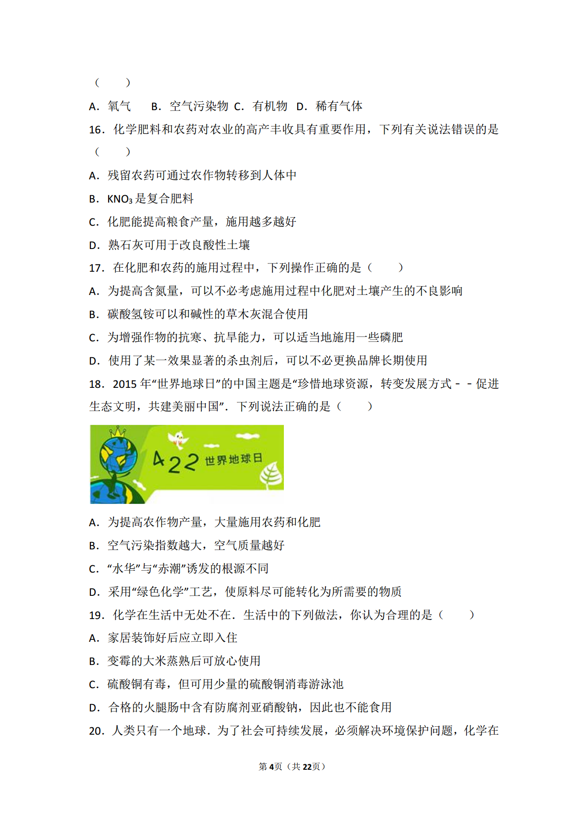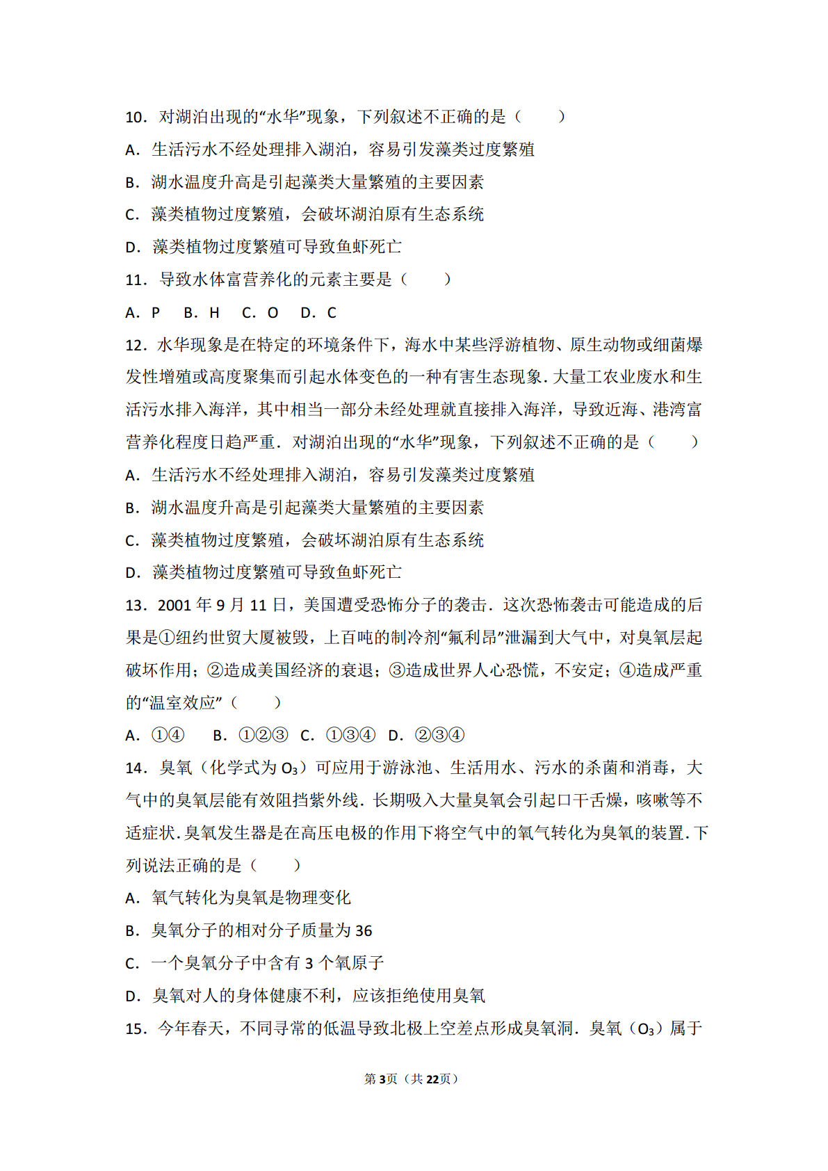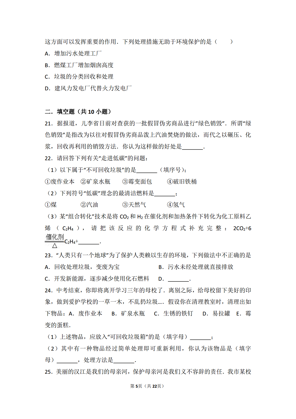 试题-全国-2018_2017-2018学年九年级化学下册 专题九 化学与生活 第三单元 保护我们的生存环境基础题(pdf,含解析)(新版)湘教版.pdf