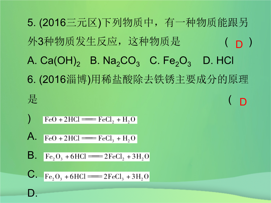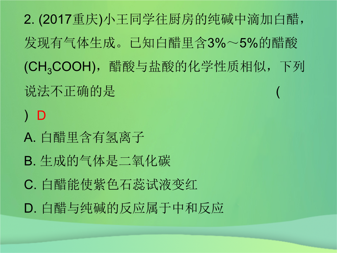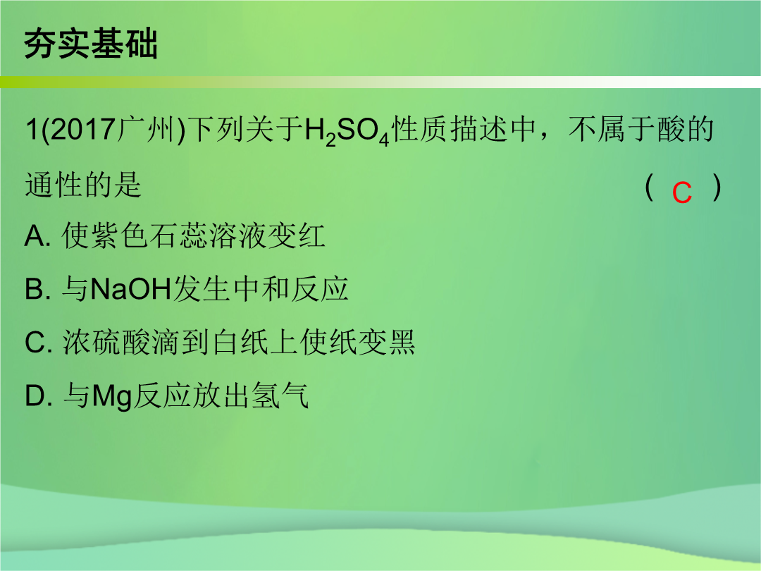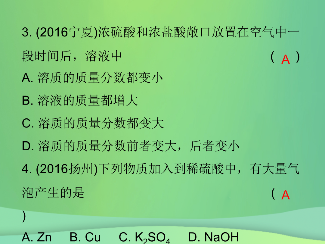 课件-全国-2018_2019中考化学必备复习 第三部分 身边的化学物质 第8节 常见的酸(课后提升练)课件.ppt