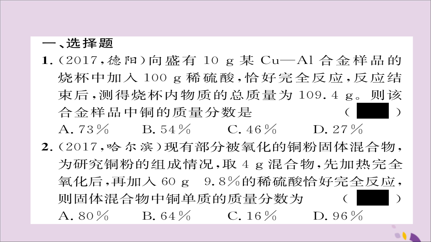 课件-全国-2019_(遵义专版)2018中考化学总复习 第2编 重点题型突破篇 专题7 常见的化学计算(精练)课件.ppt