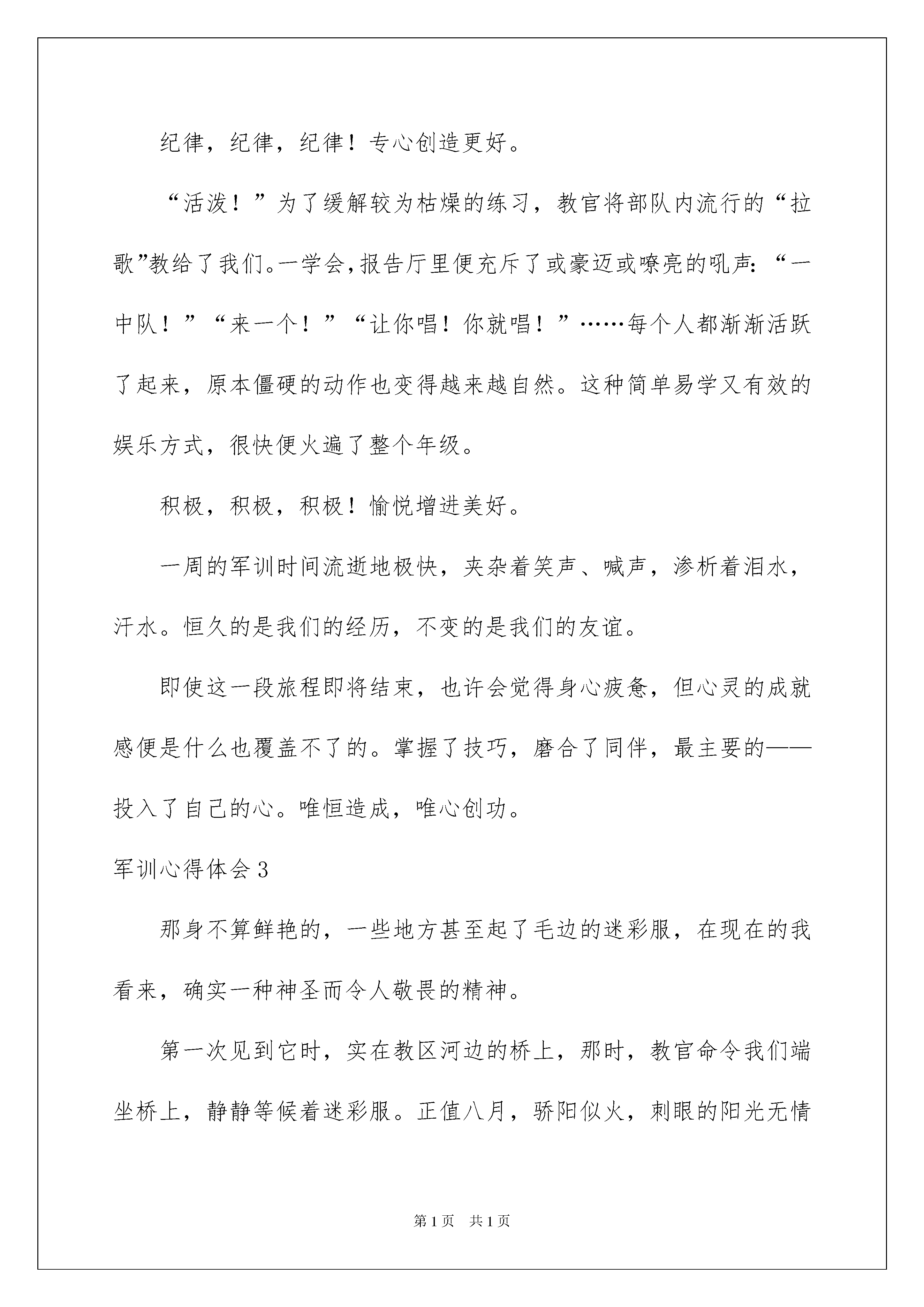 2022军训心得体会14篇军训心得体会14篇当我们积累了新的体会时,应该马上记录下来,写一篇心得体会,这样能够给人努力向前的动力。那么好的心得体会是什么样的呢?以下是我帮大家整理的军训心得体会,仅供参考,大家一起来看看吧。军训心得体会1第二次军训,太阳的热度不减,我们的热情不退。对于宽大的训练场来说,每个人只是一个个小点,可是在近50人的班级里,各自形成的方阵就是一道道亮丽的风景。一个摆臂,一声跺脚,一次敬礼……细碎的声音和划一的动作汇在一起,便展现出集体的强大力量。这是整齐划一的我们,这是团结一致的我们。——当然,初来乍到的我们可不是这样。刚刚到达国防园的我们,不适应热辣辣的太阳,也并不懂得“严肃”与“活泼”的有机结合。穿着迷彩服和迷彩帽的我们,十分憧憬的心情和烈日一起升到八月的顶峰。却又在穿上的那一刻化为泡影。即使是坐着聆听教诲,接受动员,也是豆大的汗珠沿着发际一滴一滴汇下来,聚在下巴尖;站着训练军姿,从脚底升向头顶的晕眩感一点点腾起,或许会晕倒,却不曾放弃。其实很无奈,但也有“色彩”。有一些风卷着热浪吹过来之时,或者拉歌,或者打趣的时候,笑声阵阵即是一剂消暑剂。而更多的喜悦,来自训练取得一定进展的时候,看着影子挺拔如松的教官们,心中也多了一份笃定与踏实。而对于幸福,也就有了更深的解读。三伏天躺在空调的你,不会觉得有一台风扇“呼呼”地吹出风是幸福,虽然你,还是你,劳碌一天把衣服扔进洗衣机或者送往干洗店的你,不会觉得有洗衣机“呼啦呼啦”转,再脱水,是幸福;虽然你,还是你,抱着冰镇西瓜庭院纳凉的你,不会觉得拥有一瓶矿泉水,是幸福,虽然你,还是你。其实幸福不需要比较也不能被比较,但我们要明白,幸福不是苛求,不是永无止尽的不满,而是在不同环境里不断追求与超越时获得的一份身心的慰藉。这是在年复一年的八月里仍会被铭记的最好的我们,最棒的队伍,最风华正茂的模样,最鲜明靓丽的色彩。你,怎么活,怎么做,总还是你。可在有能力追求幸福而避免抱怨的时候,你总该拼一把,挺过去。为了你,和周围偌大的集体。军训心得体会2与高中同学第一次的集体活动,是正在进行的新生军训。和其他班级同学略带羞涩的默默打量相比,已经互相熟悉的我们——高一十八班的朋友们,早就开了许多关于或大或小的军服的玩笑,眼里满满都是期待与兴奋。“严肃!”白天是令人畏惧的骄阳,夜晚是轻抚过脖颈的凉风。也许是炎热,也许是痛痒,但这些微小的感觉在国防园里都不是随意移动的理由。自己看来完美的姿势却处处有漏洞,五指没有并拢、摆臂没有到六十度、稍息时重心没有落在右脚……服从,服从,服从!严谨铸就成功。“紧张!”身体可以放松,精神不能放纵。不管你是穿着军装还是便服,只要在国防园里,在教官的管理下,就没有一刻是可以松懈的。每天不断淌出的汗水中,有训练后的余热,但更多的是因为紧凑的时间和紧绷的肌肉。纪律,纪律,纪律!专心创造更好。“活泼!”为了缓解较为枯燥的练习,教官将部队内流行的“拉歌”教给了我们。一学会,报告厅里便充斥了或豪迈或嘹亮的吼声:“一中队!”“来一个!”“让你唱!你就唱!”……每个人都渐渐活跃了起来,原本僵硬的动作也变得越来越自然。这种简单易学又有效的娱乐方式,很快便火遍了整个年级。积极,积极,积极!愉悦增进美好。一周的军训时间流逝地极快,夹杂着笑声、喊声,渗析着泪水,汗水。恒久的是我们的经历,不变的是我们的友谊。即使这一段旅程即将结束,也许会觉得身心疲惫,但心灵的成就感便是什么也覆盖不了的。掌握了技巧,磨合了同伴,最主要的——投入了自己的心。唯恒造成,唯心创功。军训心得体会3那身不算鲜艳的,一些地方甚至起了毛边的迷彩服,在现在的我看来,确实一种神圣而令人敬畏的精神。第一次见到它时,实在教区河边的桥上,那时,教官命令我们端坐桥上,静静等候着迷彩服。正值八月,骄阳似火,刺眼的阳光无情地射向我们,早已汗透的T恤紧紧粘在身上,令人忍不住想去整一整,凭着对迷彩服的好奇与期待,我硬是咬牙撑下了这将近一小时的坐姿训练。可,迷彩服,你知道吗?当一个教官小心翼翼地将你们放到我们面前时,我是何等的失望与无奈:一块灰,一块黄,一块绿的色彩,坚硬,不透气质感,以及那起了毛边的裤管,你就以这样的方式出现,令我措手不及,目瞪可呆!迷彩服、这就是我们要穿七天的迷彩服?等到教官向我们陈述迷彩服的注意事项时,下面立马产生一股愤愤的骚动:这么破烂的衣服,还要那么多注意事项干什么?烦不烦,有什么用?可议论终究是议论,我们少不了要穿上你,在如火的烈日下,在发烫的操场上,一遍又一遍地练习着相同的动作。汗水,从身体各处流下,如一股决堤前的水流,打湿了你,时刻考验着我们的耐力,考
