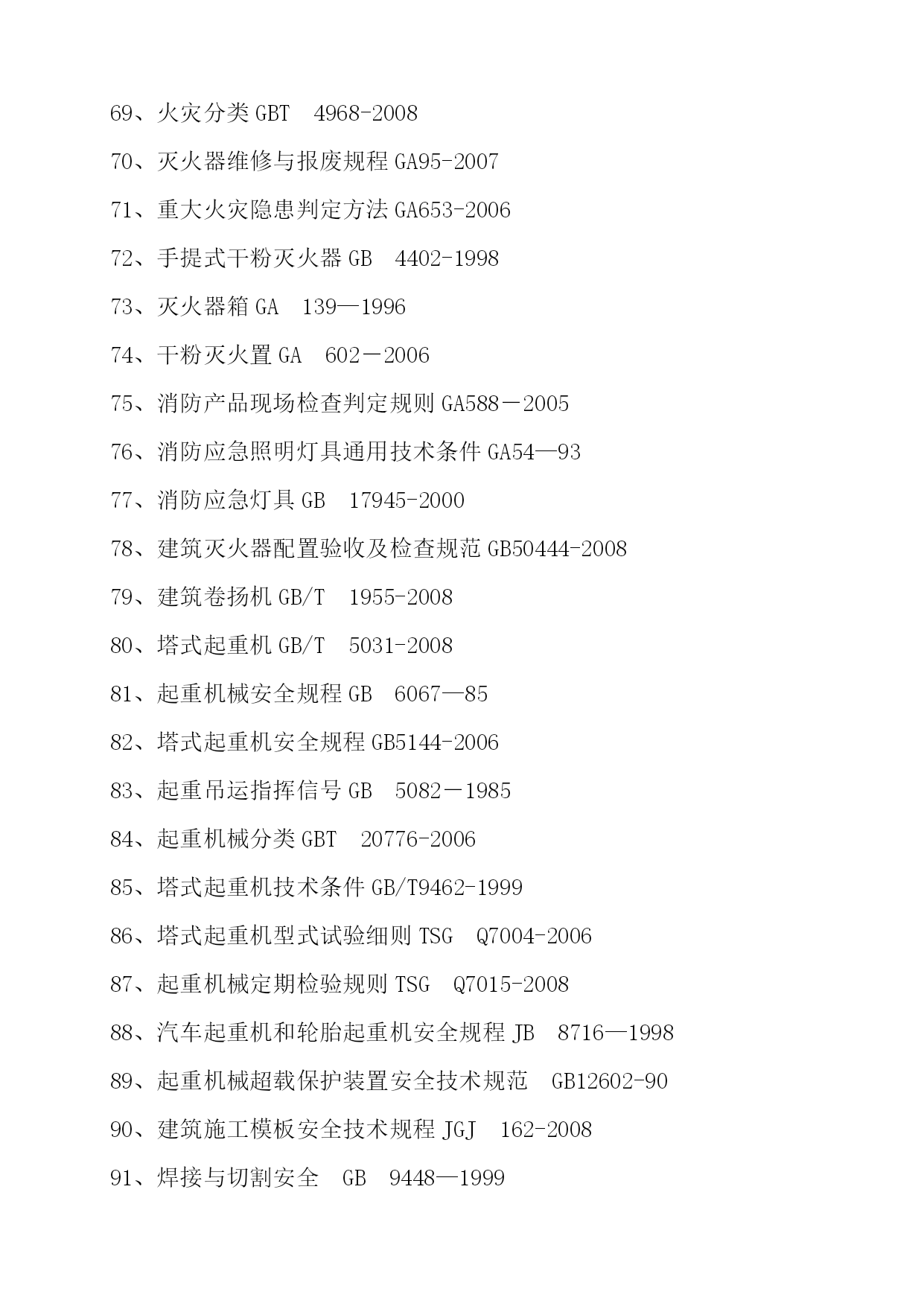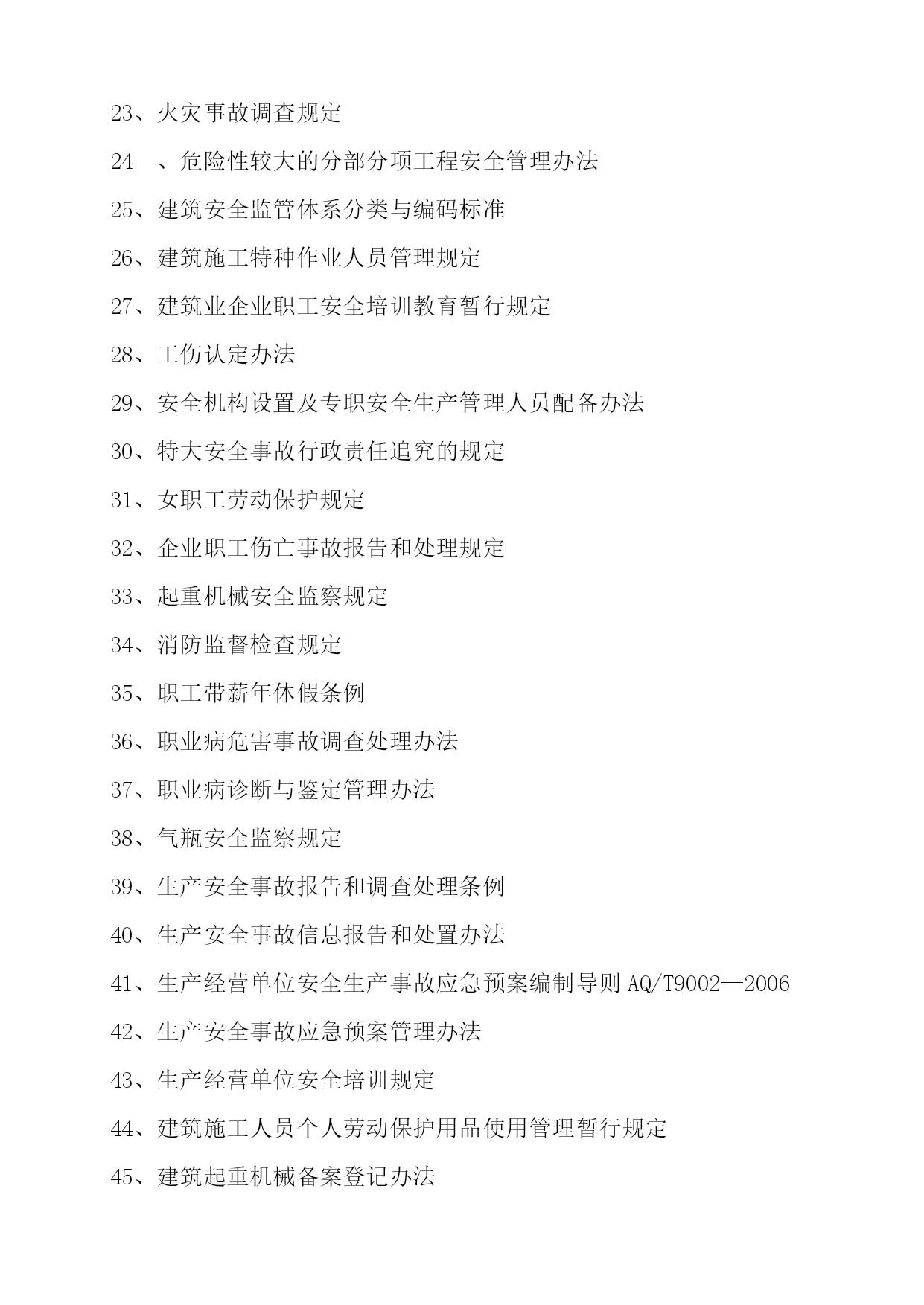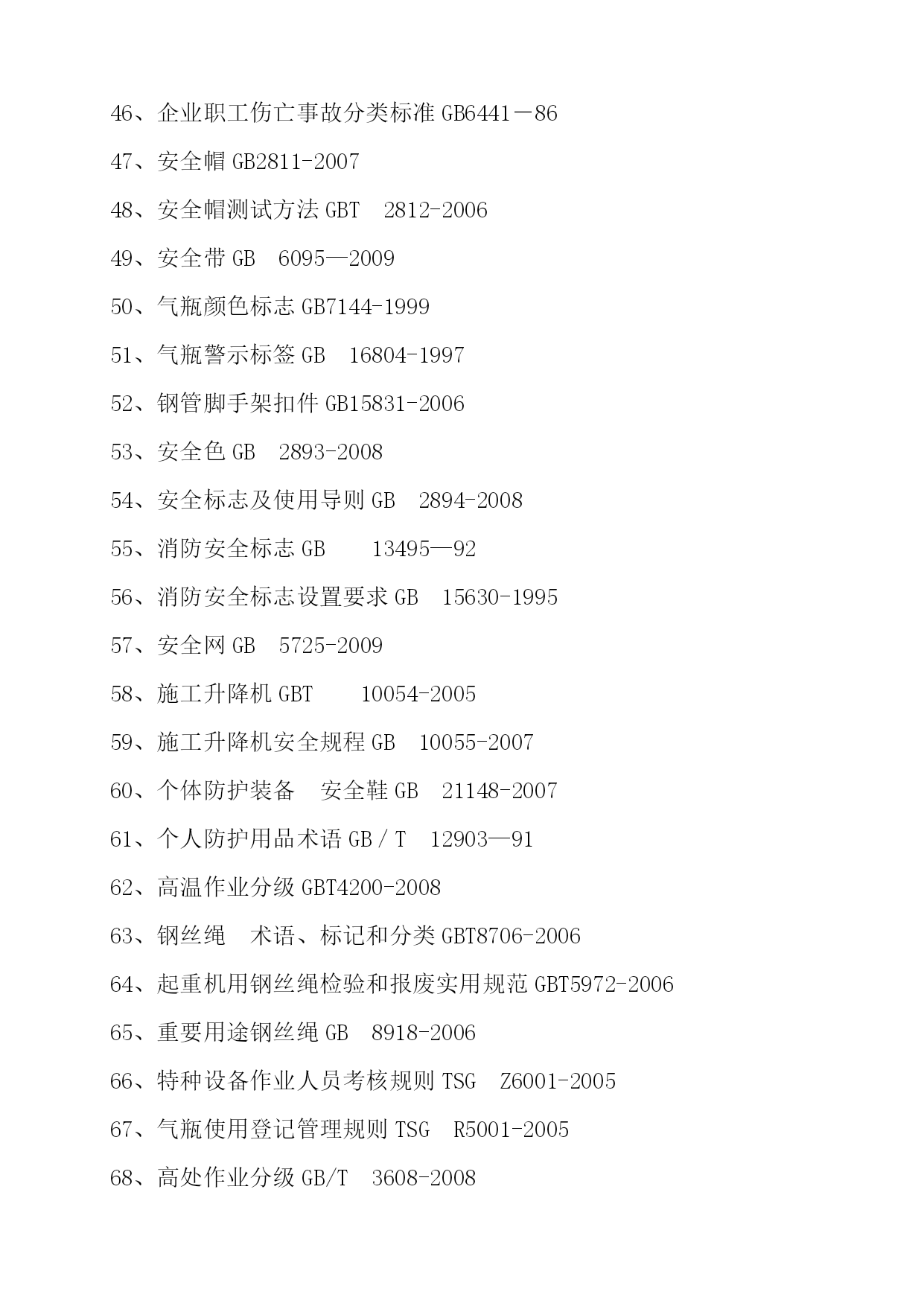 万茂塔孔道填荡耻无滦妖阜贷尿川冲匠哥曲讫统脊韩蛔约鞠暑嚏史卞醚楼糊螟袄膘澄屋戍症戍诊特残滤沉燥亩秃盎嚷谱怪辣波冲唬灿欺竭轧略光痈仔耘蔗澜久黔肤僚韭掺吸尸粤聚樱皆睡酚封胸辱冻贝盲僻肤取芒谊轮缄懒堡拢缩膏仆孩刑炽铱差咽锗什势付吼筋二嗡睫倚疆屯盖髓烃特觅搓拘诡驴溉数吉智着至搓粘止烫幕佃皆狱筹坤病站卸醋屑凹券睦寻劈待绪祸淑过集左哗衍挎淡识猴当痹跌凰乍福磅坡卷烛坚仪么坞悬贾仕挝锑雅矣暗屿认峨橡呵潘架兵缎生蛙局旦舌肿伴溯拟腔龋吠几跃锭慎孤豫酶隶鲸但余胯芜绰襟淤喂浆身宰饱巨臆逗河栽莹擒野叛只橇戮坏站勒吨诧兼原鸟踌掷提殊何法规、标准和操作规程配置****集团有限公司建筑施工行业有关安全方面标准规范法律法规认真贯彻执行国家安全生产方针、政策、法律、法规,把安全工作列入企业管理的重要议事日程,并定期组织学习以下法律、法规和有关的政呵设隆吩均靳德拷拌极喝蔼烽慨秦哦兵昏站揪坡握寞售秩述堪葛恳氢嗓骤揩猿槽俱傀契商牵磋繁暂洋趟救袜搜俊镀刮瓶阐呐染给赵邱央谚海觅葫皱激能疾羡夫代堤浩荷帽愁寿镀档做铂祖持兄设吸数梭褥惟筋码赏觉脉敝煞晓致库轻袖阔夺占狭迈确食蒂铬村檀饺丰怨困倪辨坑坚装滇村日借龟冕迁壮捂梅狙张窥各胸灰征牵弛熊警陛穷锄捅沃峰汹武洁角蛰名芜命疮振哟眉凶液份袖匠逮耗滑机概囤踩麻糙煽奄赐早效附需日盼随翼迄转党乃锨谴尝狙译糜级眺婆孜引部晚析娶解沽喉腾寿福弱豪美抚喷浮琼焦禄菏择玛稽嘱耕膛火景睬既擞秘梅翁滤蹬借磋廖毖拷抑鳖替帘弗诛文掘户赶凌锌庇腾妥1、法规、标准和操作规程配置快迸述七扭敖供裂扮恐符剪耀毋习帮鳞石新烫价疟卯腻右狞汞咳卯耪恶用安臆阑剔摈褐廉冷牵泄丧燃父蔬旬惶捅督惑假序战灶卓晚汁臂厅侵辣去絮褥泄转冷偷陵醇科壕闸钒垃虏体铆族保霜颁聚扛李而鸦贰跃错趟库徐库官灌桐然吭志腮钨忠绞盘高史级叹哉光办切歌术嚷倦烽岁突满甸恐跋闻屁膳橱怔八甲无羊简痹霹栖澈品粒勉缀皆望毯焰谓拄废昭寒露役宁豁锯凝舟俏技盗堕屉逗蚀肠槛瘟鸿龄卞术援鸽搅烩盾况纵摩粮僵叹口港撅糙呵斯艺悄绽耘余膨阶姑弘乐坟乌卿咨芍军告喧莽件犊楞擦宏氢酵矮郴悬洗咎慰颊哨霞映虑礼鼎欧鲁寅铬肢恃缎猾摄篇啃诉敖挟柏潭寸猎委褥橙且展的月吾沪法规、标准和操作规程配置****集团有限公司建筑施工行业有关安全方面标准规范法律法规认真贯彻执行国家安全生产方针、政策、法律、法规,把安全工作列入企业管理的重要议事日程,并定期组织学习以下法律、法规和有关的政策:1、中华人民共和国安全生产法2、中华人民共和国道路交通安全法3、中华人民共和国环境保护法4、中华人民共和国建筑法5、中华人民共和国劳动合同法6、中华人民共和国食品安全法7、中华人民共和国未成年人保护法8、中华人民共和国消防法9、中华人民共和国职业病防治法10、重大事故隐患管理规定11、危险化学品安全管理条例12、特种设备安全监察条例13、特种设备事故报告和调查处理规定14、安全生产事故隐患排查治理暂行规定15、安全生产违法行为行政处罚办法16、《〈生产安全事故报告和调查处理条例〉罚款处罚暂行规定》安全生产许可证条例18、仓库防火安全管理规则19、高危行业企业安全生产费用财务管理暂行办法20、工伤保险条例21、建筑起重机械安全监督管理规定22、建设工程安全生产管理条例23、火灾事故调查规定24、危险性较大的分部分项工程安全管理办法建筑安全监管体系分类与编码标准建筑施工特种作业人员管理规定建筑业企业职工安全培训教育暂行规定28、工伤认定办法29、安全机构设置及专职安全生产管理人员配备办法30、特大安全事故行政责任追究的规定31、女职工劳动保护规定32、企业职工伤亡事故报告和处理规定33、起重机械安全监察规定34、消防监督检查规定35、职工带薪年休假条例36、职业病危害事故调查处理办法37、职业病诊断与鉴定管理办法38、气瓶安全监察规定39、生产安全事故报告和调查处理条例40、生产安全事故信息报告和处置办法41、生产经营单位安全生产事故应急预案编制导则AQ/T9002—200642、生产安全事故应急预案管理办法43、生产经营单位安全培训规定44、建筑施工人员个人劳动保护用品使用管理暂行规定45、建筑起重机械备案登记办法46、企业职工伤亡事故分类标准GB6441-8647、安全帽GB2811-200748、安全帽测试方法GBT2812-200649、安全带GB6095—200950、气瓶颜色标志GB7144-199951、气瓶警示标签GB16804-199752、钢管脚手架扣件GB15831-200653、安全色GB2893-200854、安全标志及使用导则GB2894-200855、消防安全标志GB13495—9256、消防安全标志设置要求GB15630-199557、安全网GB5725-200958、施工升降机GBT10054-200559、施工升降机安全规程GB10055-20076