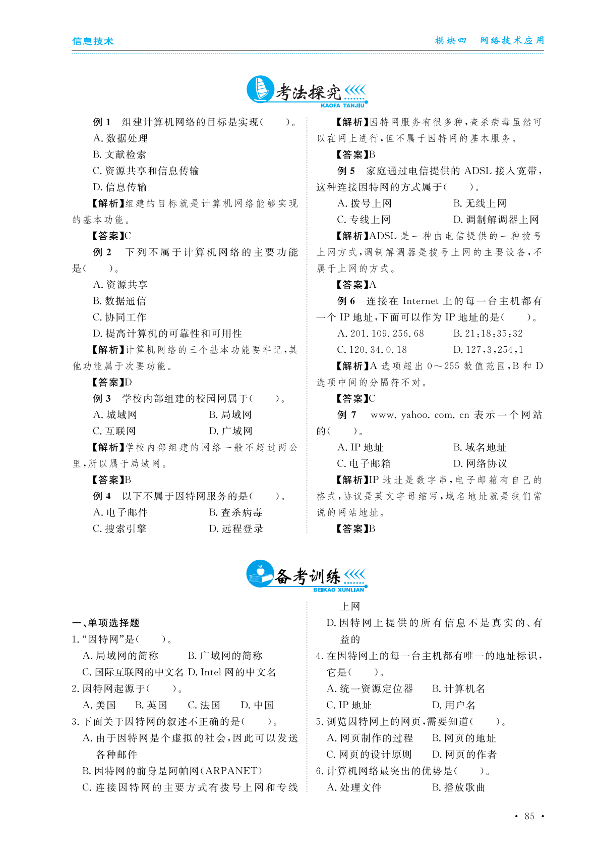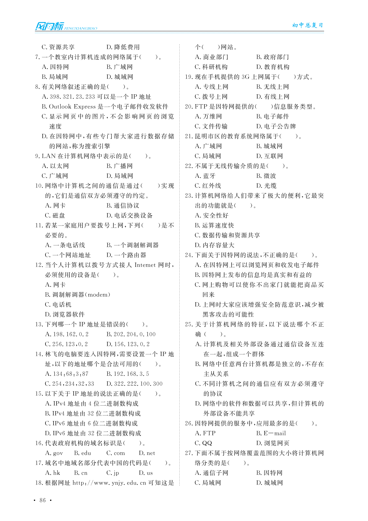 试题-全国-2016_(云南专用)2016年中考信息技术总复习 第一篇 知识梳理篇 模块四 网络技术应用 第一节 网络基础知识(pdf)