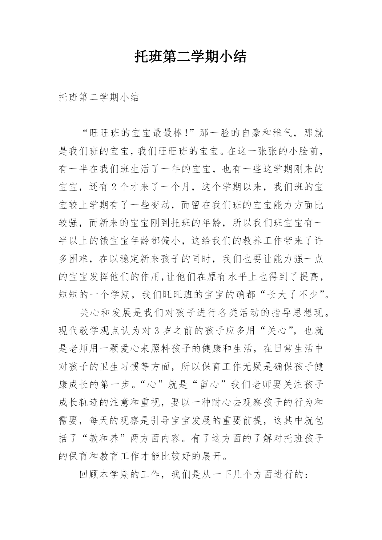 托班第二学期小结托班第二学期小结“旺旺班的宝宝最最棒!”那一脸的自豪和稚气,那就是我们班的宝宝,我们旺旺班的宝宝。在这一张张的小脸前,有一半在我们班生活了一年的宝宝,也有一些这学期刚来的宝宝,还有2个才来了一个月,这个学期以来,我们班的宝宝较上学期有了一些变动,而留在我们班的宝宝能力方面比较强,而新来的宝宝刚到托班的年龄,所以我们班宝宝有一半以上的饿宝宝年龄都偏小,这给我们的教养工作带来了许多困难,在以稳定新来孩子的同时,我们也要让能力强一点的宝宝发挥他们的作用,让他们在原有水平上也得到了提高,短短的一个