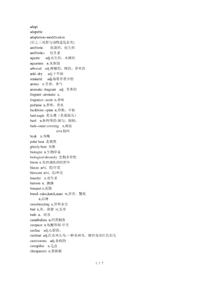 最权威的国际教育服务平台HYPERLINK"http://www.eol.cn/"资料来源:教育优选HYPERLINK"http://www.jybest.cn/"http://www.jybest.cn/托福词汇:树名名称【托福词汇:树名名称】Trees树木pine松cerdar雪松类larch落叶松juniper杜松cone松果cypress柏树bamboo竹box黄杨poplar白杨cottonwood三角叶杨osier紫皮柳树willow垂柳birch白桦maple枫树sequoia红
