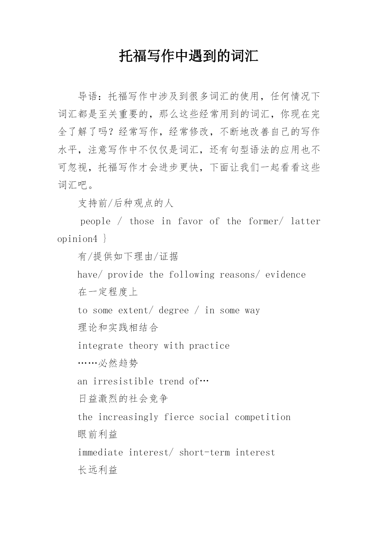 托福写作中遇到的词汇导语:托福写作中涉及到很多词汇的使用,任何情况下词汇都是至关重要的,那么这些经常用到的词汇,你现在完全了解了吗?经常写作,经常修改,不断地改善自己的写作水平,注意写作中不仅仅是词汇,还有句型语法的应用也不可忽视,托福写作才会进步更快,下面让我们一起看看这些词汇吧。支持前/后种观点的人people/thoseinfavoroftheformer/latteropinion4}有/提供如下理由/证据have/providethefollowingreasons/evidence在一定程度上