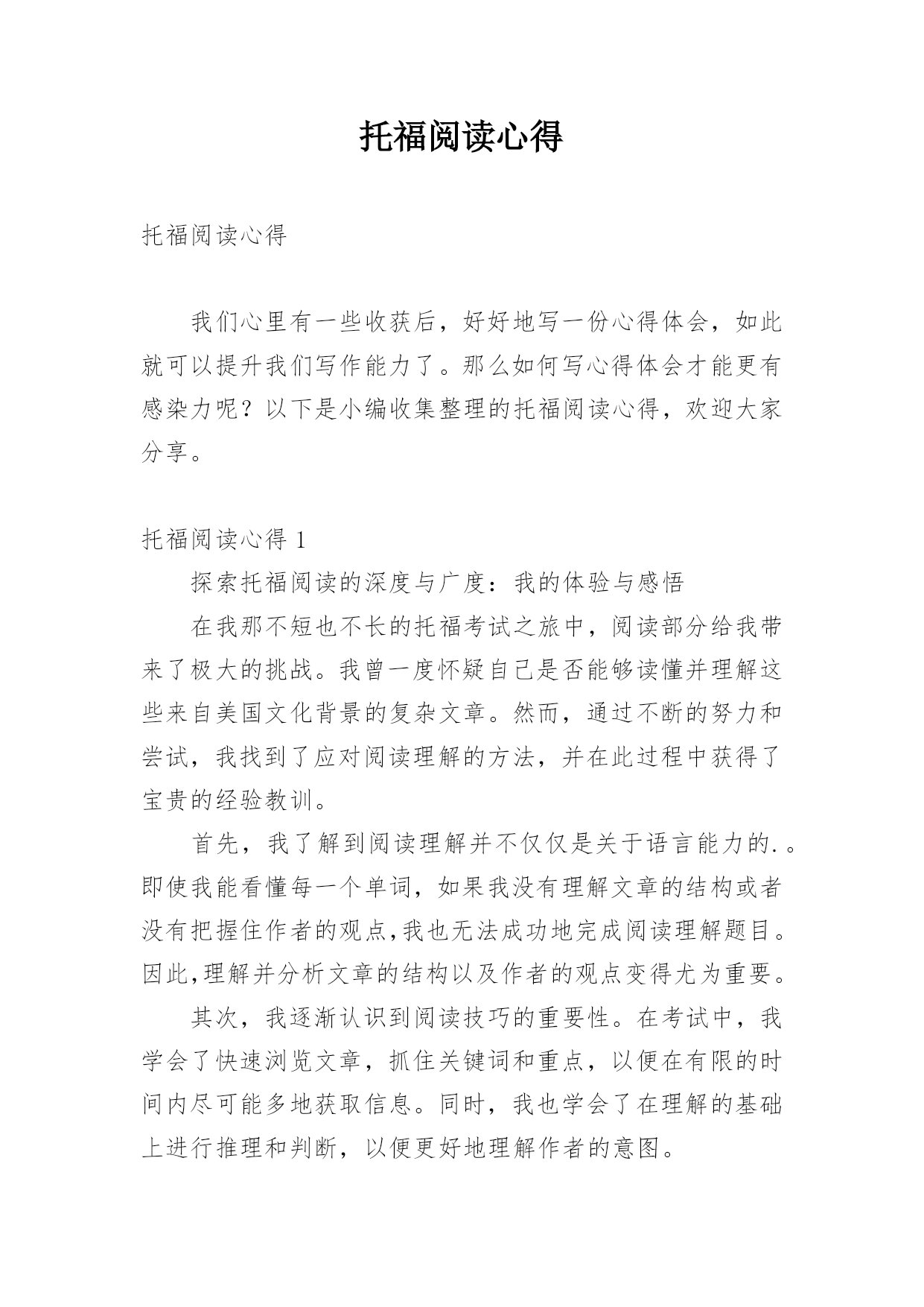 托福阅读心得托福阅读心得我们心里有一些收获后,好好地写一份心得体会,如此就可以提升我们写作能力了。那么如何写心得体会才能更有感染力呢?以下是小编收集整理的托福阅读心得,欢迎大家分享。托福阅读心得1探索托福阅读的深度与广度:我的体验与感悟在我那不短也不长的托福考试之旅中,阅读部分给我带来了极大的挑战。我曾一度怀疑自己是否能够读懂并理解这些来自美国文化背景的复杂文章。然而,通过不断的努力和尝试,我找到了应对阅读理解的方法,并在此过程中获得了宝贵的经验教训。首先,我了解到阅读理解并不仅仅是关于语言能力的.。即使