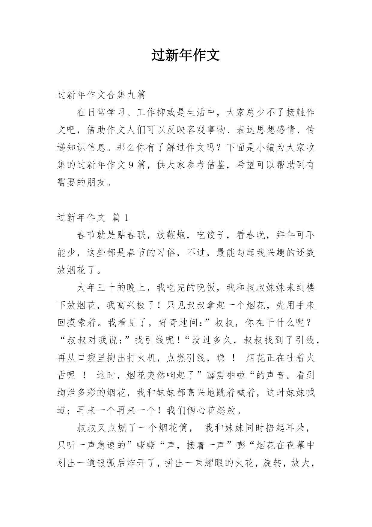 过新年作文过新年作文合集九篇在日常学习、工作抑或是生活中,大家总少不了接触作文吧,借助作文人们可以反映客观事物、表达思想感情、传递知识信息。那么你有了解过作文吗?下面是小编为大家收集的过新年作文9篇,供大家参考借鉴,希望可以帮助到有需要的朋友。过新年作文篇1春节就是贴春联,放鞭炮,吃饺子,看春晚,拜年可不能少,这些都是春节的习俗,不过,最能勾起我兴趣的还数放烟花了。大年三十的晚上,我吃完的晚饭,我和叔叔妹妹来到楼下放烟花,我高兴极了!只见叔叔拿起一个烟花,先用手来回摸索着。我看见了,好奇地问:”叔叔,你在