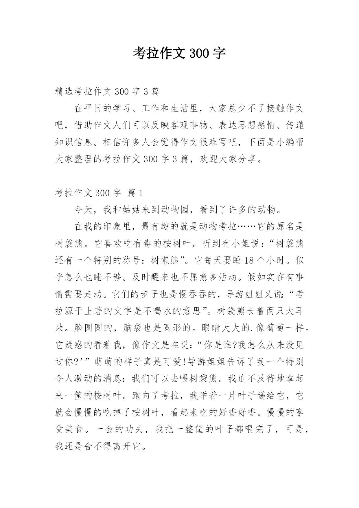 考拉作文300字精选考拉作文300字3篇在平日的学习、工作和生活里,大家总少不了接触作文吧,借助作文人们可以反映客观事物、表达思想感情、传递知识信息。相信许多人会觉得作文很难写吧,下面是小编帮大家整理的考拉作文300字3篇,欢迎大家分享。考拉作文300字篇1今天,我和姑姑来到动物园,看到了许多的动物。在我的印象里,最有趣的就是动物考拉……它的原名是树袋熊。它喜欢吃有毒的桉树叶。听到有小姐说:“树袋熊还有一个特别的称号:树懒熊”。它每天要睡18个小时。似乎怎么也睡不够。及时醒来也不愿意多活动。假如实在有事情