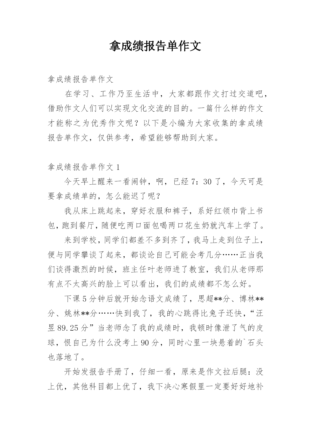 拿成绩报告单作文拿成绩报告单作文在学习、工作乃至生活中,大家都跟作文打过交道吧,借助作文人们可以实现文化交流的目的。一篇什么样的作文才能称之为优秀作文呢?以下是小编为大家收集的拿成绩报告单作文,仅供参考,希望能够帮助到大家。拿成绩报告单作文1今天早上醒来一看闹钟,啊,已经7:30了,今天可是要拿成绩单的,怎么能迟了呢?我从床上跳起来,穿好衣服和裤子,系好红领巾背上书包,跑到餐厅,随便吃两口面包喝两口花生奶就汽车上学了。来到学校,同学们都差不多到齐了,我马上走到位子上,便与同学攀谈了起来,都谈论自己可能会考