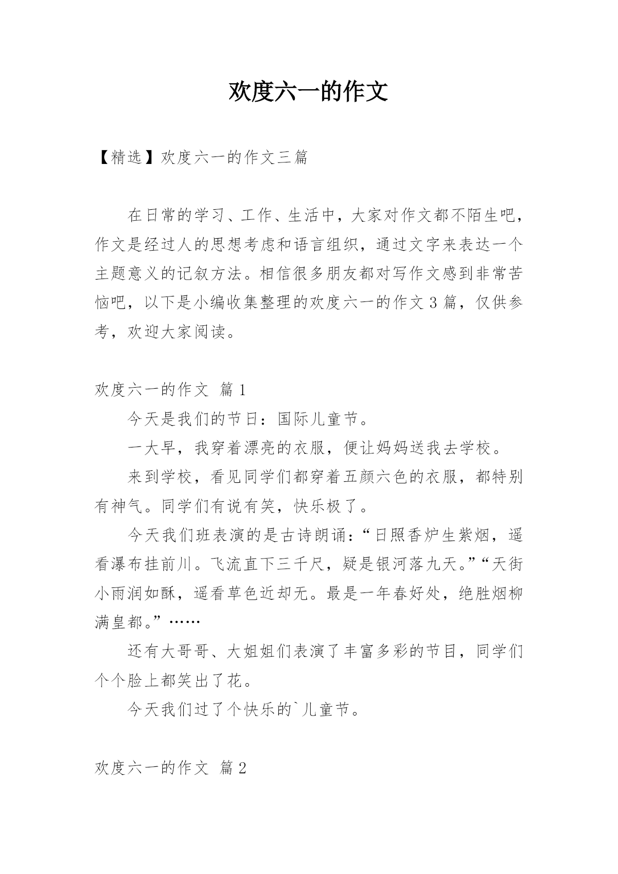 欢度六一的作文【精选】欢度六一的作文三篇在日常的学习、工作、生活中,大家对作文都不陌生吧,作文是经过人的思想考虑和语言组织,通过文字来表达一个主题意义的记叙方法。相信很多朋友都对写作文感到非常苦恼吧,以下是小编收集整理的欢度六一的作文3篇,仅供参考,欢迎大家阅读。欢度六一的作文篇1今天是我们的节日:国际儿童节。一大早,我穿着漂亮的衣服,便让妈妈送我去学校。来到学校,看见同学们都穿着五颜六色的衣服,都特别有神气。同学们有说有笑,快乐极了。今天我们班表演的是古诗朗诵:“日照香炉生紫烟,遥看瀑布挂前川。飞流直下