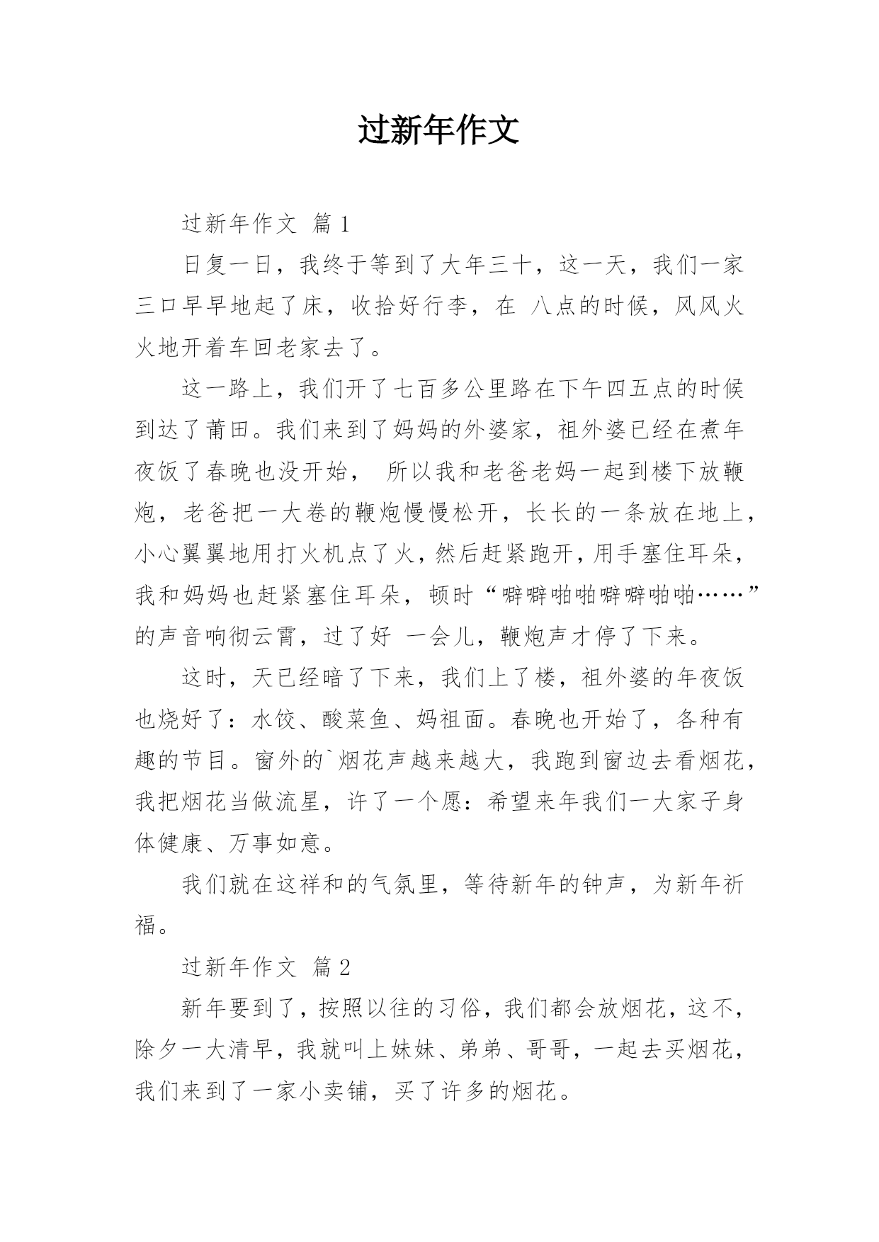 过新年作文过新年作文篇1今年是马年,是我的本命年,我今天特别的高兴因为新的一年又来了,我在过年的这段时间里,有可以收到很多的红包,这样还可以增加我以前存在银行里的钱呢!我和妈妈打算去买一些年货,送给我们远方家的亲戚,送给我们对面的邻居,还可以送给我们的亲朋好友!过年特别的`热闹,我也特别喜欢过年!叮咚~~哎呀,亲戚来啦,我妈妈热情的招待这些亲戚。为了让自己多日没见的这些亲朋好友们,吃一餐上等的年夜饭,我妈妈费了好大的功夫才把菜吵得香喷喷的,不只是香喷喷,还香飘十里呢!亲朋好友们都夸奖我妈妈又一双巧手,我为