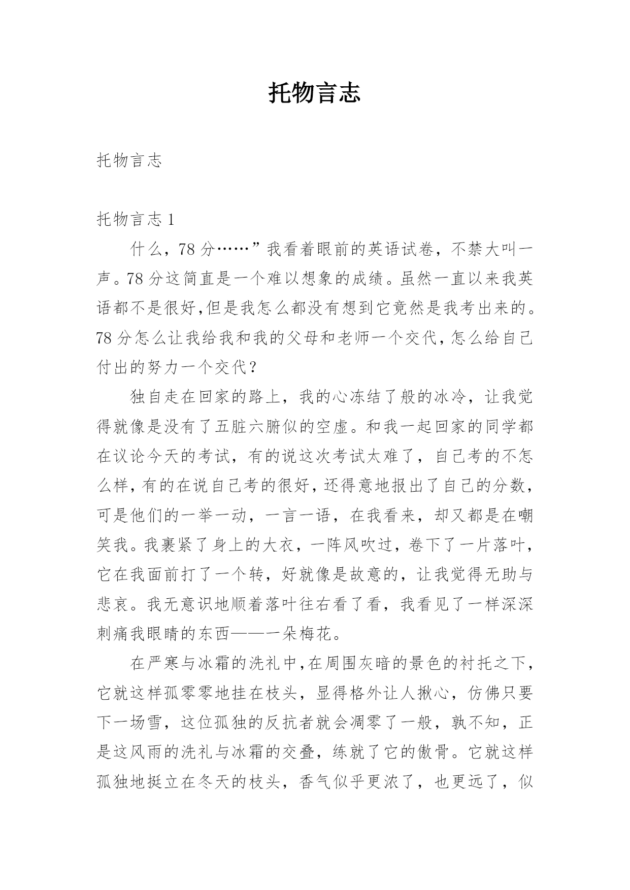 托物言志托物言志托物言志1什么,78分……”我看着眼前的英语试卷,不禁大叫一声。78分这简直是一个难以想象的成绩。虽然一直以来我英语都不是很好,但是我怎么都没有想到它竟然是我考出来的。78分怎么让我给我和我的父母和老师一个交代,怎么给自己付出的努力一个交代?独自走在回家的路上,我的心冻结了般的冰冷,让我觉得就像是没有了五脏六腑似的空虚。和我一起回家的同学都在议论今天的考试,有的说这次考试太难了,自己考的不怎么样,有的在说自己考的很好,还得意地报出了自己的分数,可是他们的一举一动,一言一语,在我看来,却又都