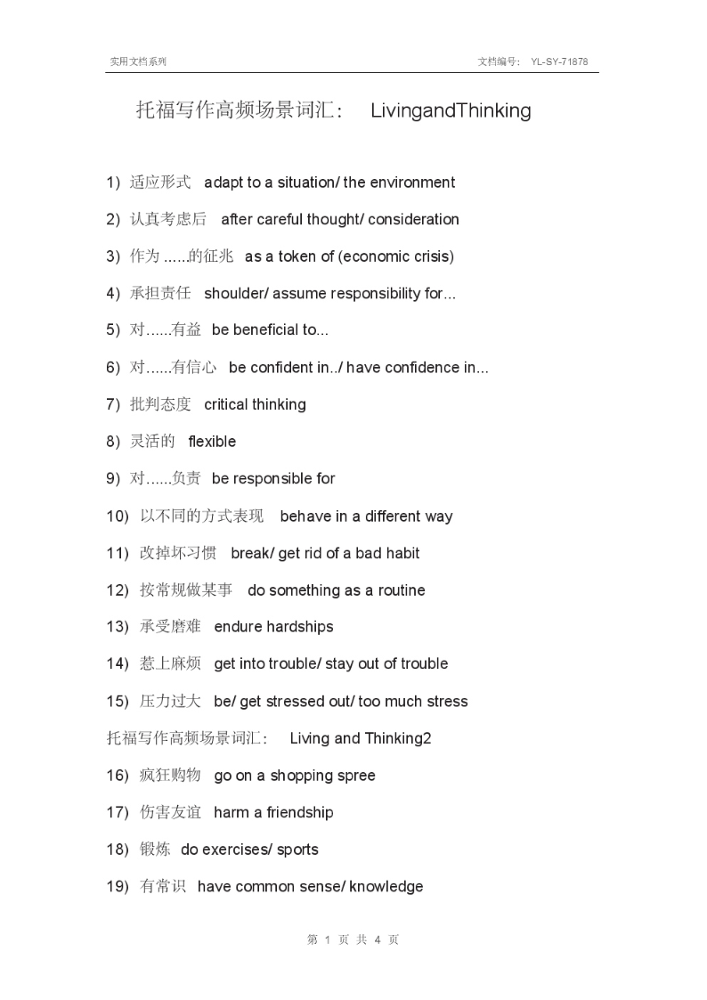 托福写作高频场景词汇:LivingandThinking.pdf