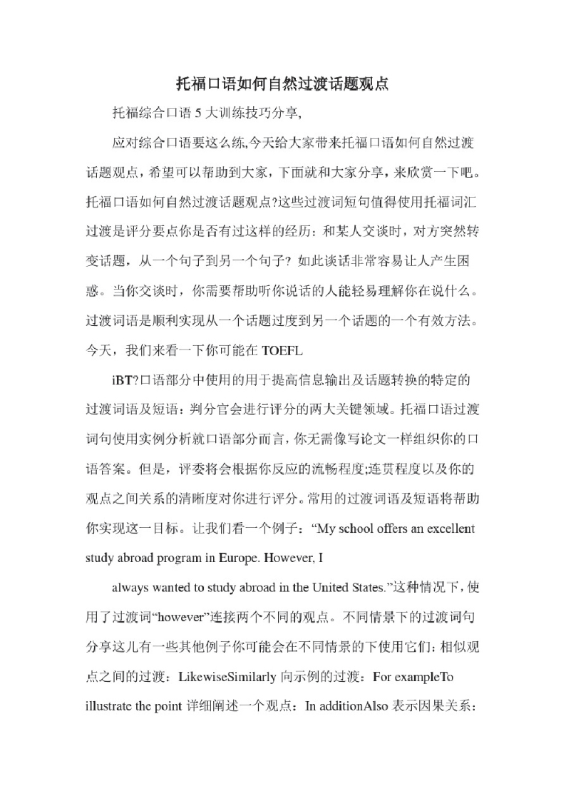托福口语如何自然过渡话题观点.pdf