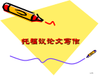 托福议论文写作关于审题审题练习托福议论文结构议论文Body部分基本结构完全型单边支持修正型单边支持详细各部分写作详解Howtowritetheintroduction导入句2种写法举例标准化写法:对立opinions陈说标准化导入句惯用句型Cliche个性化导入句举例子导入句师者,所以传道授业解惑也提问式导入句提问式3种思绪惯用句型引用式导入句ThesisStatement写作3大标准中心句:Thesisstatement一鼓作气,再而衰,三而竭CompanyLogo惯用经典表示引入话题:当谈到…正面提出