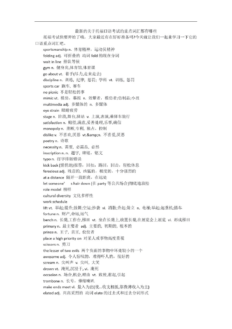 最新的关于托福口语考试的重点词汇都有哪些.pdf