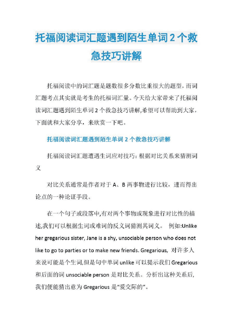 托福阅读词汇题遇到陌生单词2个救急技巧讲解.pdf