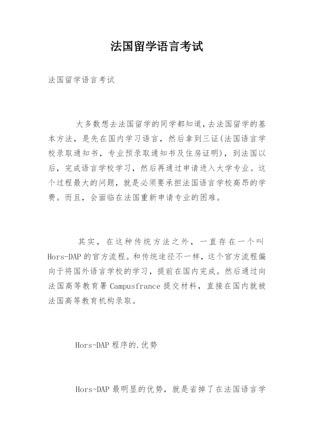 法国留学语言考试法国留学语言考试大多数想去法国留学的同学都知道,去法国留学的基本方法,是先在国内学习语言,然后拿到三证(法国语言学校录取通知书,专业预录取通知书及住房证明),到法国以后,完成语言学校学习,然后再通过申请进入大学专业。这个过程最大的问题,就是必须要承担法国语言学校高昂的学费。而且,会面临在法国重新申请专业的困难。其实,在这种传统方法之外,一直存在一个叫Hors-DAP的官方流程。和传统途径不一样,这个官方流程偏向于将国外语言学校的学习,提前在国内完成。然后通过向法国高等教育署Campusfr